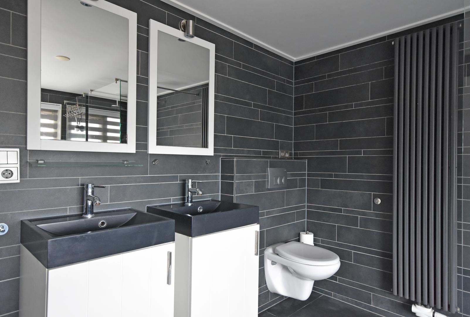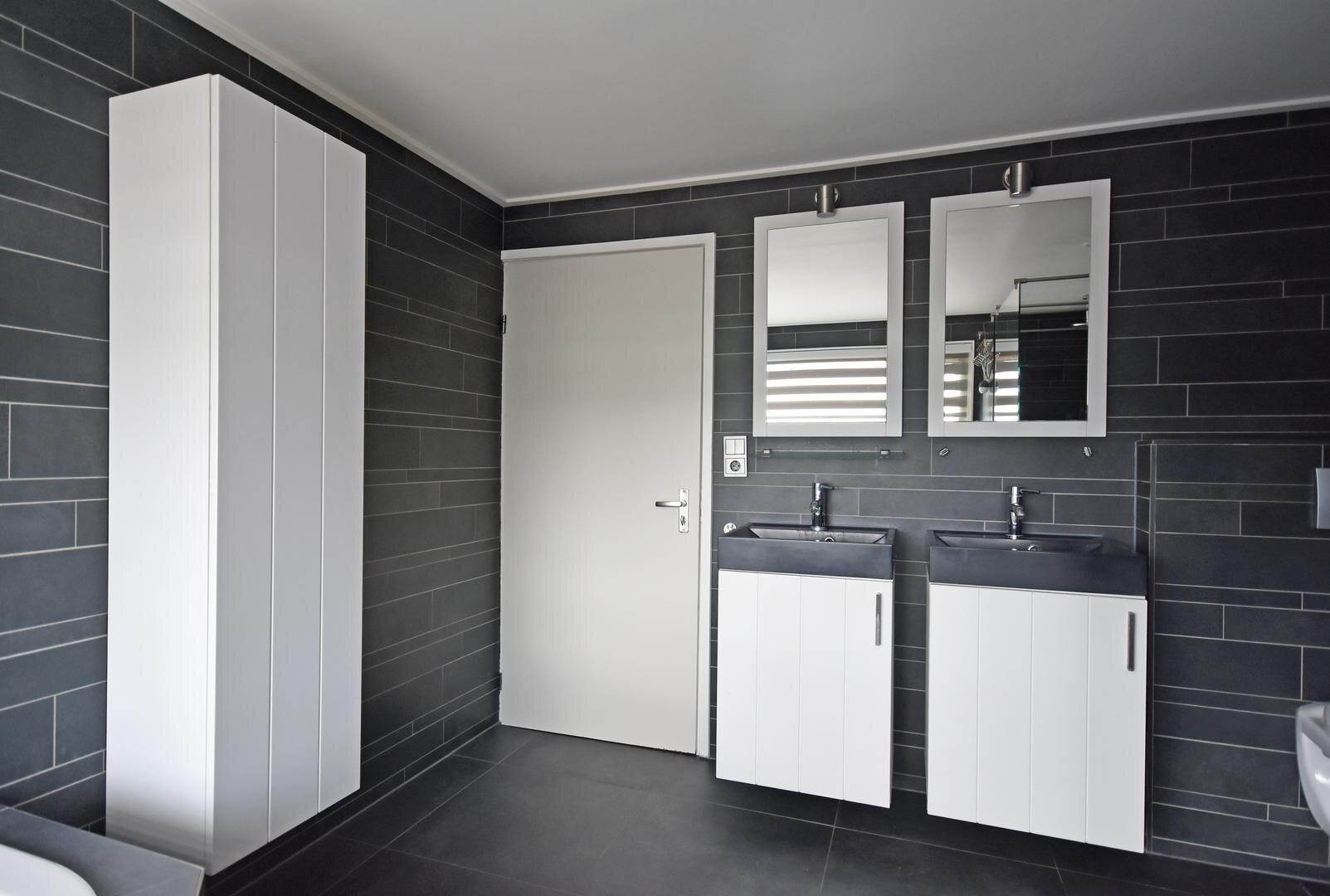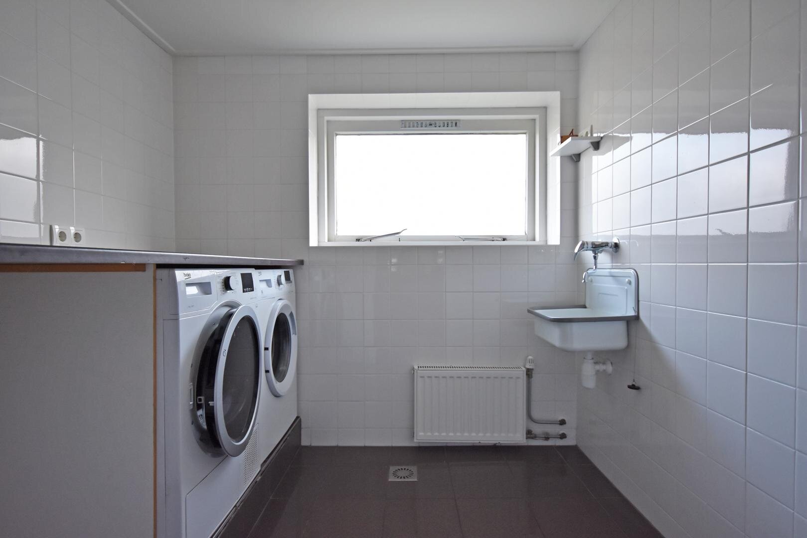 1e verdieping: overloop met laminaatvloer, praktische waskamer met plavuizenvloer, witgoed-aansluitingen, werkblad en spoelbakje, 3 ruime slaapkamers met laminaatvloer waarvan 1 met zonnig balkon, gemoderniseerde ruime badkamer met dubbele inloopdouche, royaal hoekbad, vrijdragend toilet en dubbel wastafelmeubel.