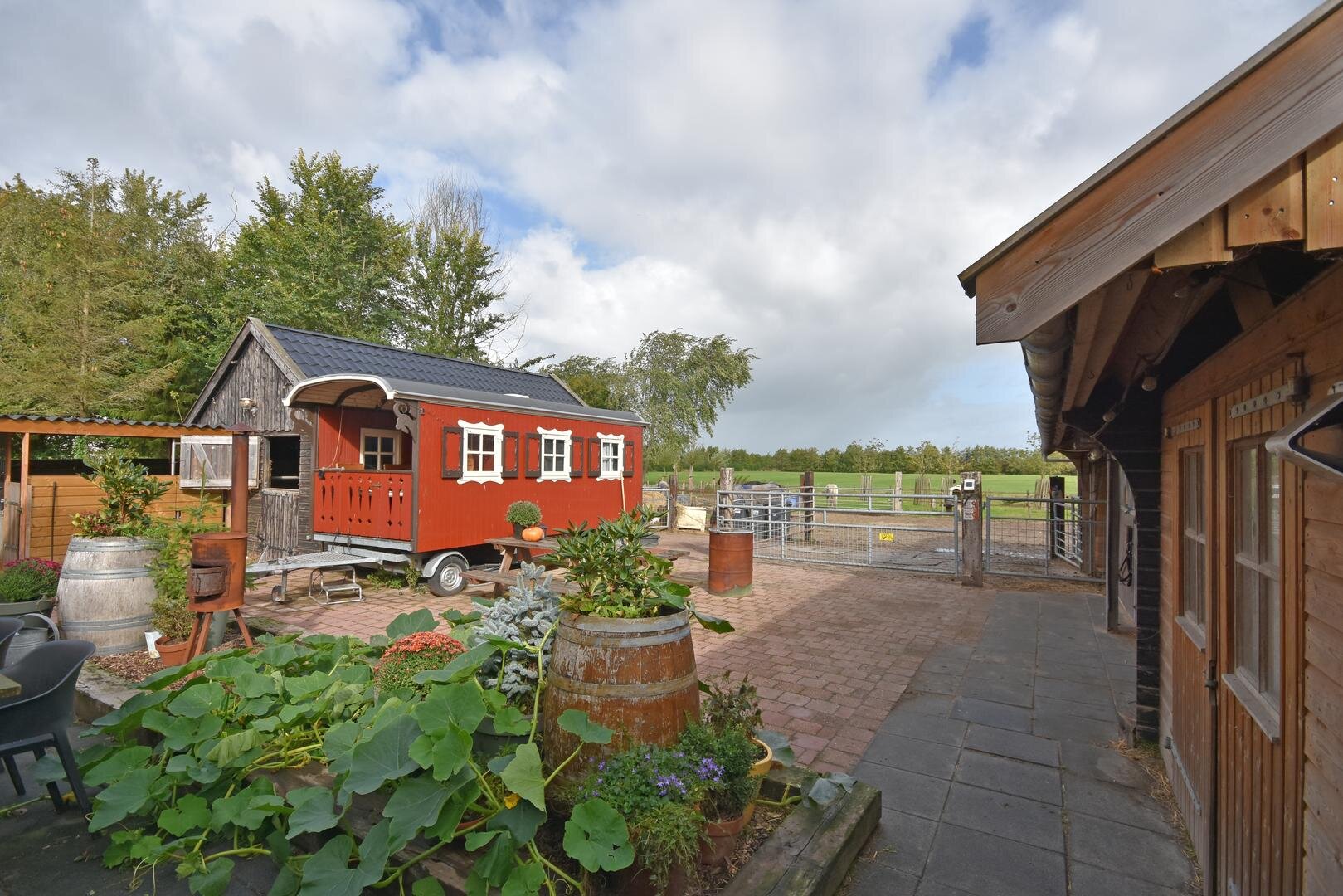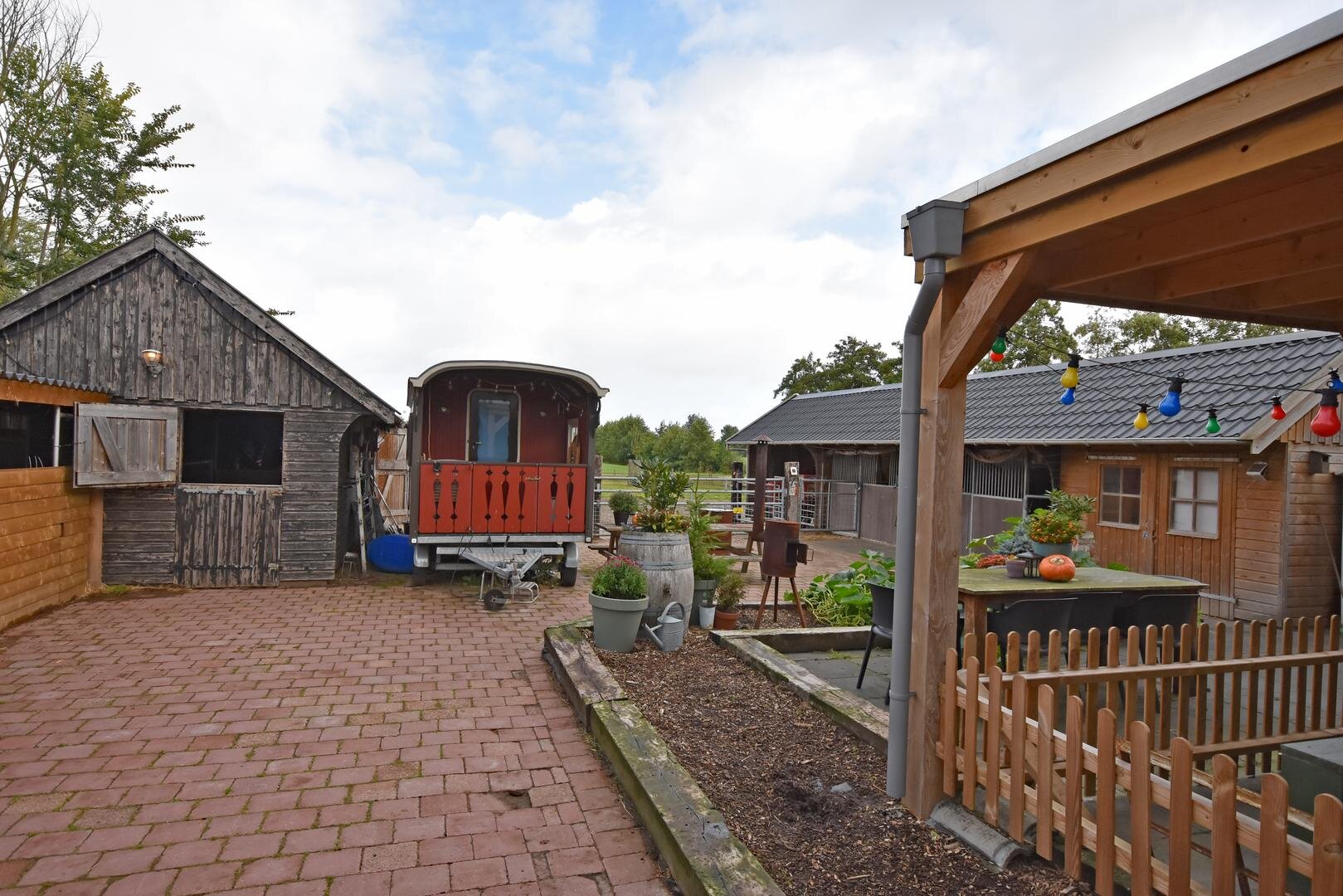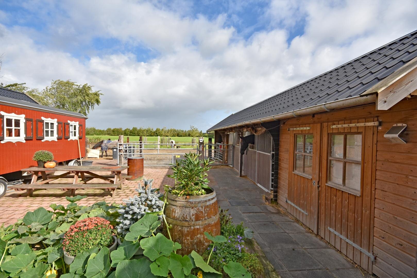 Dit object biedt meer dan genoeg ruimte voor hobby’s, opslag en houden van dieren. In de achtertuin vind je een royale houten schuur met twee paardenboxen, stallings- en bergruimtes. Daarnaast zijn er diverse praktische overkappingen (in gebruik als stallingsruimte) en een tweede houten schuur met kap aanwezig. De tweede schuur huisvest op dit moment gezellige schaapjes en dient als bergruimte.