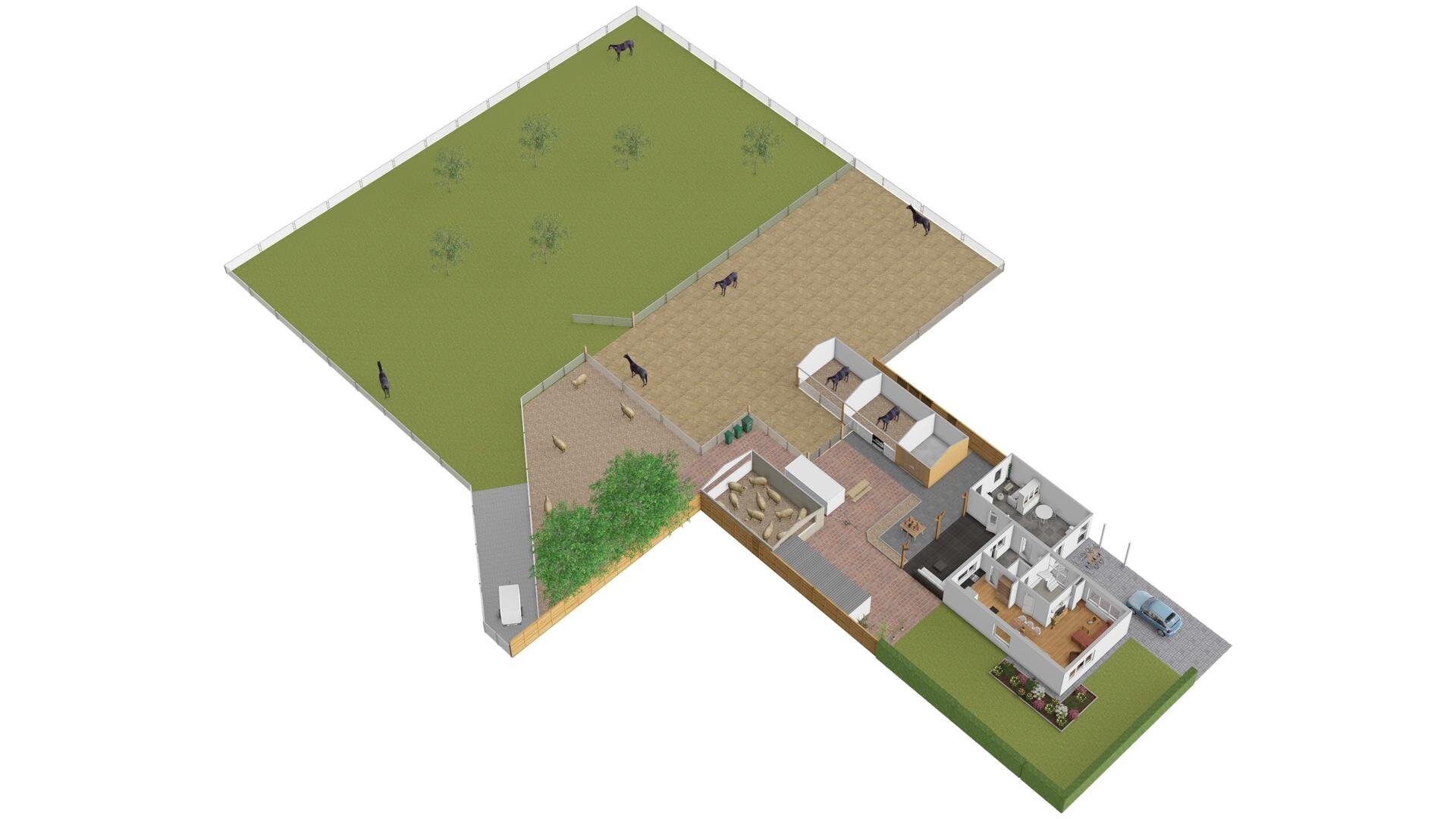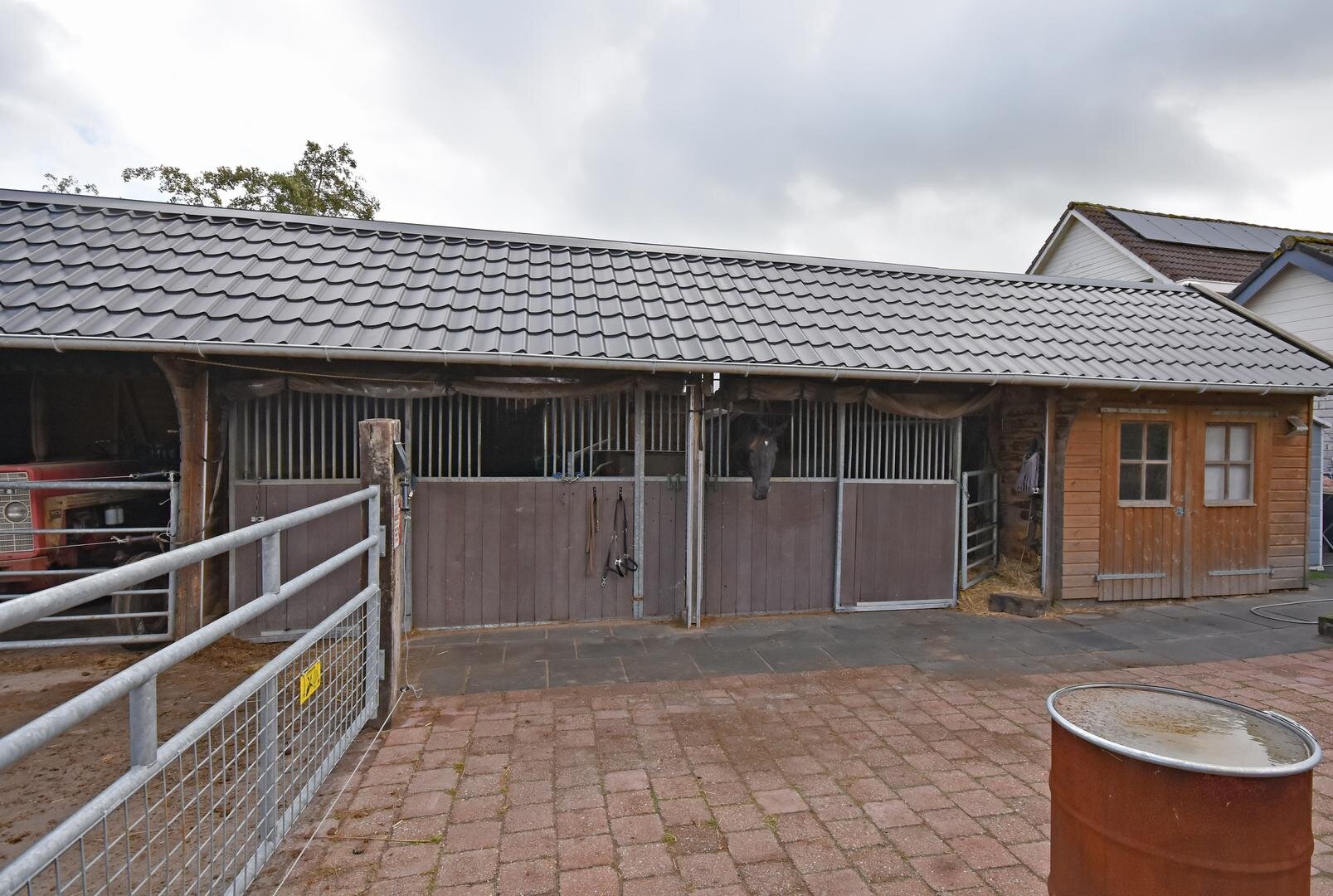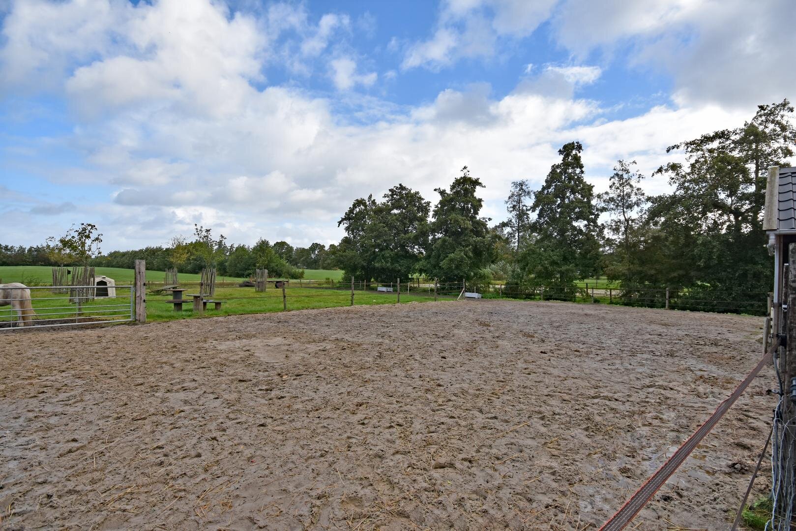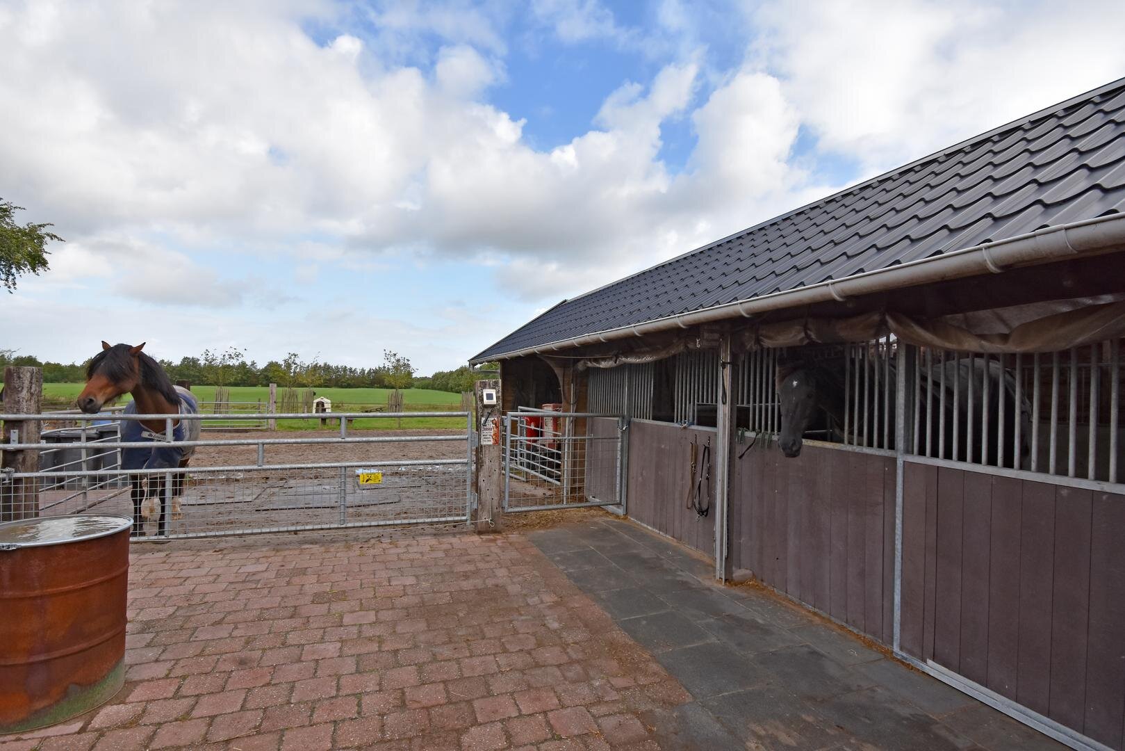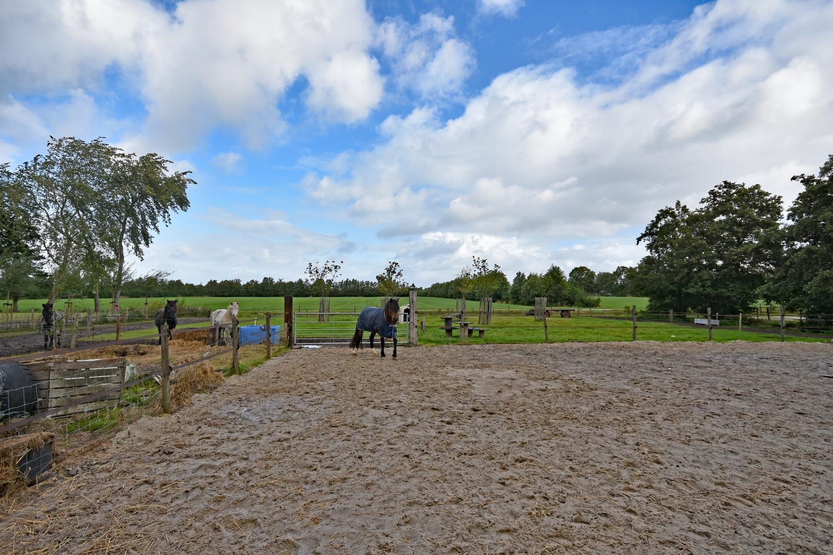 Het aangrenzende perceel weiland heeft een eigen uitrit aan de westzijde. Dit betekent dat het geheel ook met een tractor of aanhanger goed bereikbaar is. Het weiland is deels ingericht met een kleine paardenbak, ideaal voor de liefhebber van paardensport.