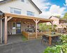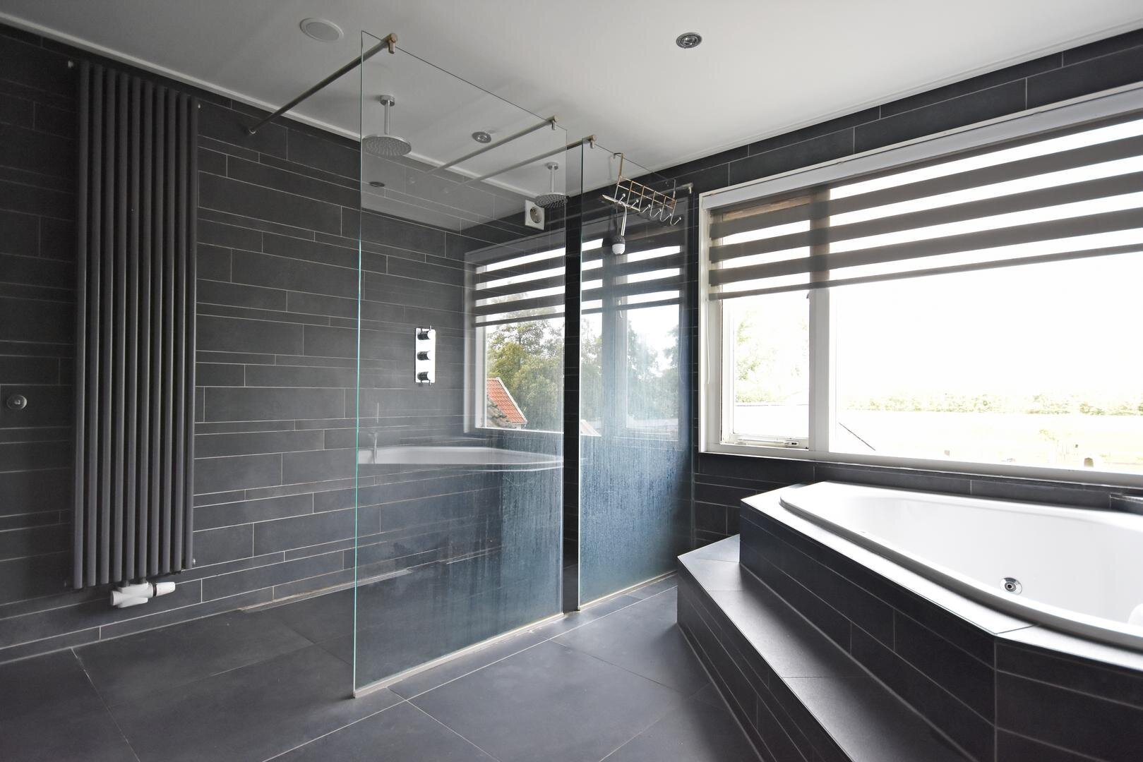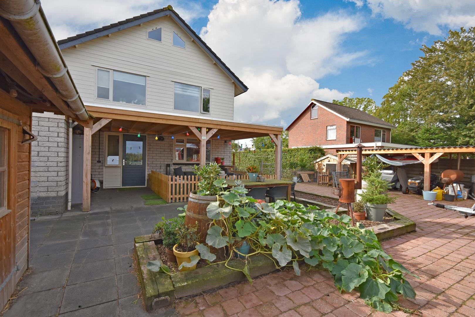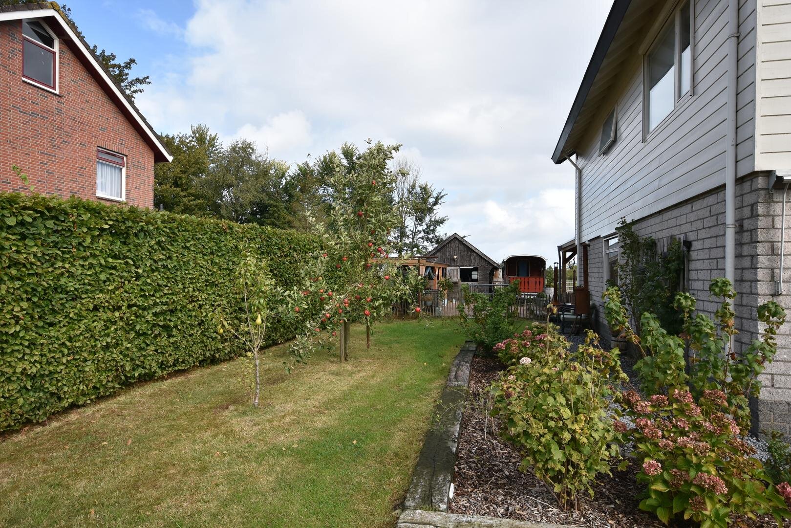 De achtertuin is een oase van rust en ruimte. Hier vind je meerdere terrassen om op elk moment van de dag van zon of schaduw te genieten met uitzicht over eigen weiland en het omliggende landschap. In 2024 is er een royale overkapping aangebouwd voor lange gezellige avonden buiten.