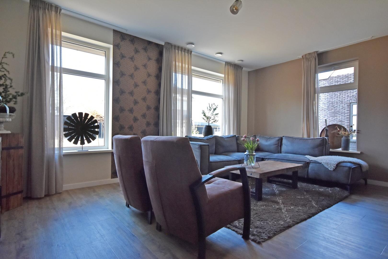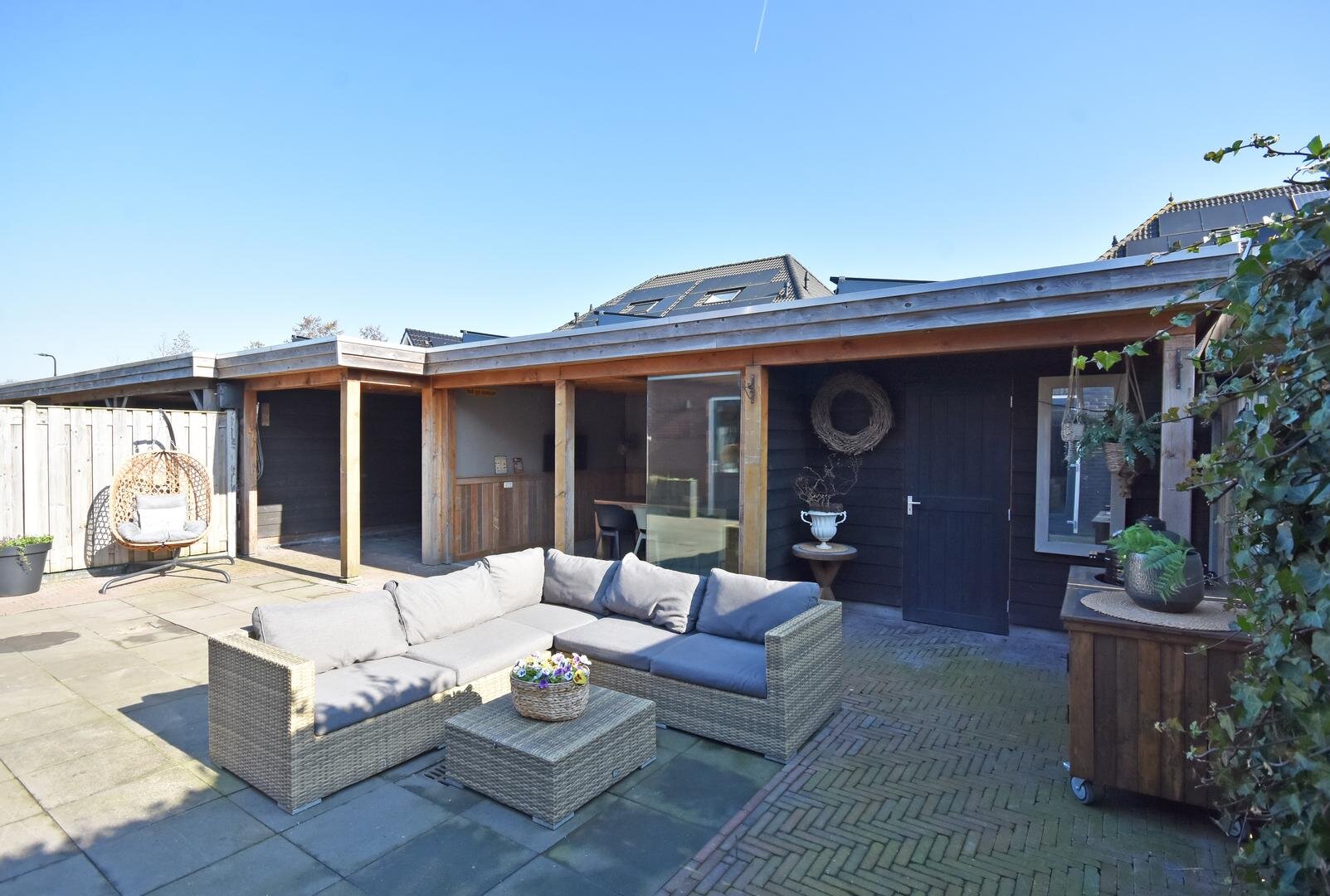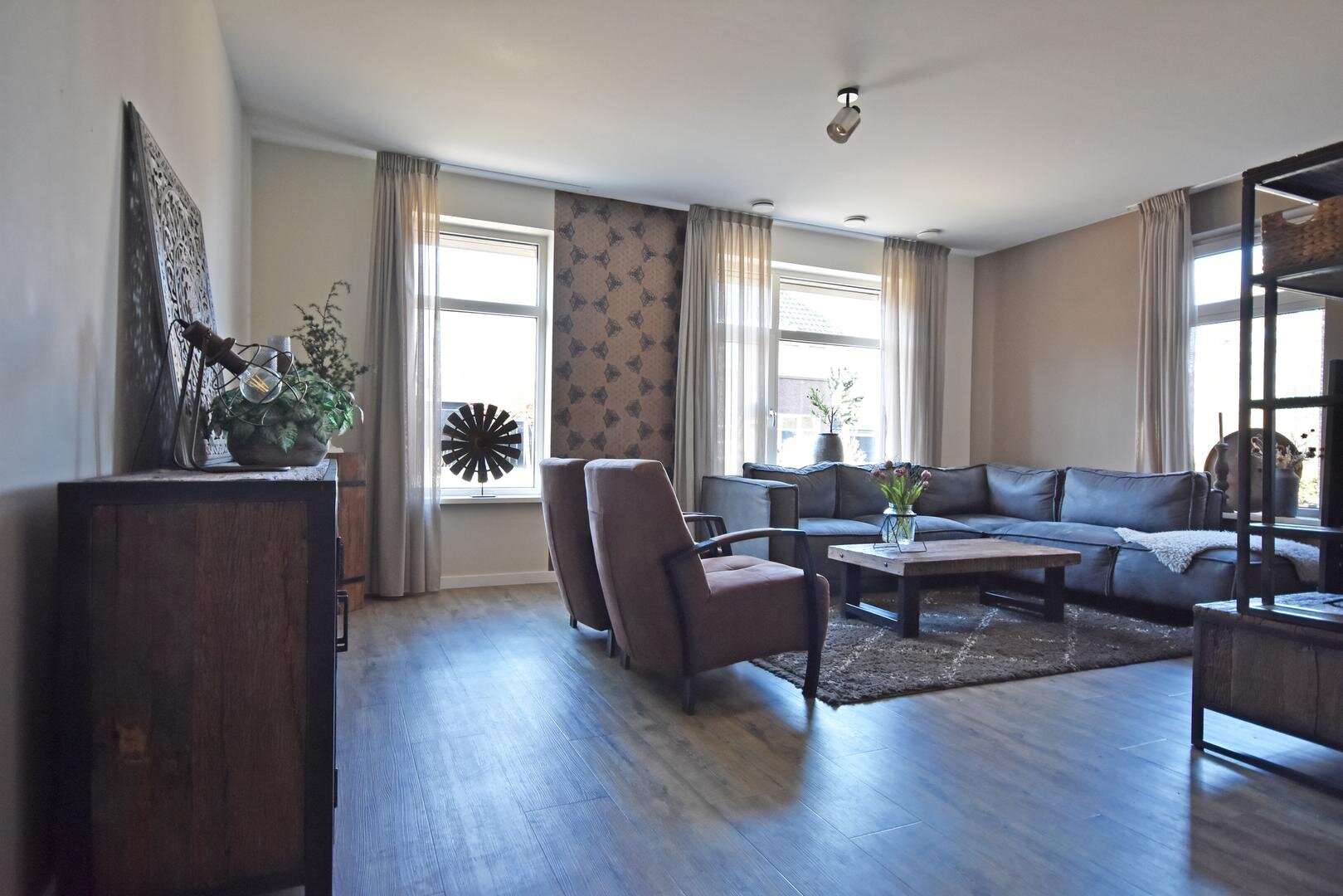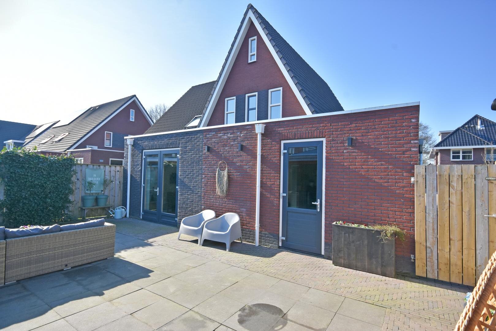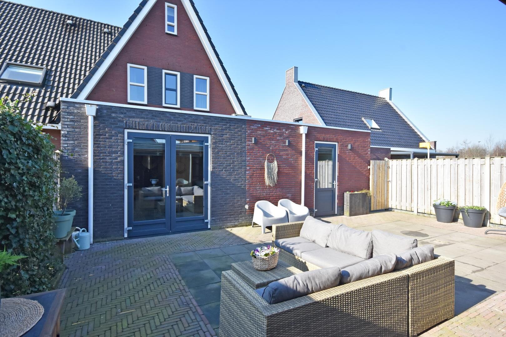 Deze moderne en luxe woning is in 2017 gebouwd met hoogwaardige materialen en oog voor duurzaamheid en onderhoudsgemak. Alle kozijnen en buitendeuren zijn uitgevoerd in kunststof en ook de overige buitenmaterialen zijn onderhoudsarm, waardoor buitenschilderwerk tot het verleden behoort. In 2021 is de woning aan de achterzijde uitgebouwd, wat heeft geresulteerd in een tuingerichte eetkamer waar het heerlijk vertoeven is.