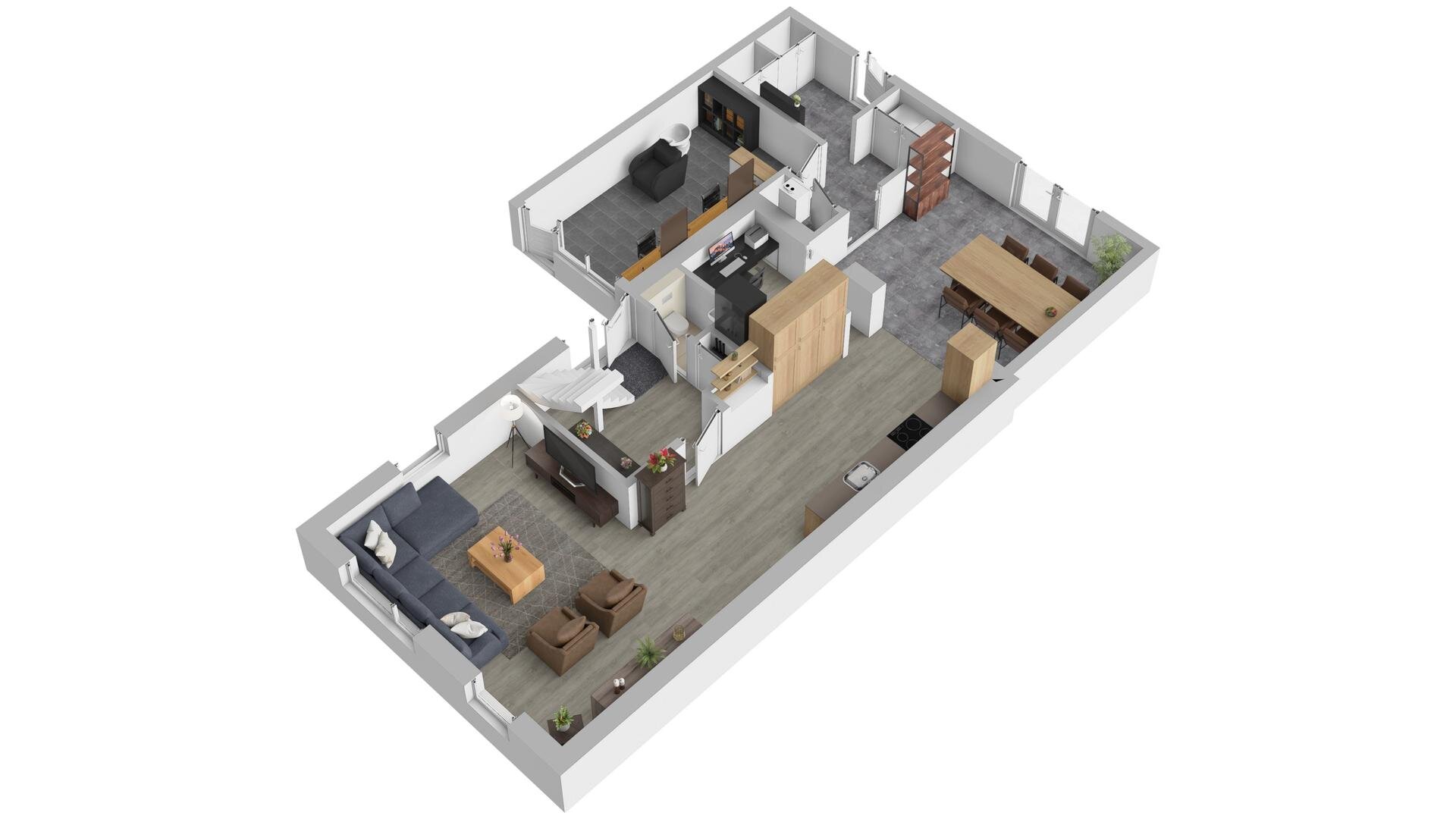 De begane grond is voorzien van duurzame PVC en plavuizen vloerafwerking met comfortabele vloerverwarming.
