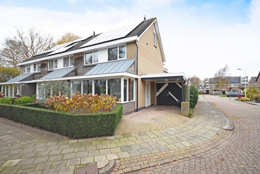 Op een rustige, kindvriendelijke locatie staat deze onder architectuur uitgebouwde en uitstekend onderhouden hoekwoning, met vrij uitzicht op een speelveldje, een verlengde stenen garage en een praktische carport.