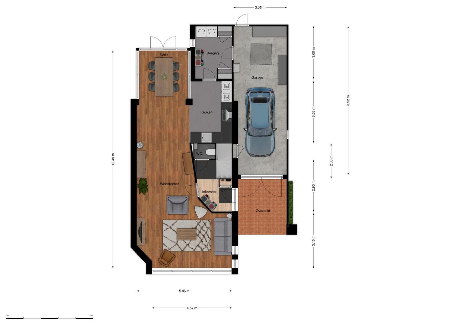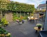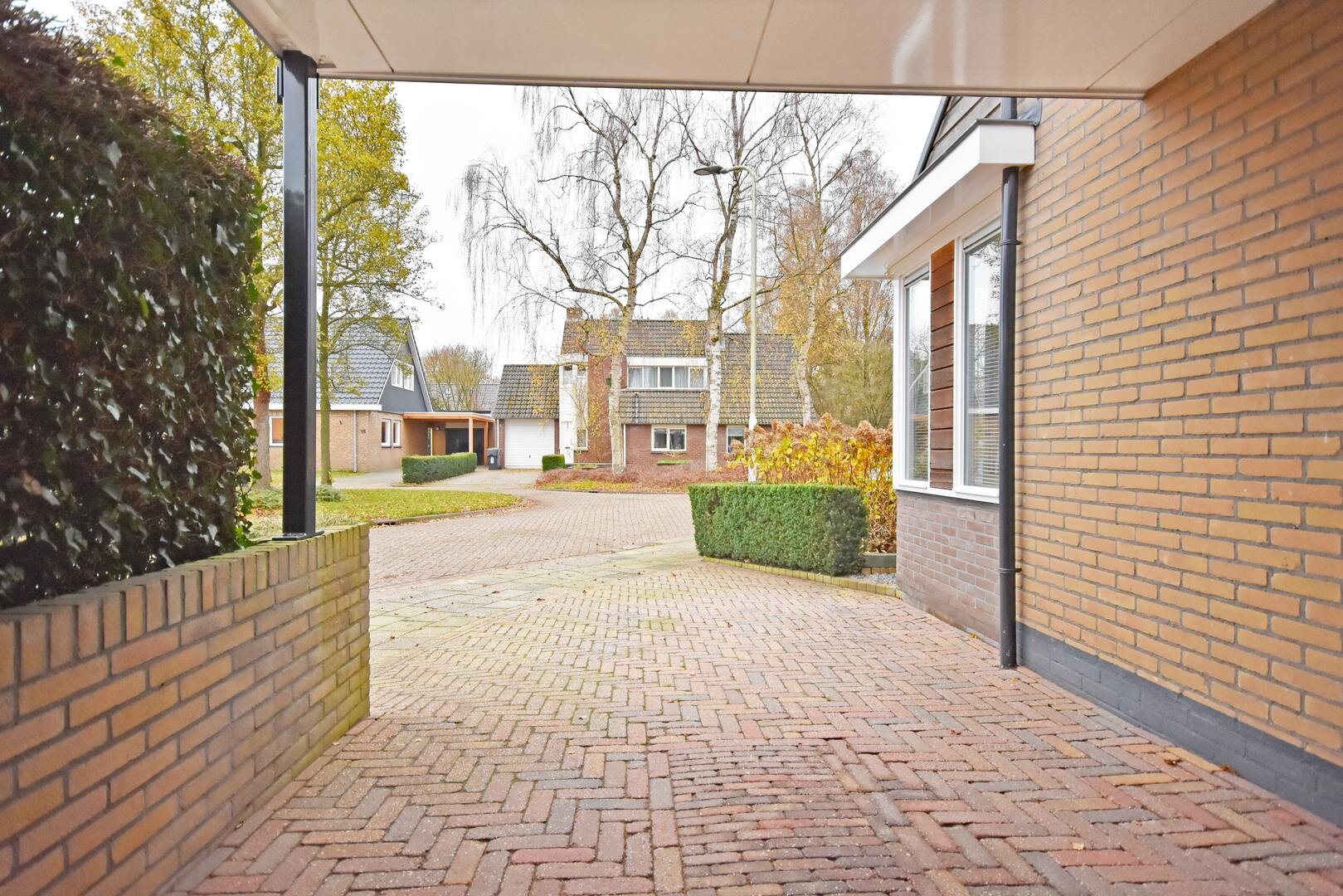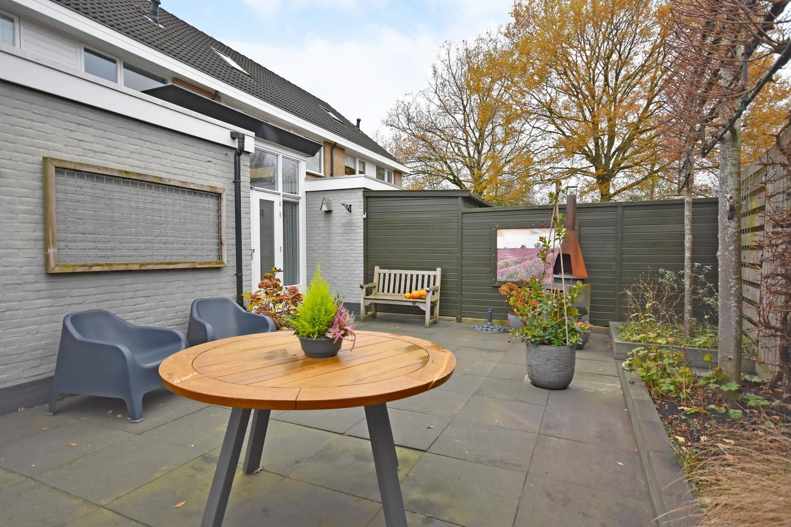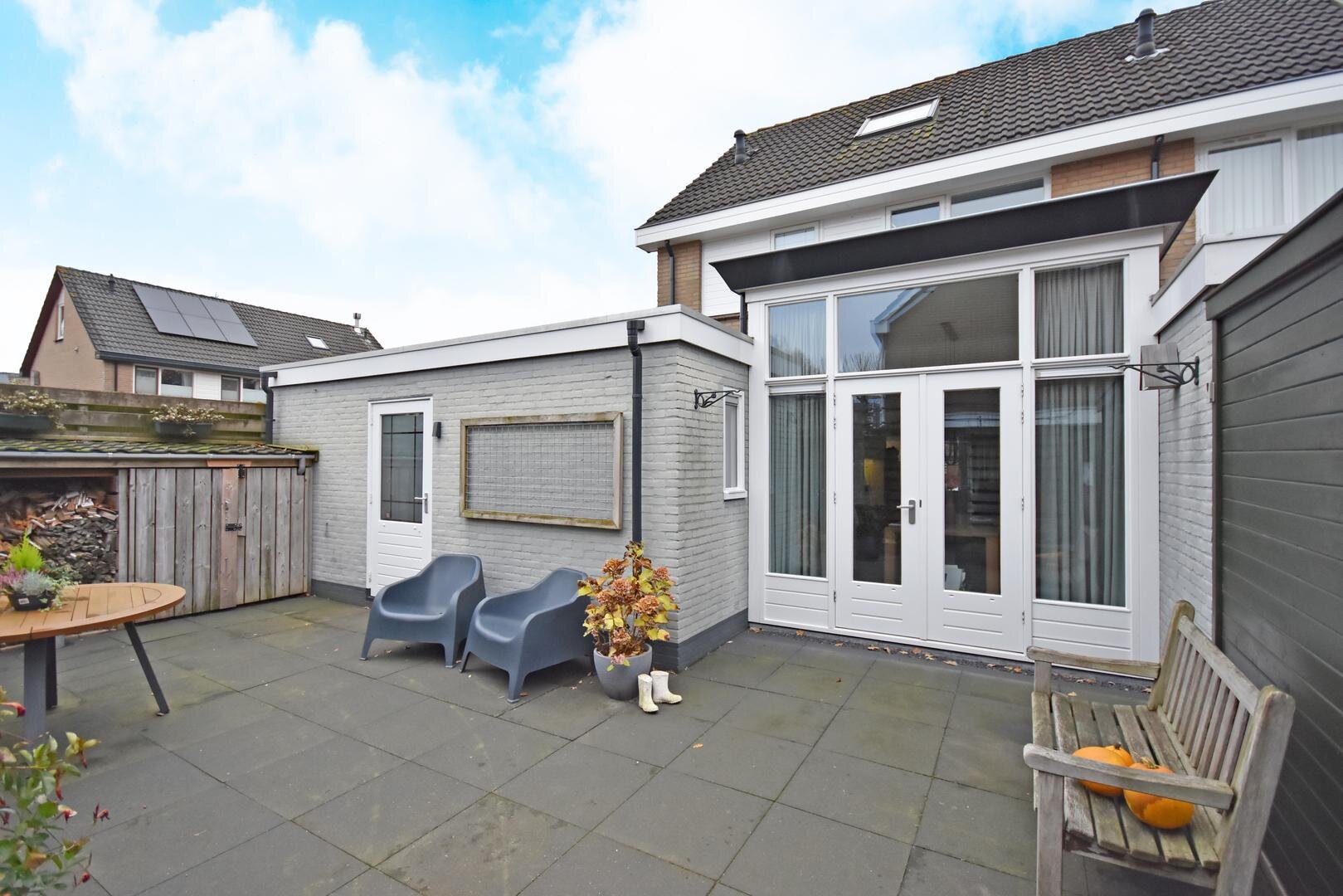 De onderhoudsarme tuin biedt een groot zonneterras, bergruimte en een afsluitbare achterom. Op de oprit, onder de carport en in de verlengde garage is ruime parkeergelegenheid voor meerdere auto's. De kavel meet 223 m² (incl. achterom/steeg) eigen grond.
