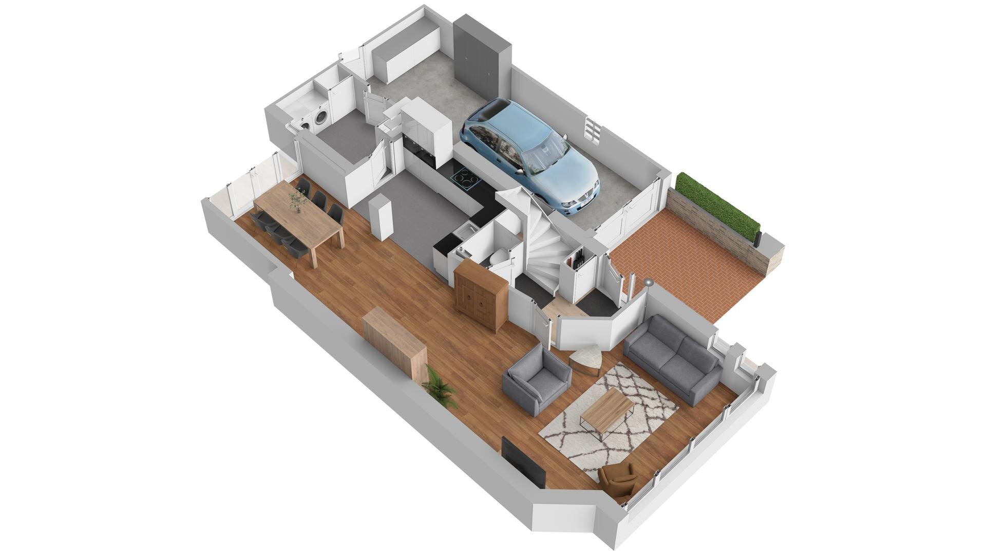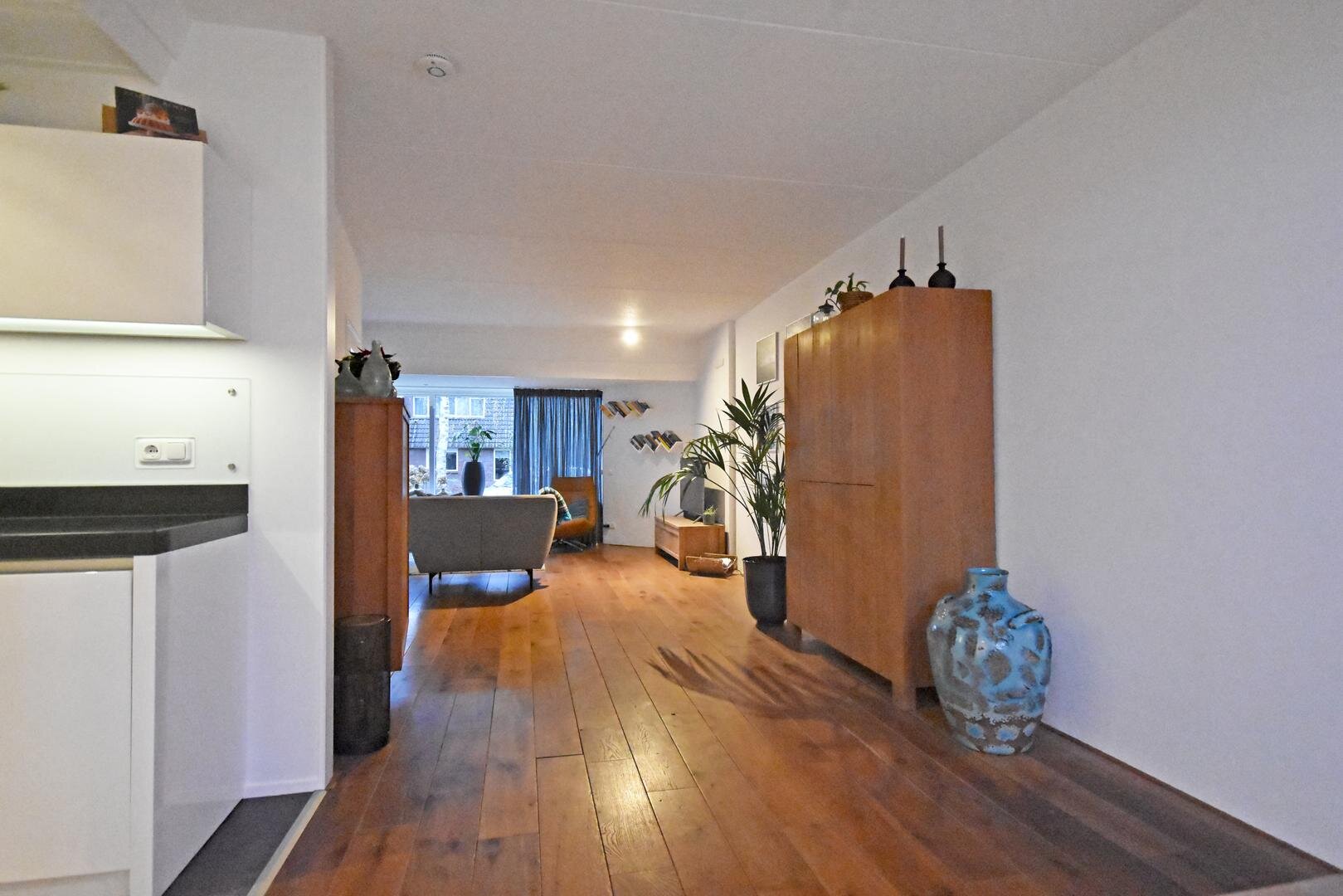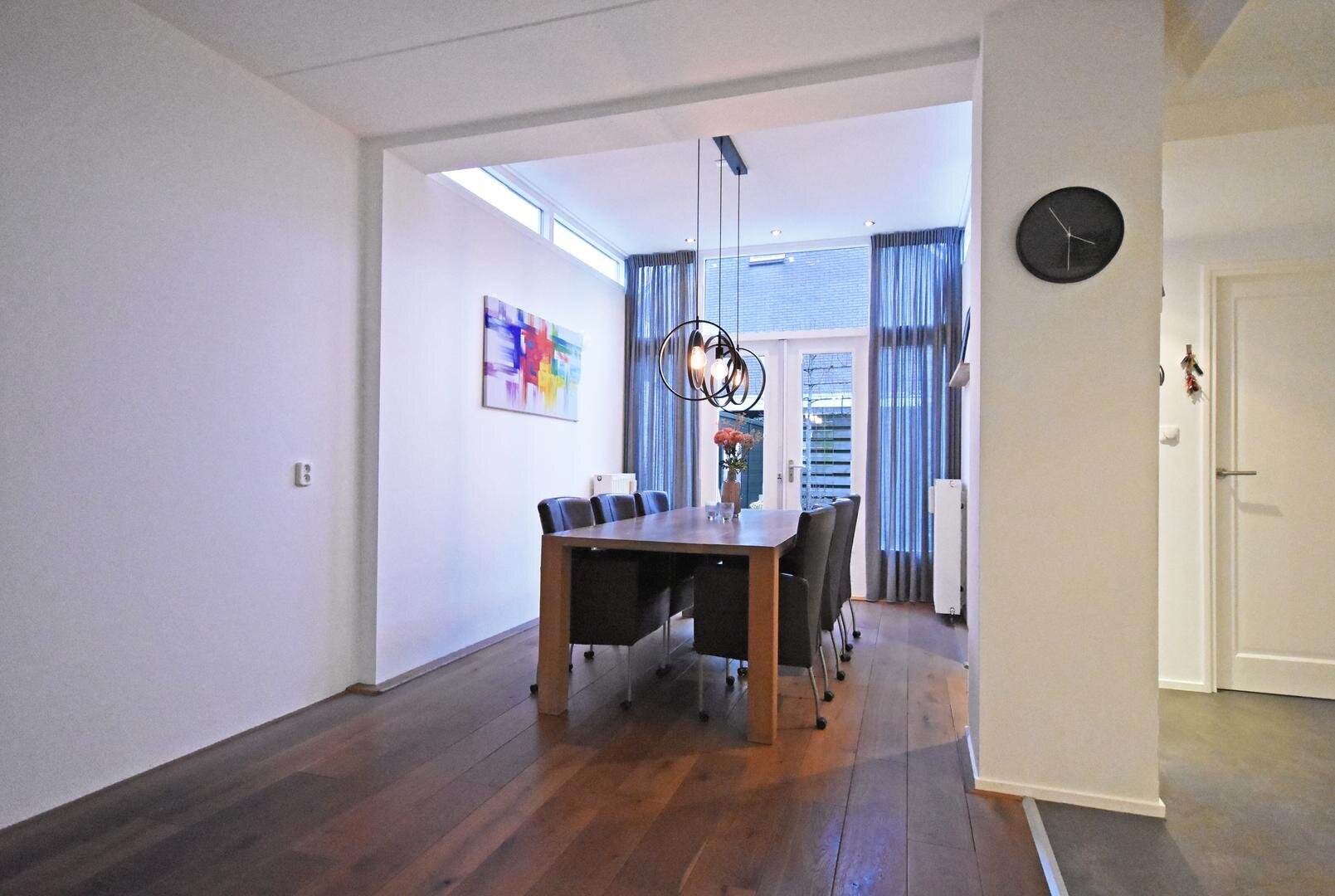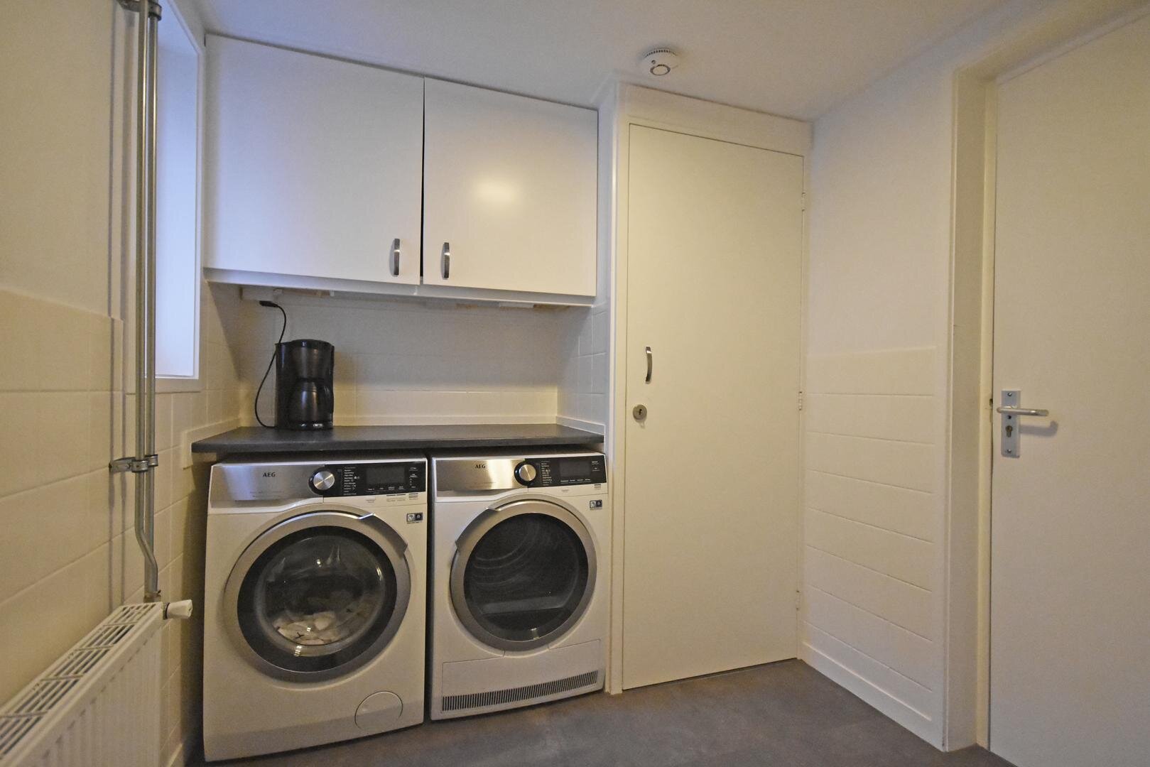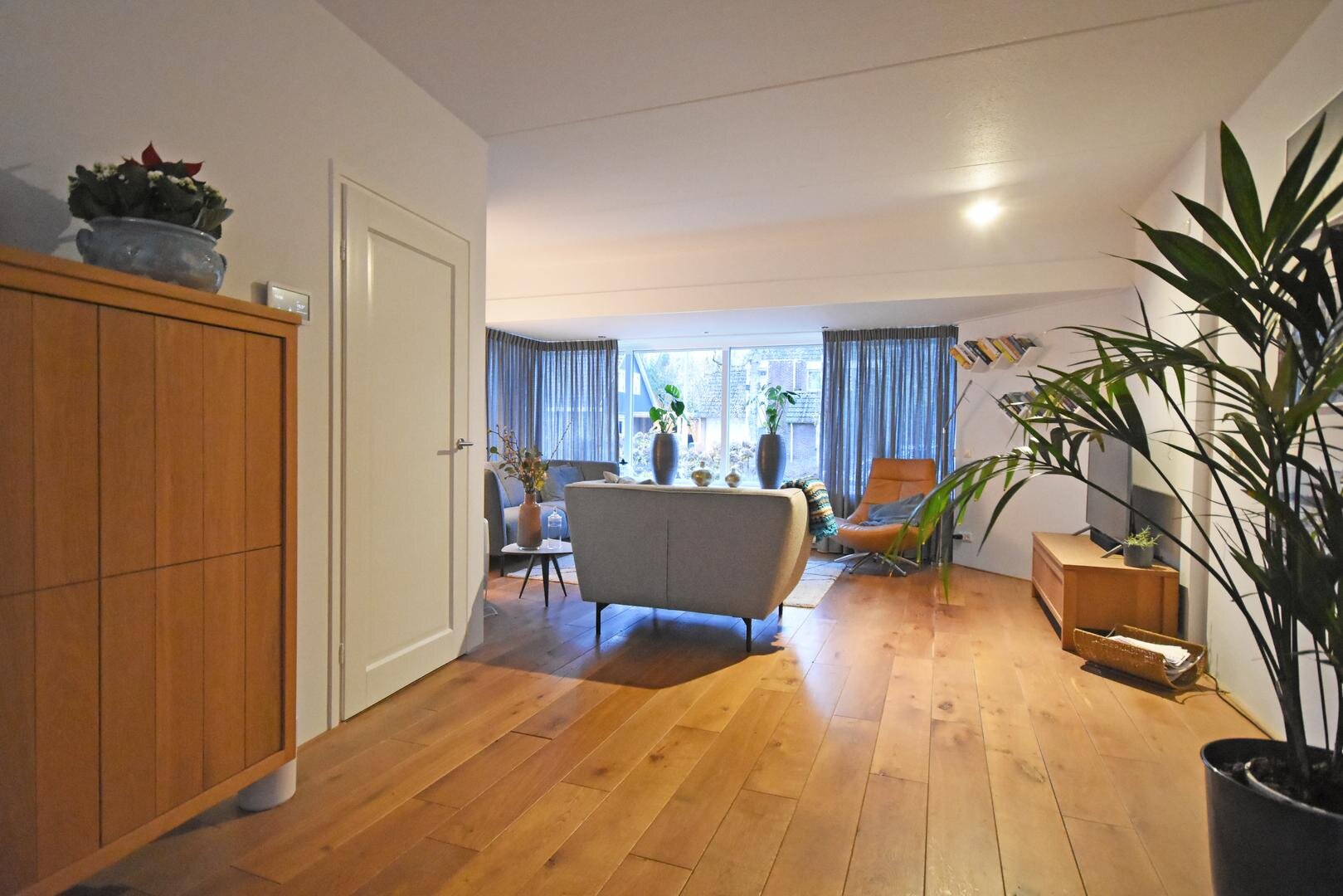 Begane grond: zij-entree, hal met PVC vloer, modern vrijdragend toilet (2023) met fonteintje, zonnige uitgebouwde woonkamer met eiken parketvloer, tuindeuren naar terras en fraaie erkerraam met ruim vrij uitzicht aan de voorzijde, open keuken met PVC vloer en moderne hoekopstelling voorzien van duurzaam blad, vele inbouwapparatuur (2020) en Quooker, uitpandige bijkeuken met PVC vloer, witgoed-aansluitingen, praktische vaste kasten en doorgang naar ruime verlengde garage met spoelbakje, twee lichtkoepels, trapkast, achter-entree en fraaie garagedeuren.