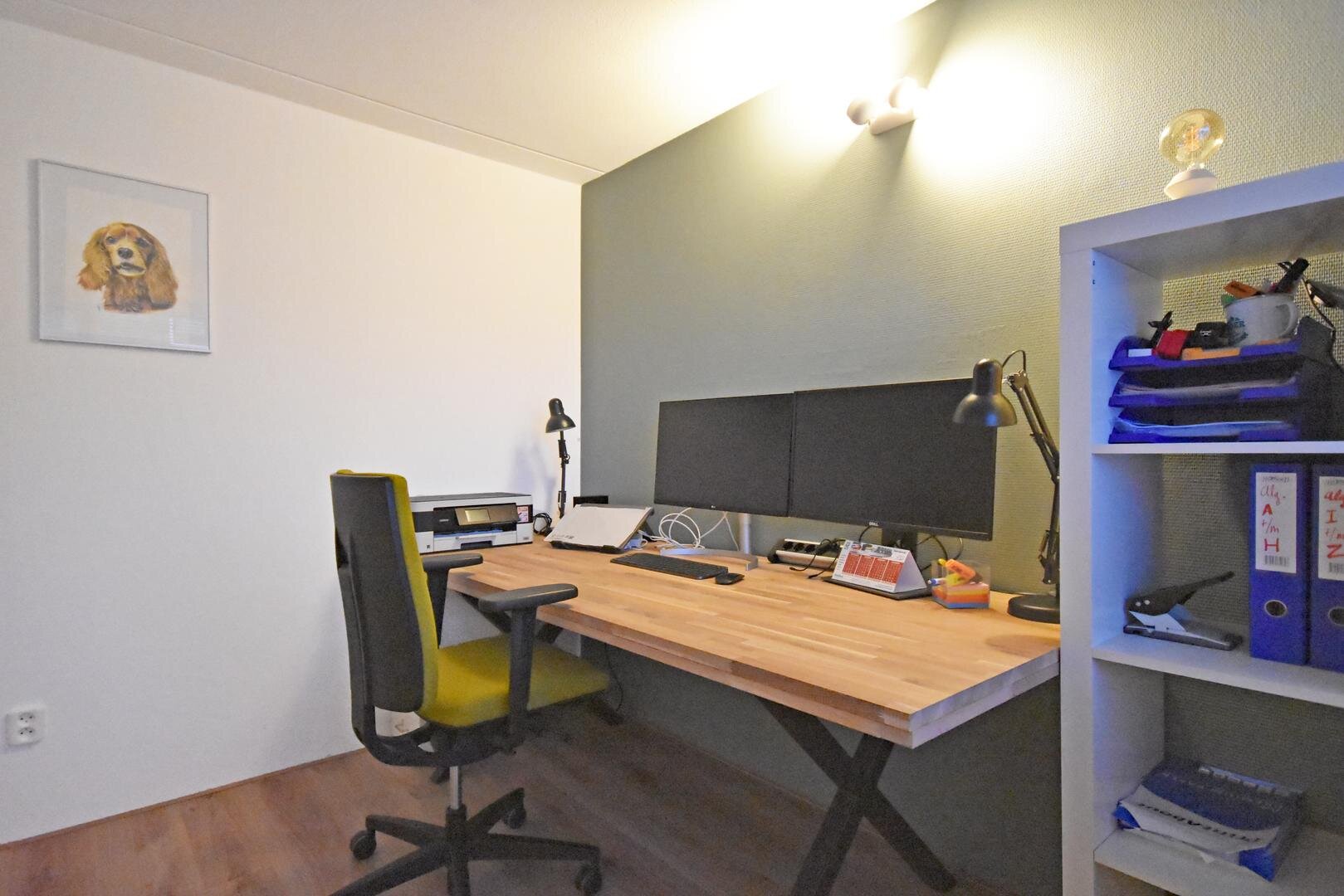 Vanuit de woonkamer heb je aan de voorzijde heerlijk vrij over het speelveld, de straat en gemeentelijk groen.