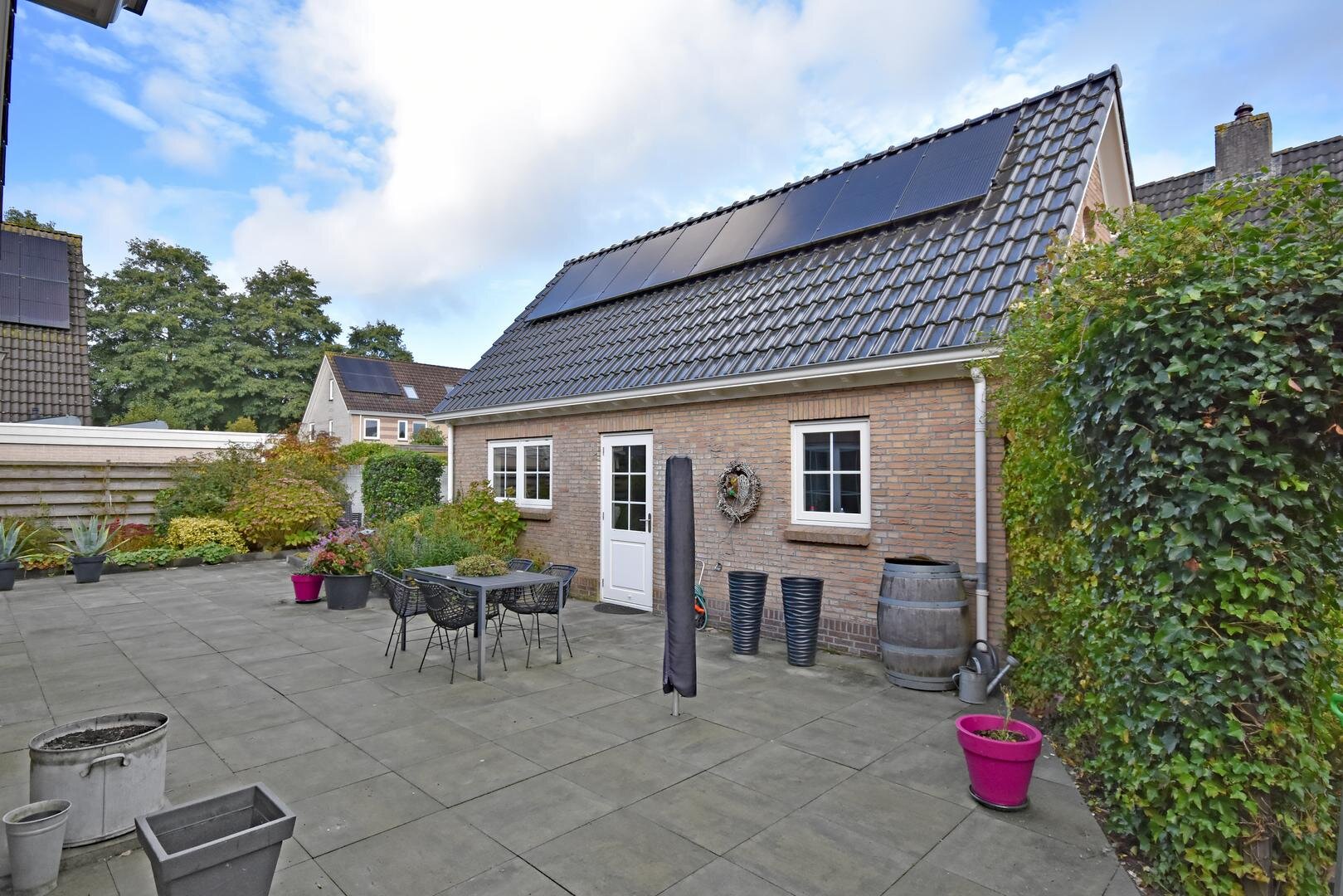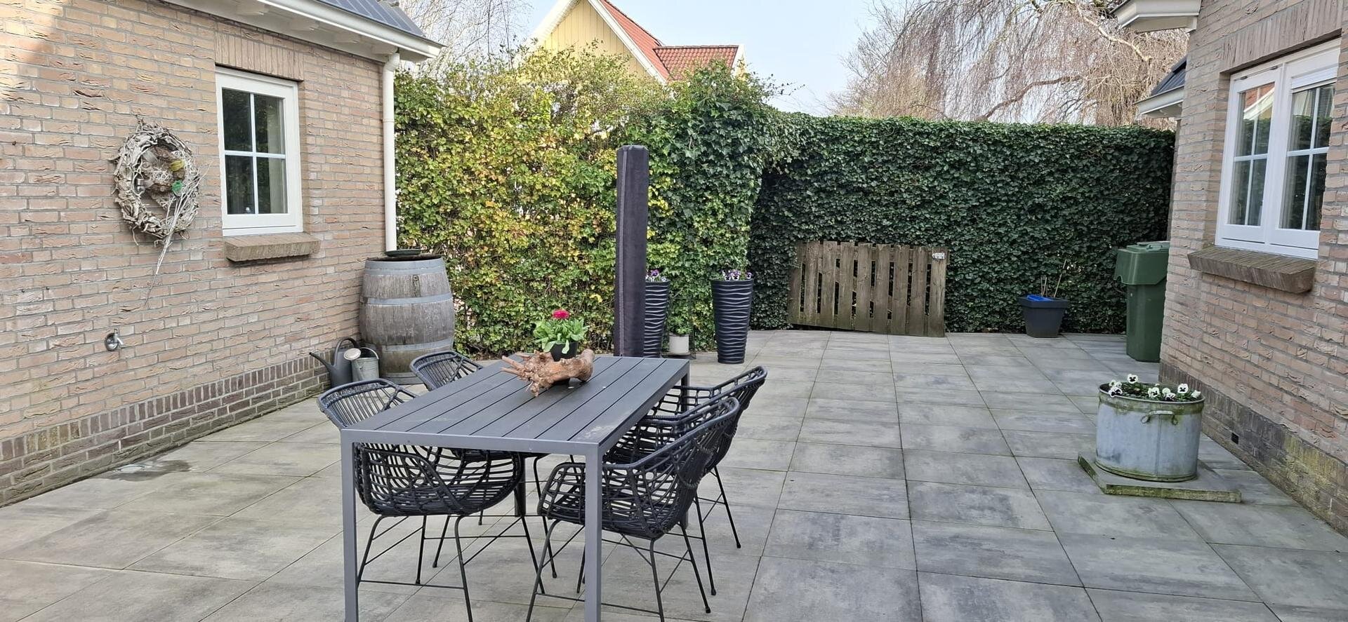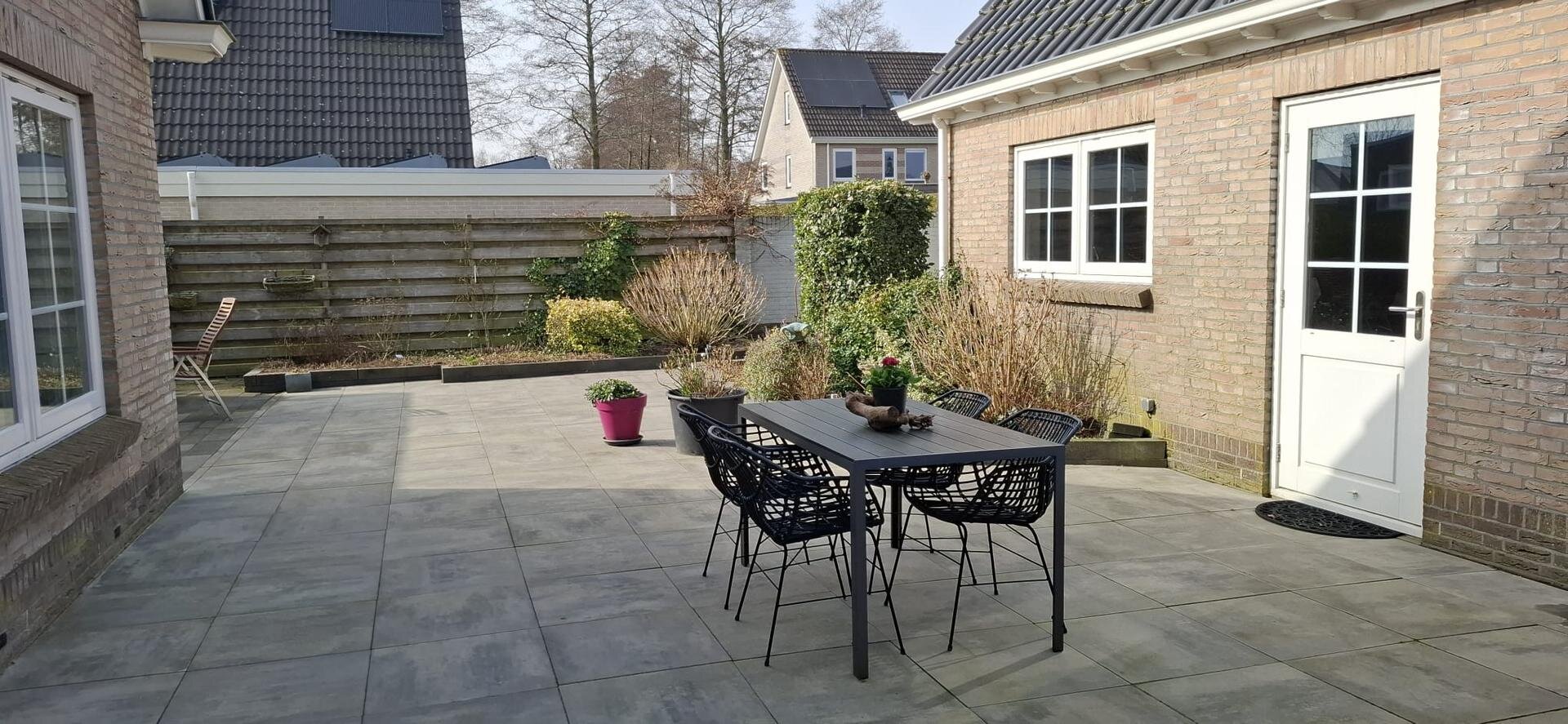 De brede oprit biedt volop parkeergelegenheid op eigen terrein – ook voor een caravan of camper – en via de oprit is de achtertuin eenvoudig bereikbaar.