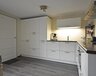 Begane grond: voor-entree, hal, toilet met fonteintje, zonnige uitgebouwde woonkamer met praktische trapkast en tuindeuren, tussenhalletje met trapopgang, ruime open keuken met moderne hoekopstelling voorzien van diverse inbouwapparatuur en veel bergruimte, ruime en keurig afgewerkte bijkeuken met witgoed-aansluitingen, achter-entree en vlizotrap naar bergzoldertje met technische ruimte.