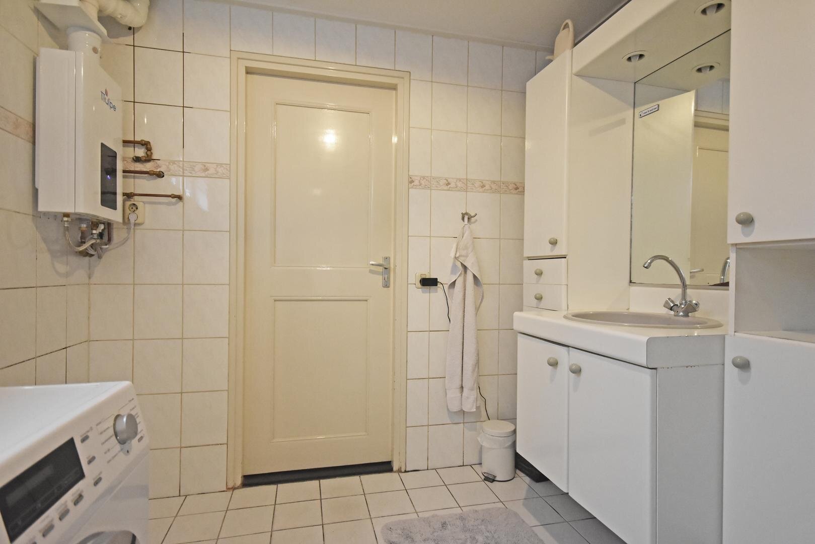 Begane grond: voor-entree, gang met plavuizenvloer, trapkast en kelder, eet/woonkeuken met houtenvloer, balkenplafond, schouw en nette lichte opstelling voorzien van diverse inbouwapparatuur, sfeervolle, ruime en zonnige woonkamer met parketvloer, balkenplafond, prachtige boekenkast en schouw, kantoor/werkkamer, hal met plavuizenvloer, garderobe en achter-entree, vrijdragend toilet met fonteintje, slaapkamer met balkenplafond, nette lichte badkamer met douche, wastafelmeubel en witgoed-aansluitingen.