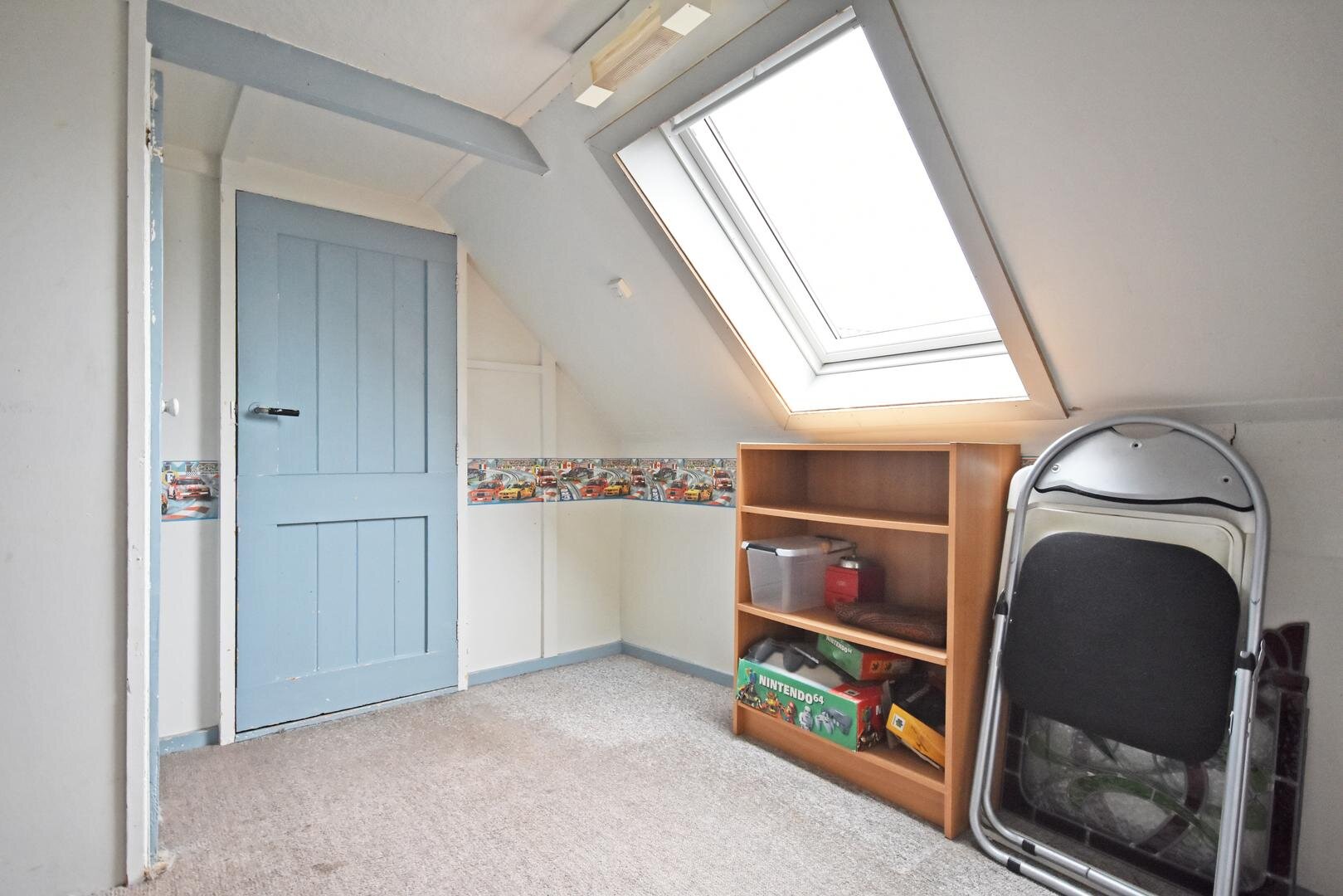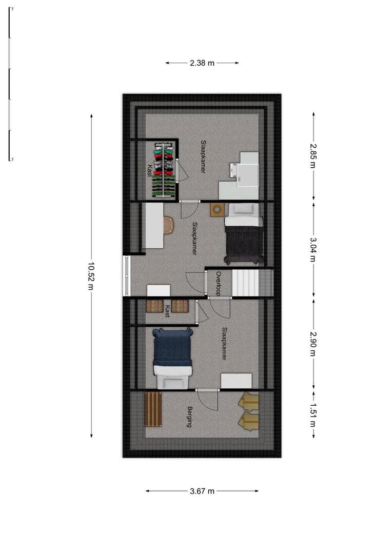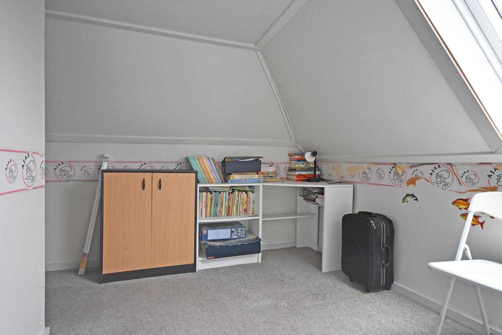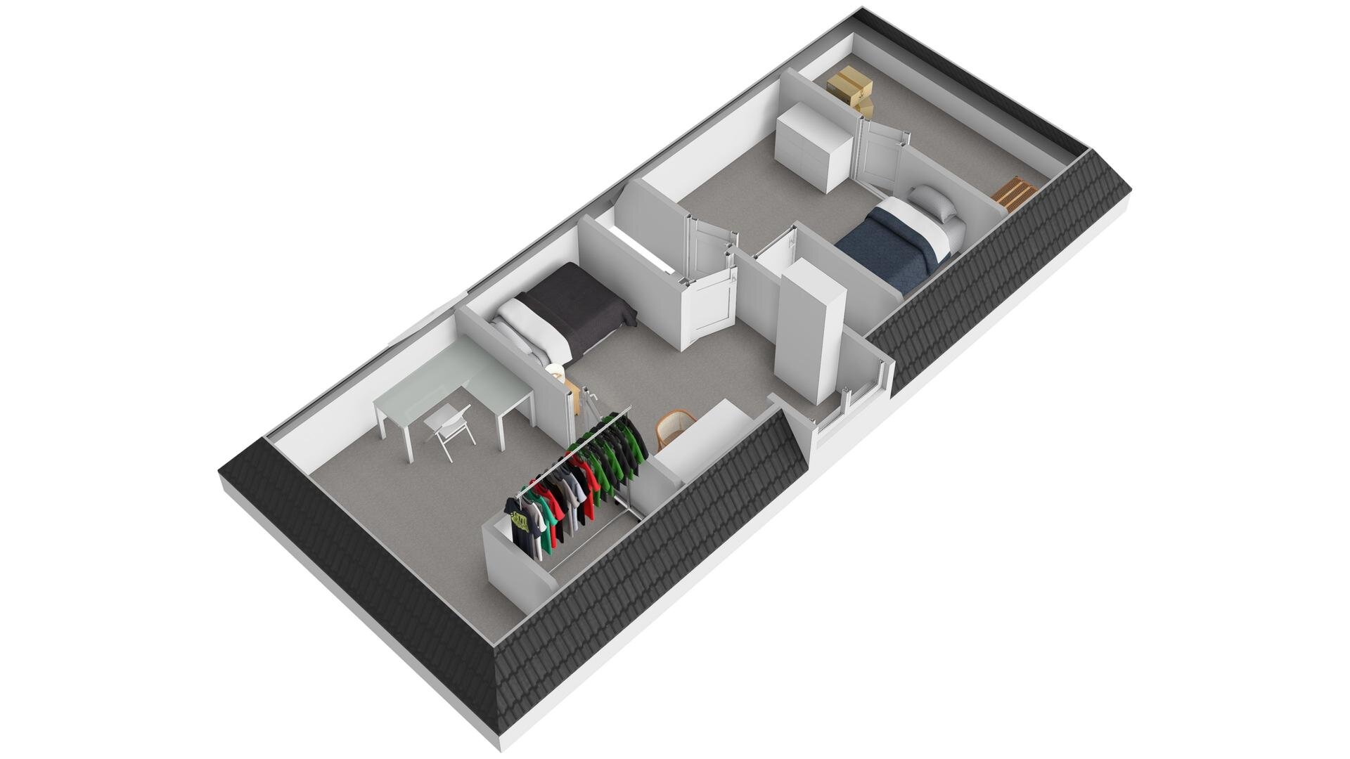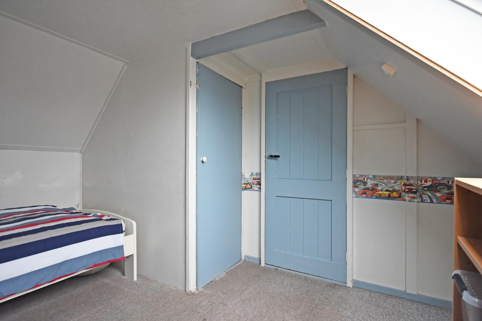 1e verdieping: overloop, slaapkamer met vaste kast en bergzolder, twee kleinere direct aan elkaar grenzende slaapkamer(tjes) waarvan 1 met dakkapel en 1 met vaste kast.