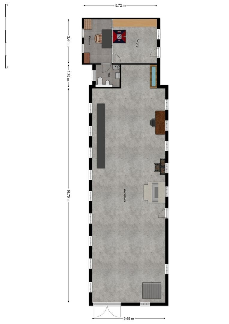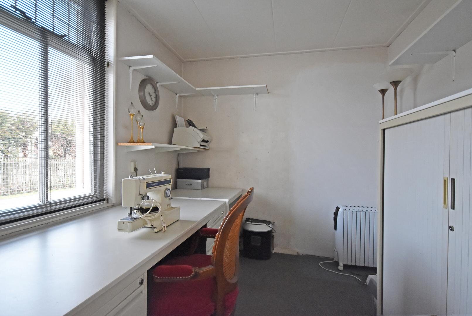 Een bijzonder pluspunt is de ruime werkplaats met kap, waar voorheen een smederij was gevestigd. Deze ruimte meet maar liefst circa 95 m² op de begane grond en biedt volop mogelijkheden. Aansluitend is later een kantoorruimte met toiletruimte en berging gerealiseerd (samen circa 25 m²), welke centraal worden verwarmd. Hierdoor is het geheel uitermate geschikt voor de serieuze hobbyist, ondernemer of thuiswerker. Het perceel heeft een woonbestemming, waarbij aan huis gebonden beroepen en bedrijven onder voorwaarden zijn toegestaan.