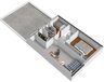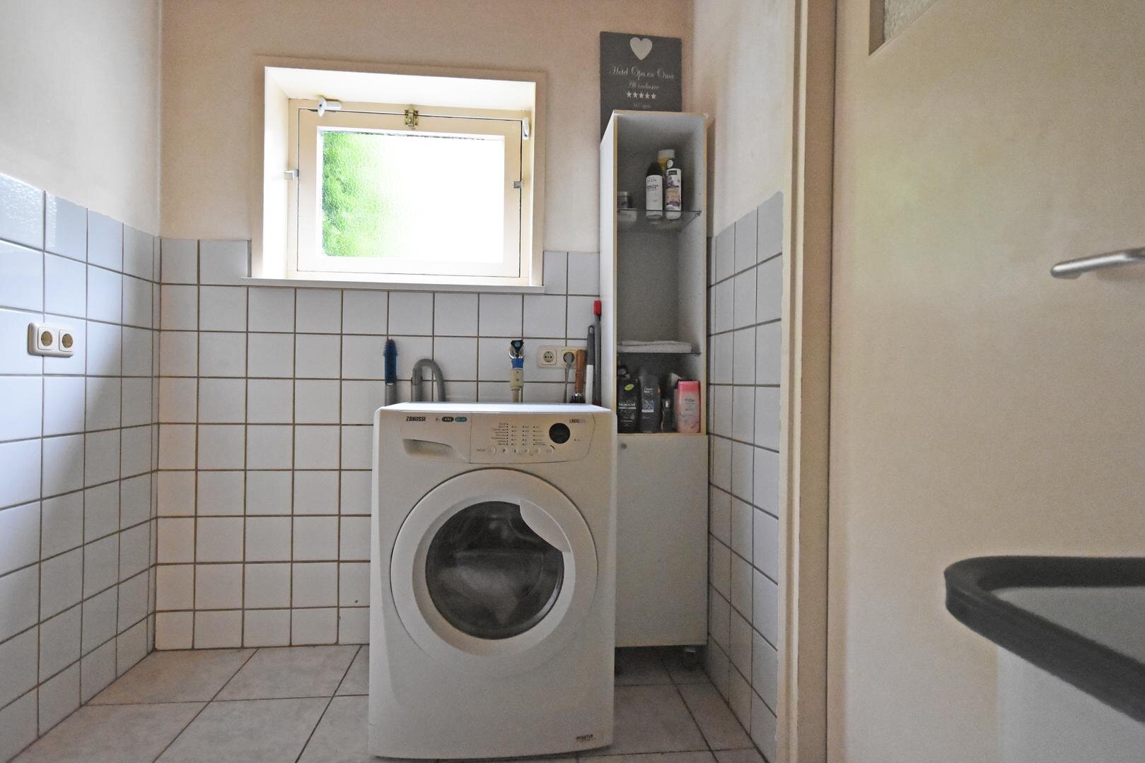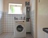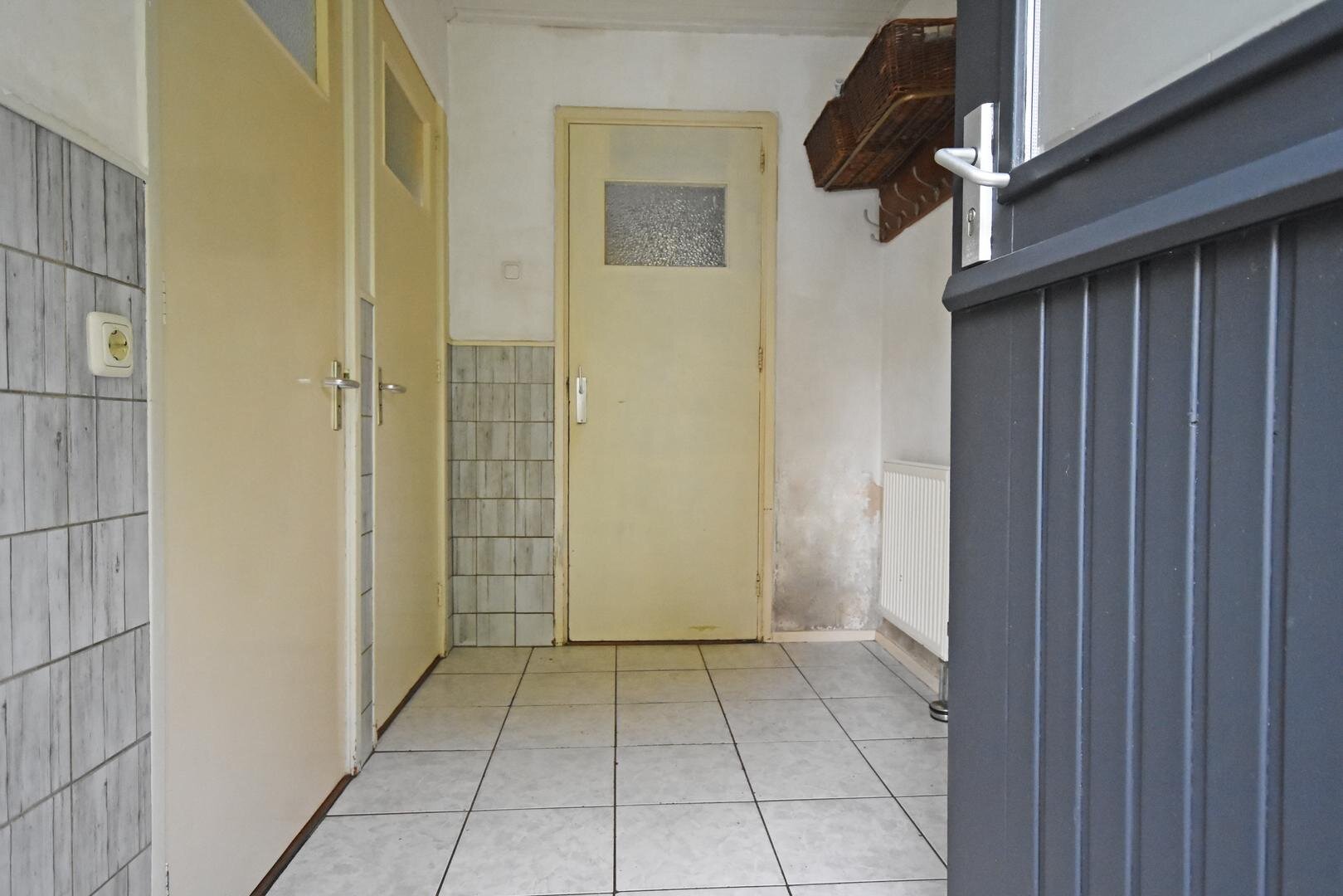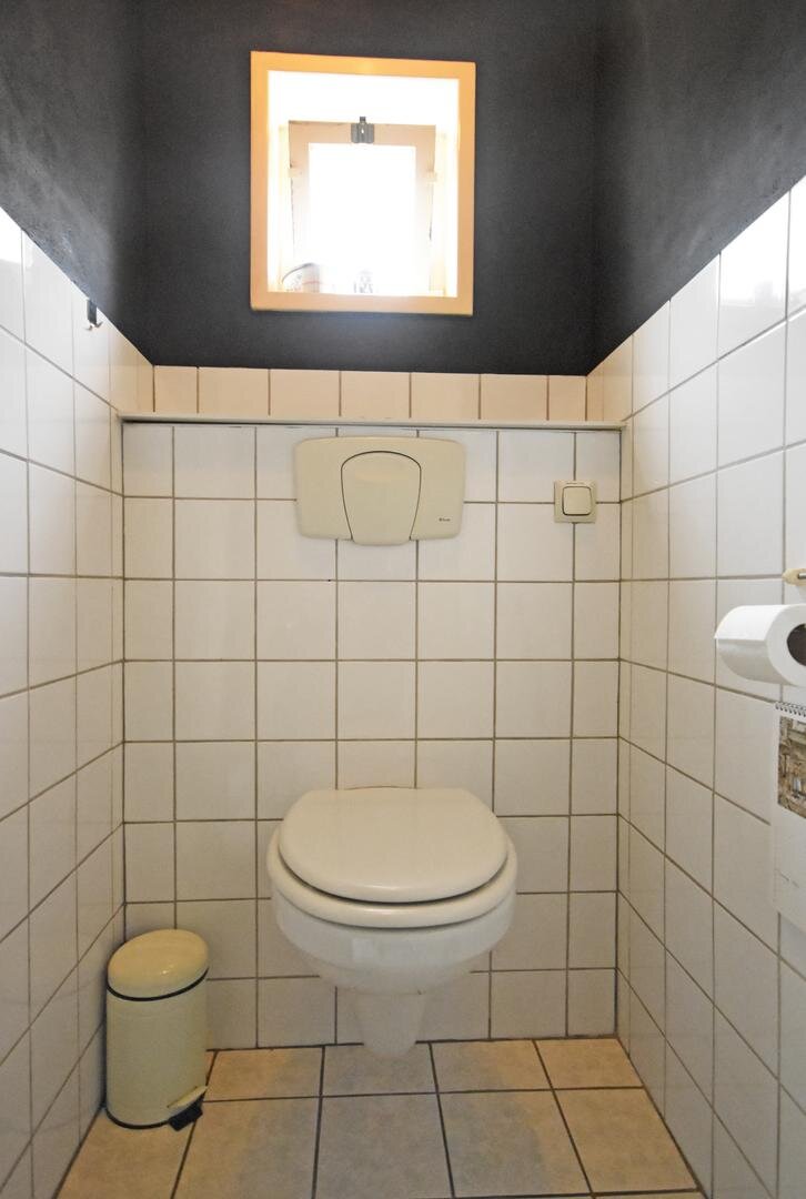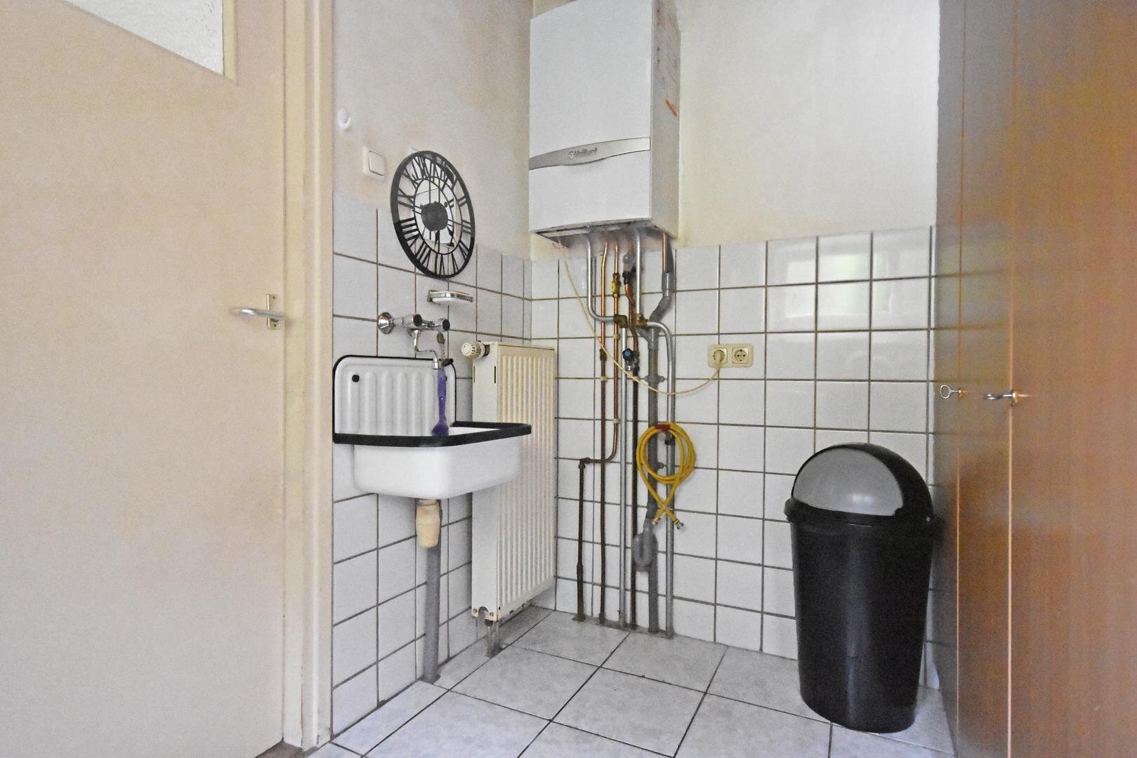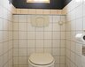 plavuizenvloer, spoelbakje en c.v.-opstelling, nette badkamer met douche en wastafel, vrijdragend toilet.