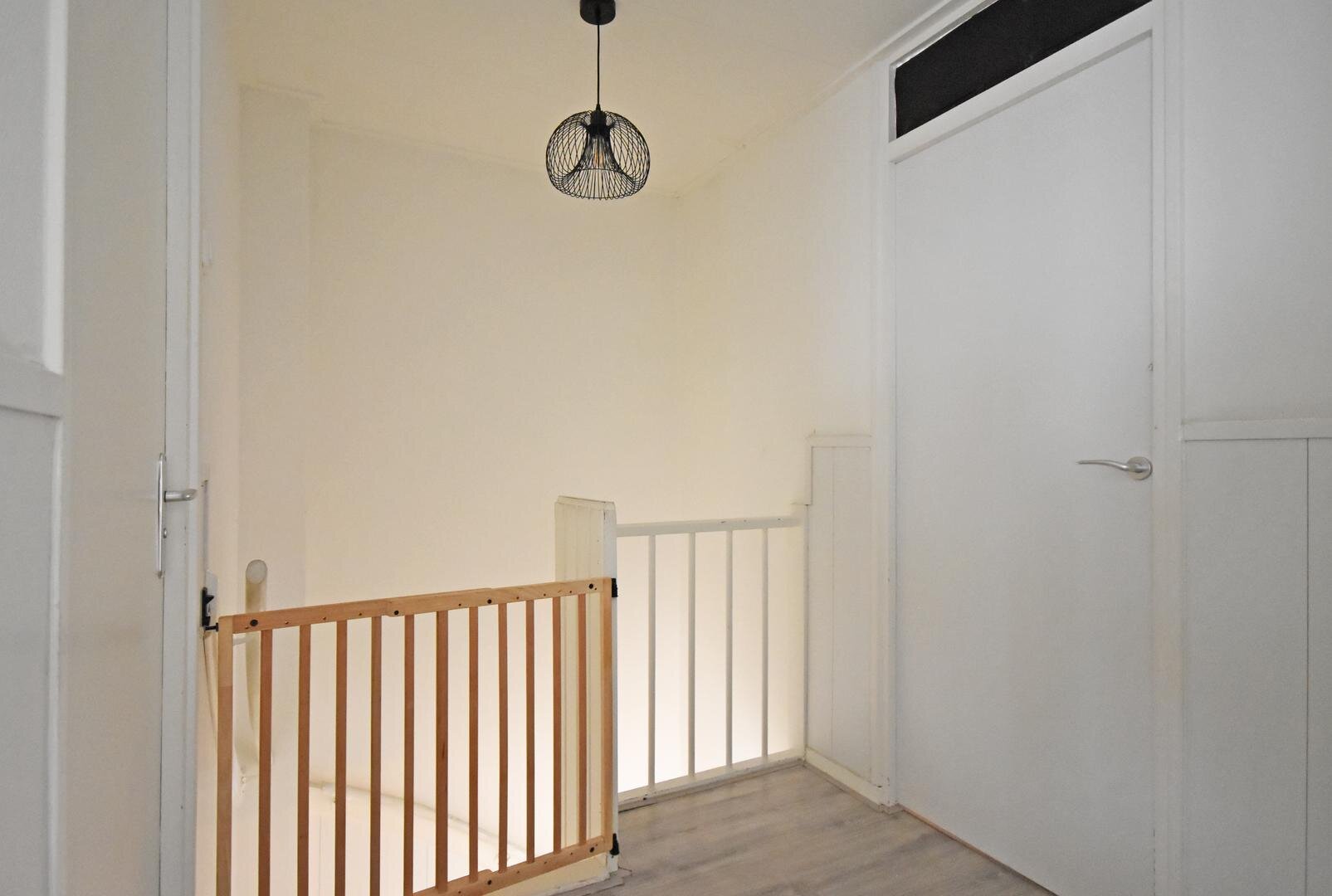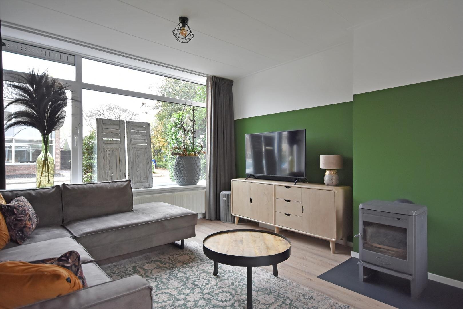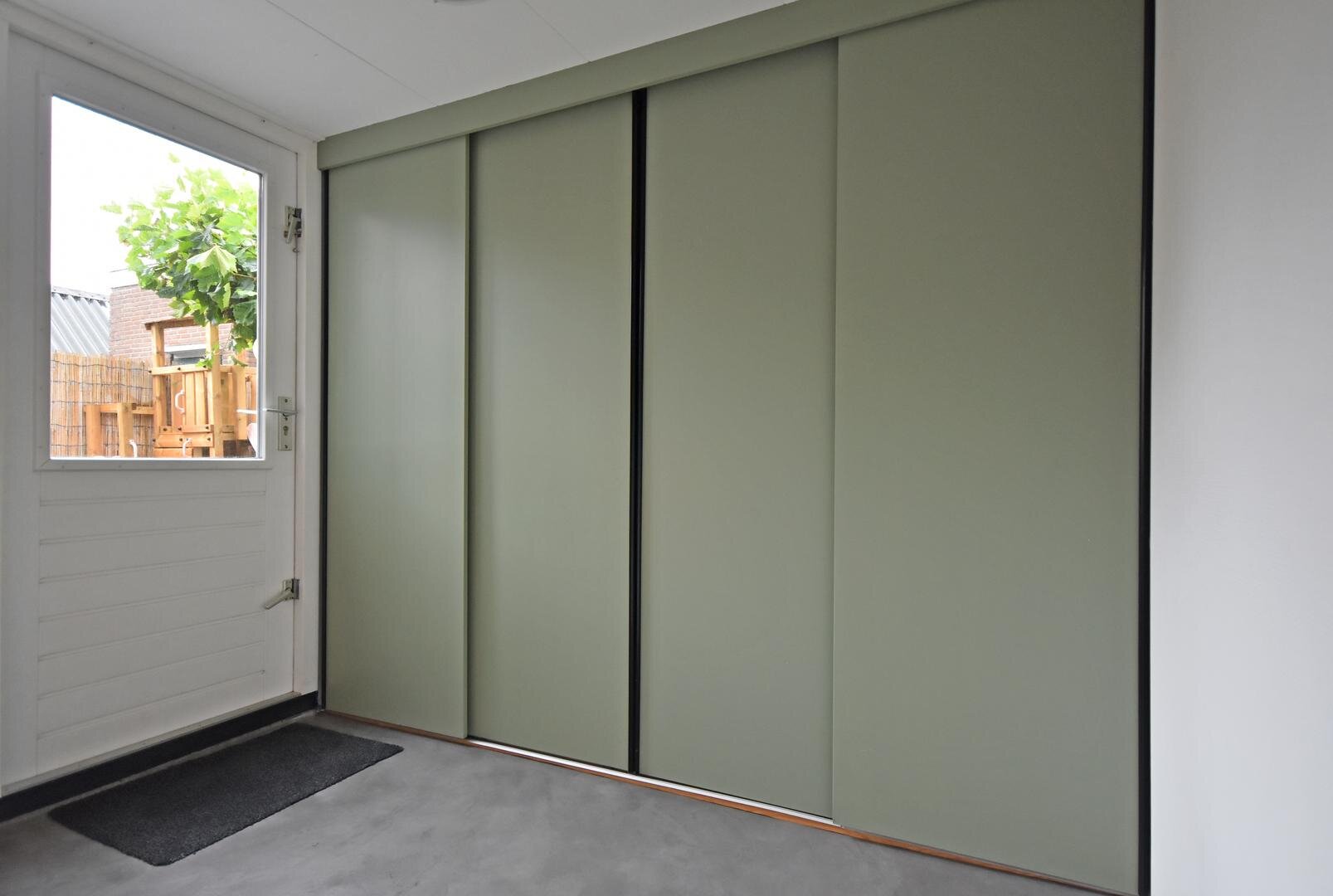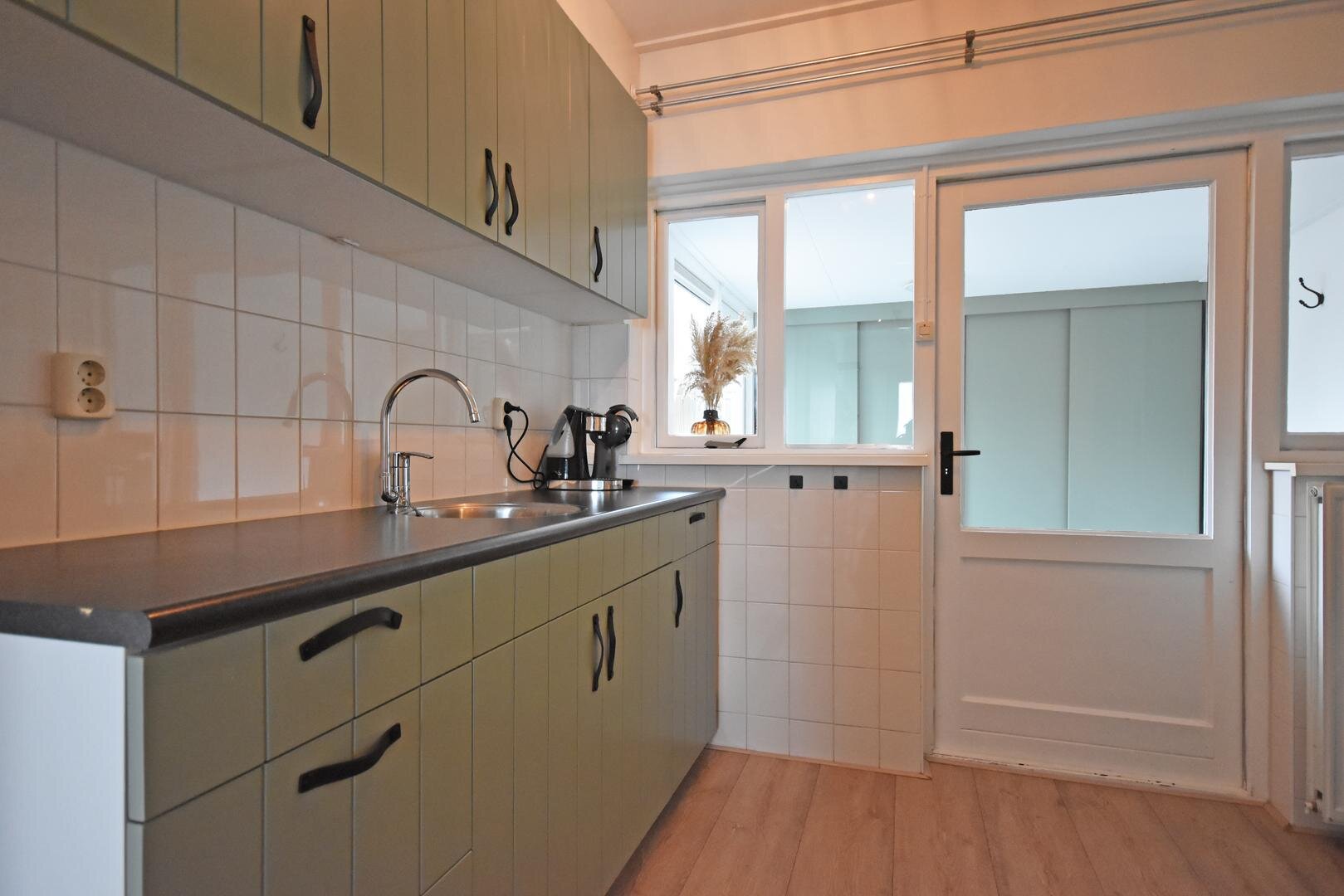Begane grond: voor-entree, hal met laminaatvloer en vast kast, gemoderniseerd toilet, keuken met laminaatvloer, praktische kelderkast en nette opstelling, strakke woonkamer met laminaatvloer en sfeervolle houtkachel, aangebouwde ruime bijkeuken (2016) met vaste kastenwand (met witgoed-aansluitingen) en achter-entree.