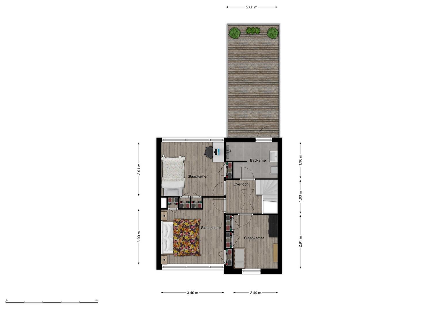 2e verdieping: vlizotrap naar bergzolder met c.v.-opstelling.