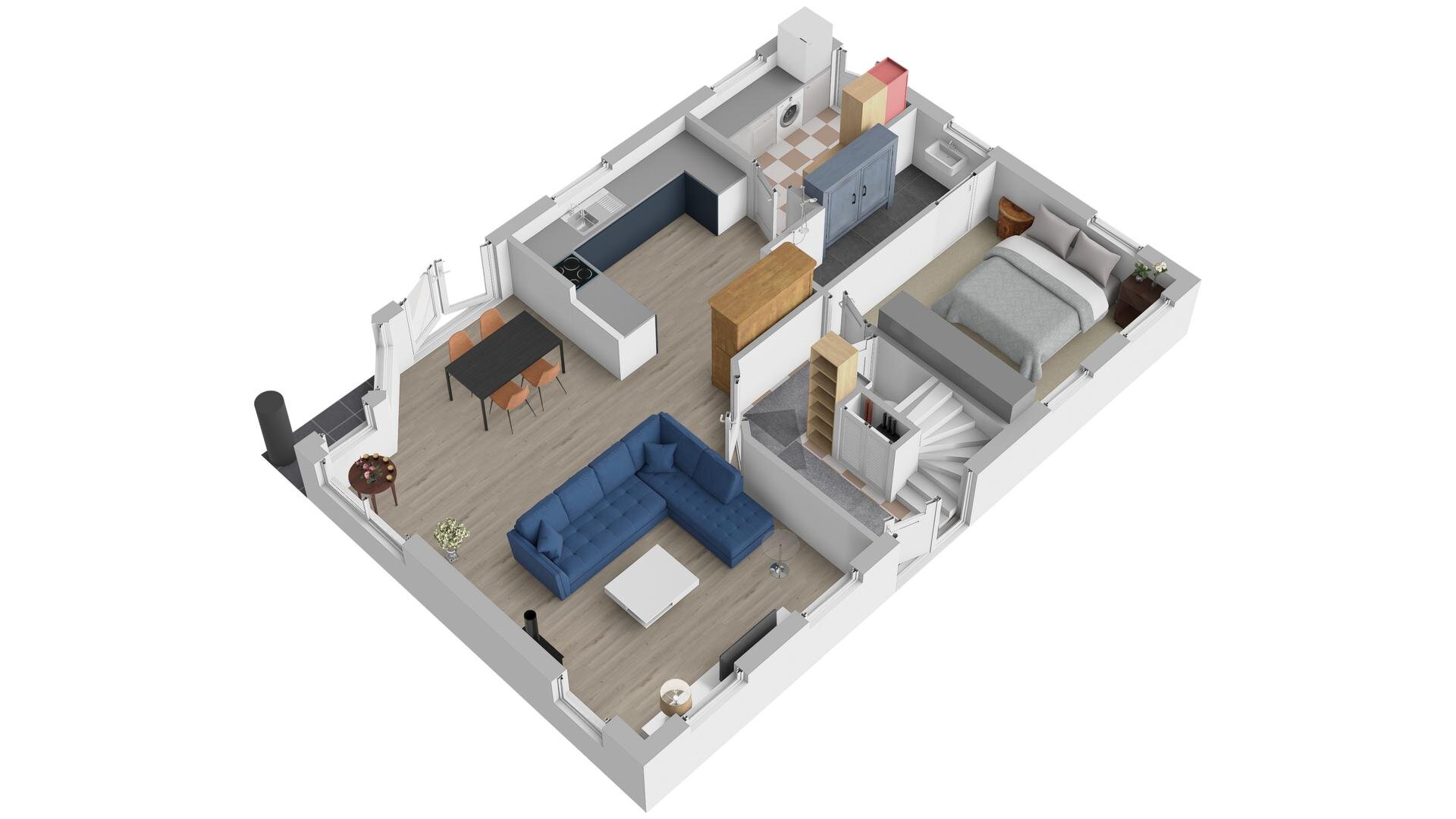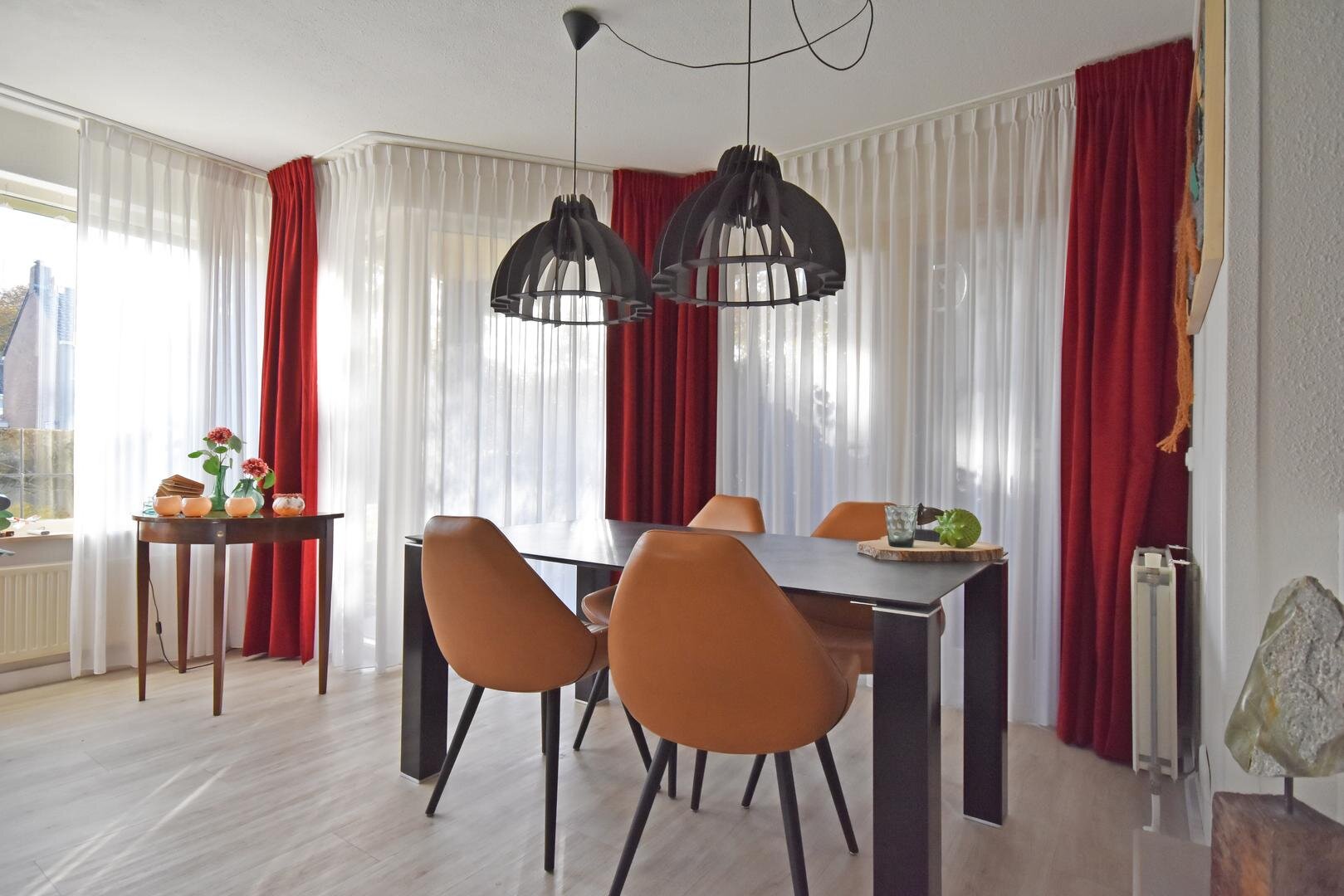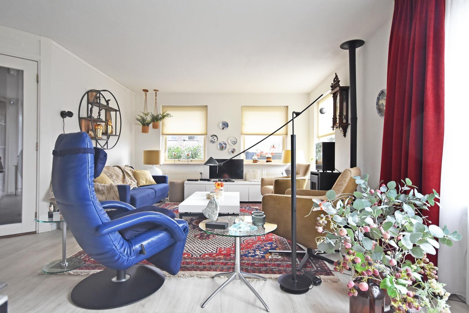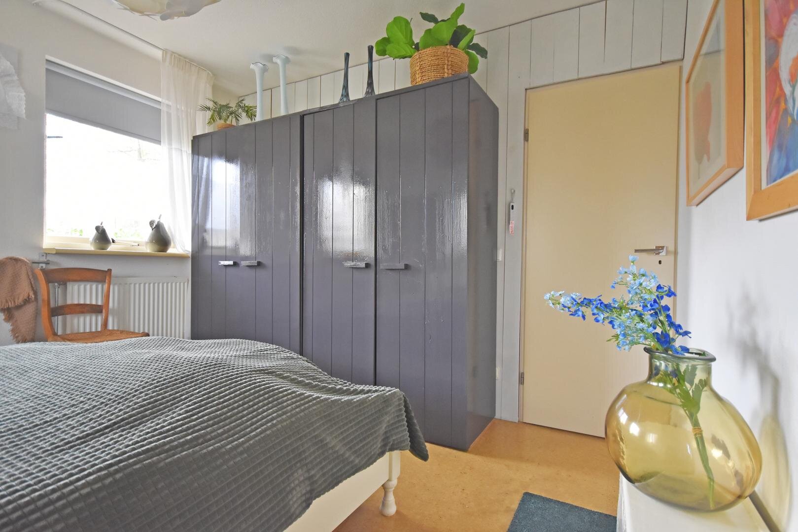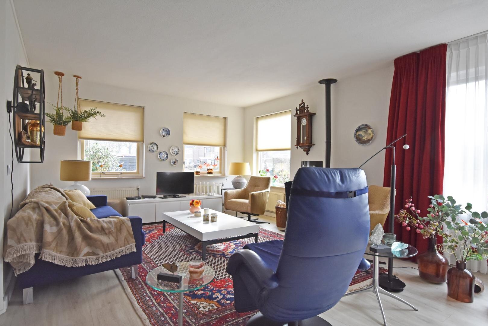 Binnen valt direct de prettige lichtinval op. Door de zuidelijke ligging is de woonkamer aangenaam licht en ontstaat er een open en ruimtelijk gevoel. Het aanwezige rookkanaal biedt de mogelijkheid om een hout- of pelletkachel te plaatsen, wat extra sfeer kan toevoegen in de koudere maanden.