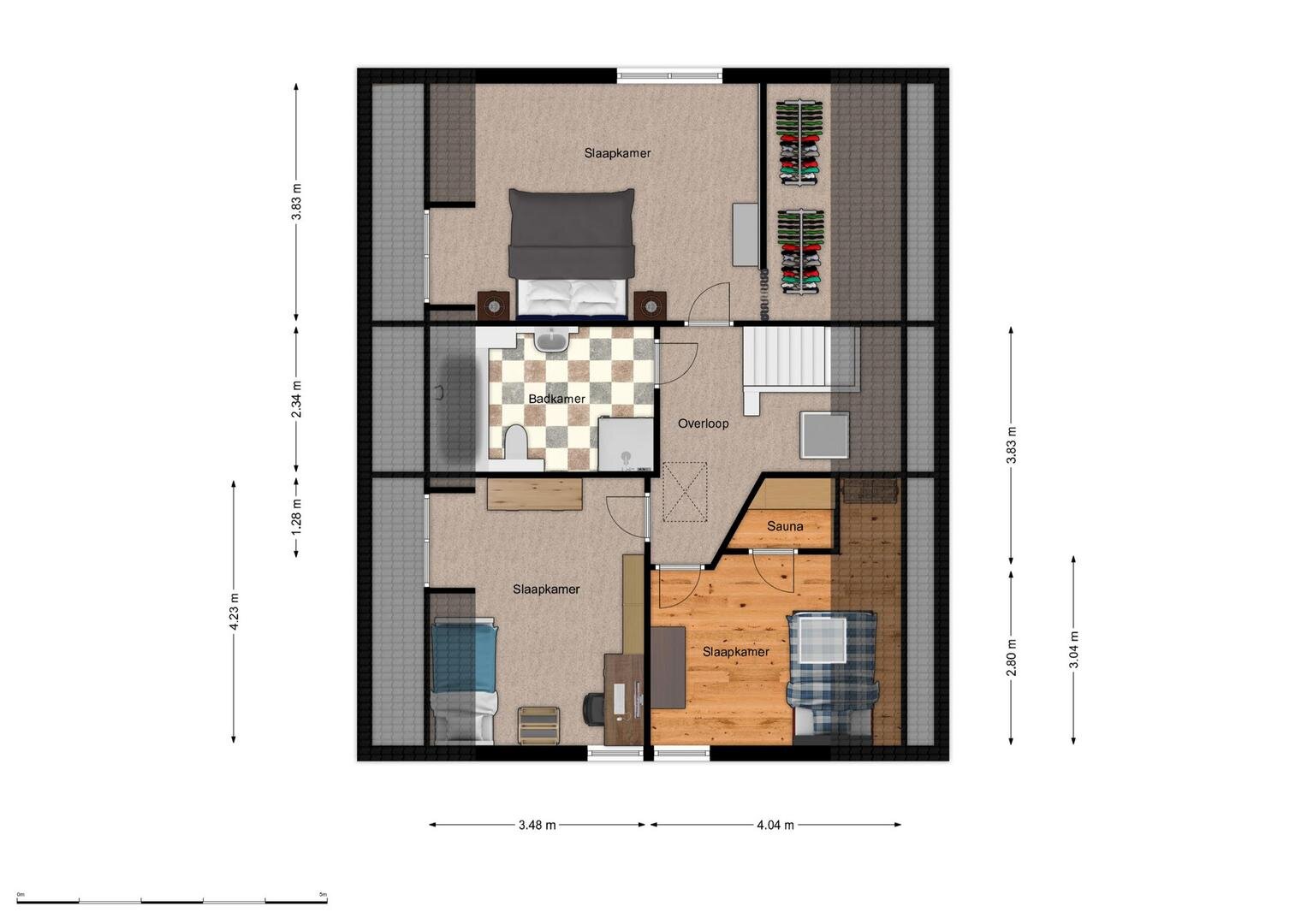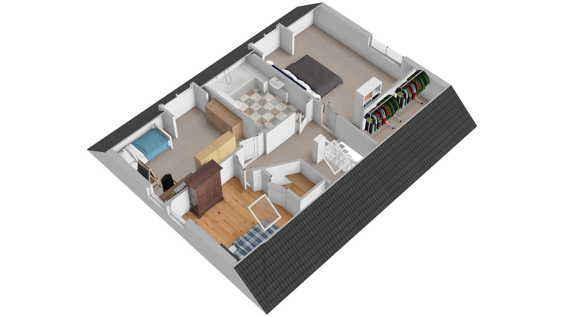 2e verdieping: schuiftrap naar ruime bergzolder.