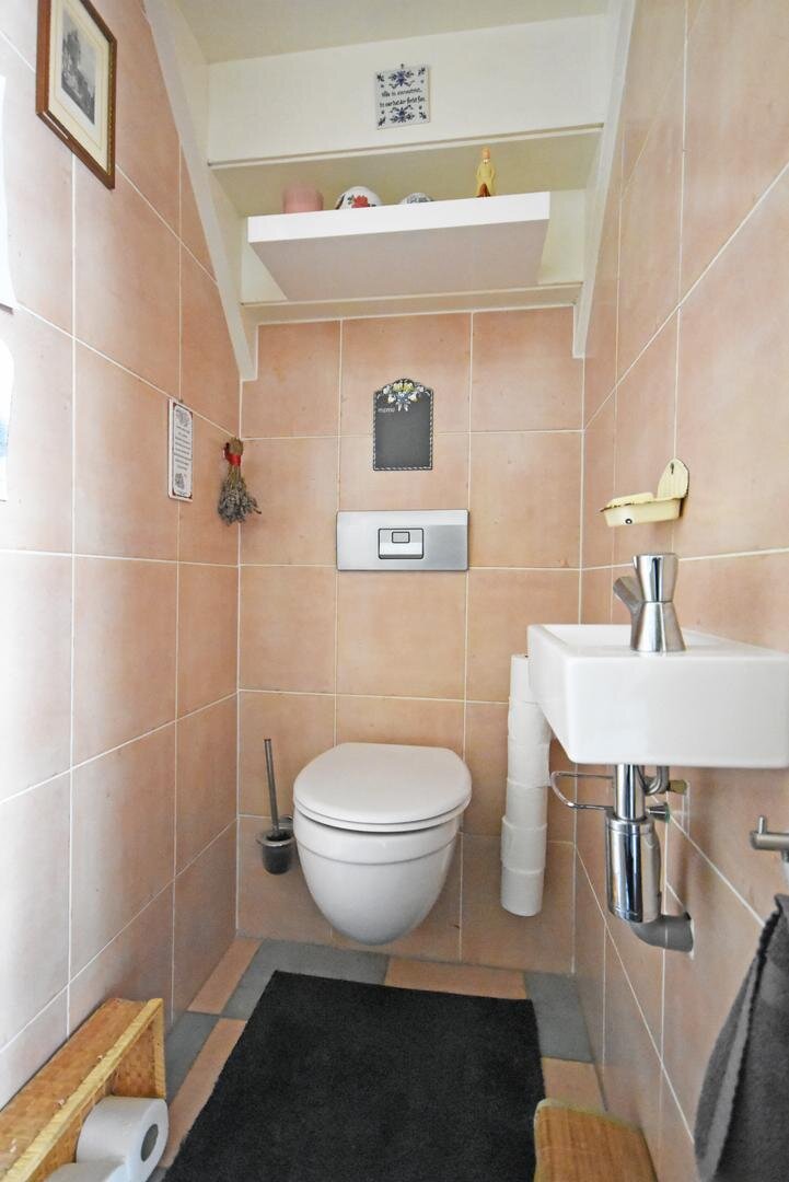 Begane grond: zij-entree, hal met plavuizenvloer, vrijdragend toilet met fonteintje, slaapkamer met gemoderniseerde badkamer en-suite voorzien van inloopdouche en wastafel, zonnige woonkamer met moderne PVC vloer, rookkanaal (geschikt voor bijvoorbeeld hout- of palletkachel) en tuindeuren met grote raampartij, halfopen keuken met moderne laminaatvloer, tuinzicht en U-opstelling voorzien van diverse inbouwapparatuur, bijkeuken met plavuizenvloer, c.v.-opstelling, witgoed-aansluitingen en achter-entree.