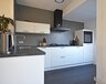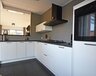 Begane grond: voor-entree, hal met laminaatvloer, modern vrijdragend toilet met fonteintje, zonnige Z-vormige woonkamer met laminaatvloer, schuifpui en praktische trapkast, halfopen deels uitpandige keuken met plavuizenvloer en moderne hoekopstelling (2022) voorzien van diverse inbouwapparatuur, aangebouwde ruime bijkeuken met plavuizenvloer, achter-entree en vaste kastenwand met witgoedaansluitingen.