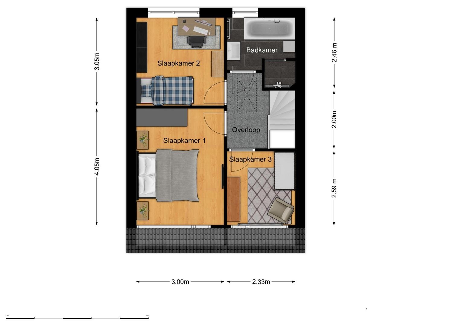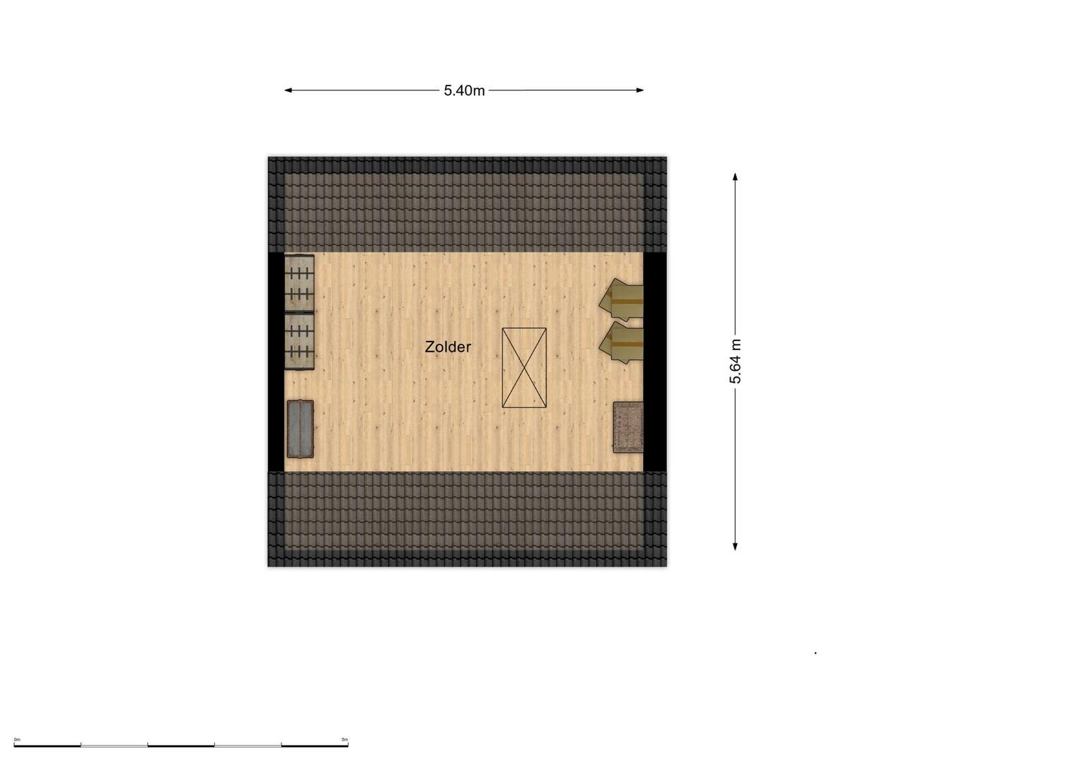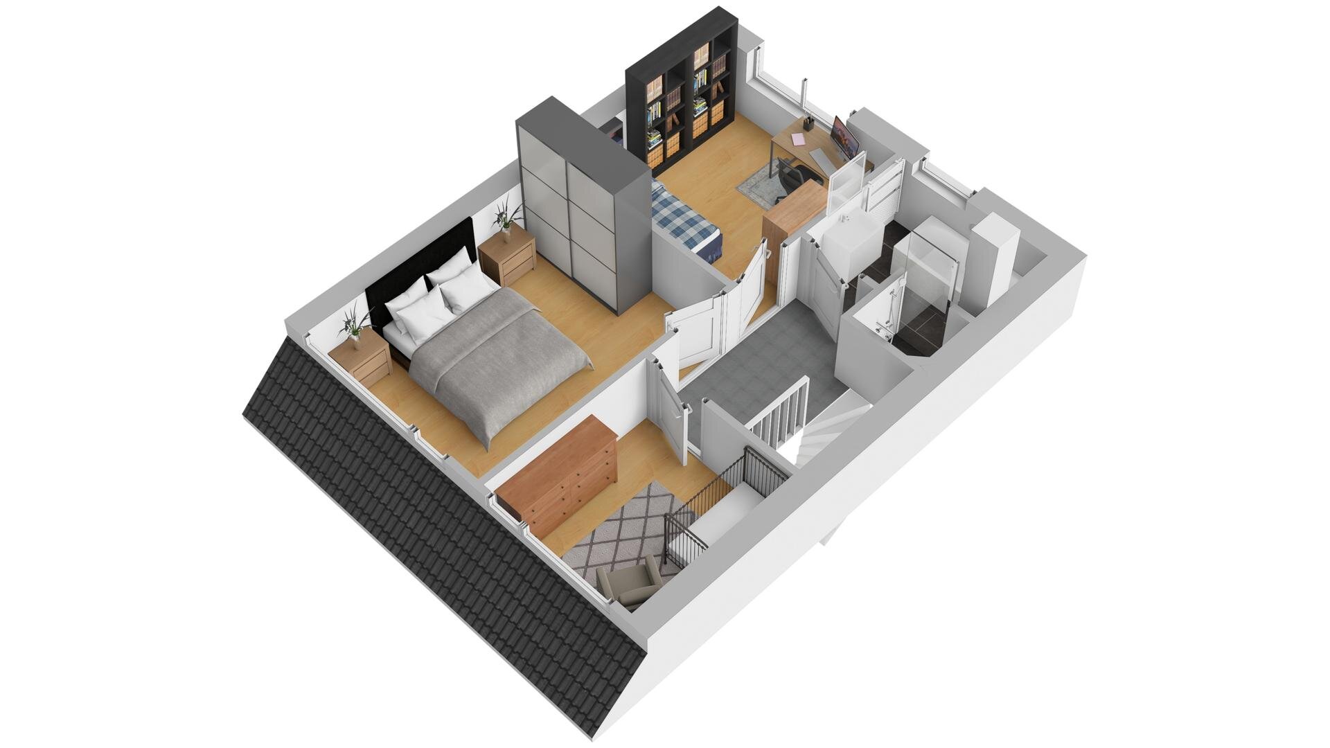 2e verdieping: vlizotrap naar een ruime zolderberging en cv-ruimte.