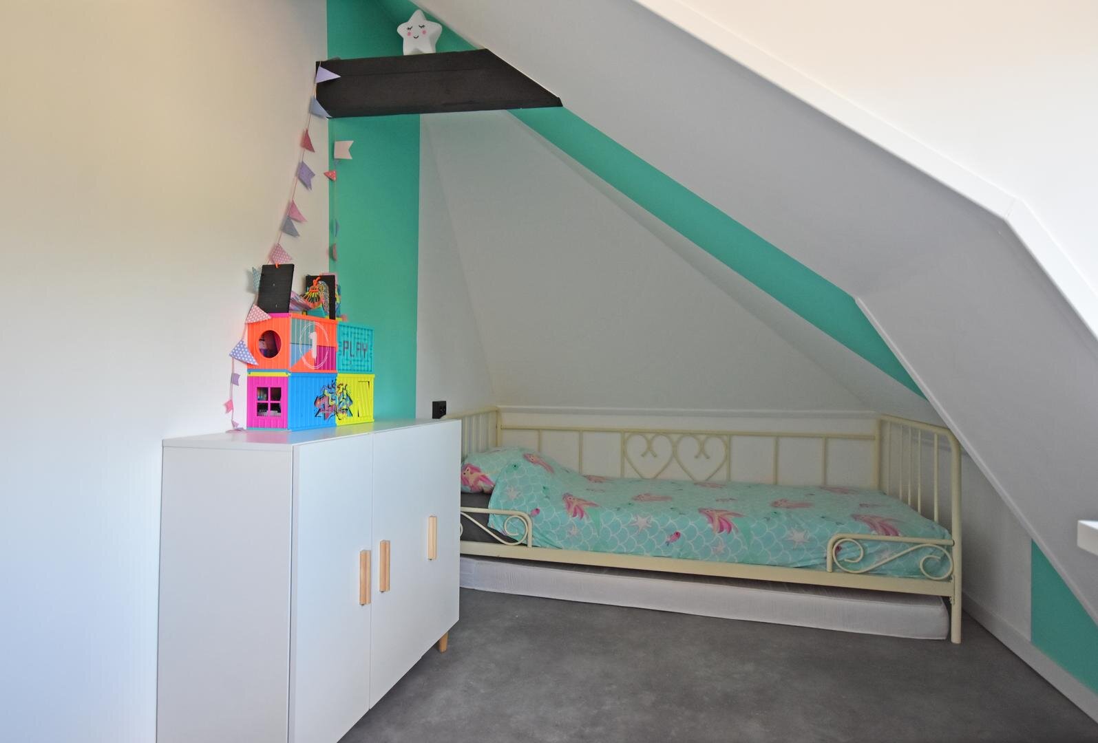 1e verdieping: overloop met berg- en c.v.-ruimte, 4 (kinder)slaapkamers waarvan 2 met dakkapel.