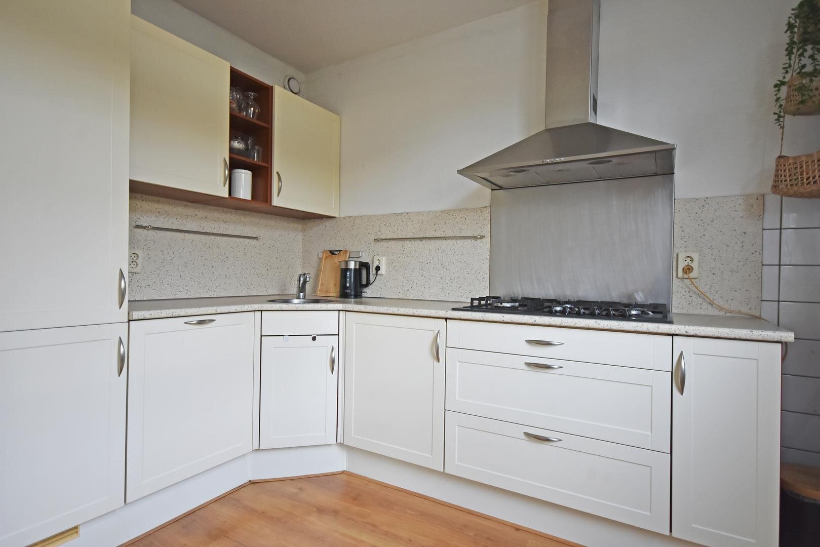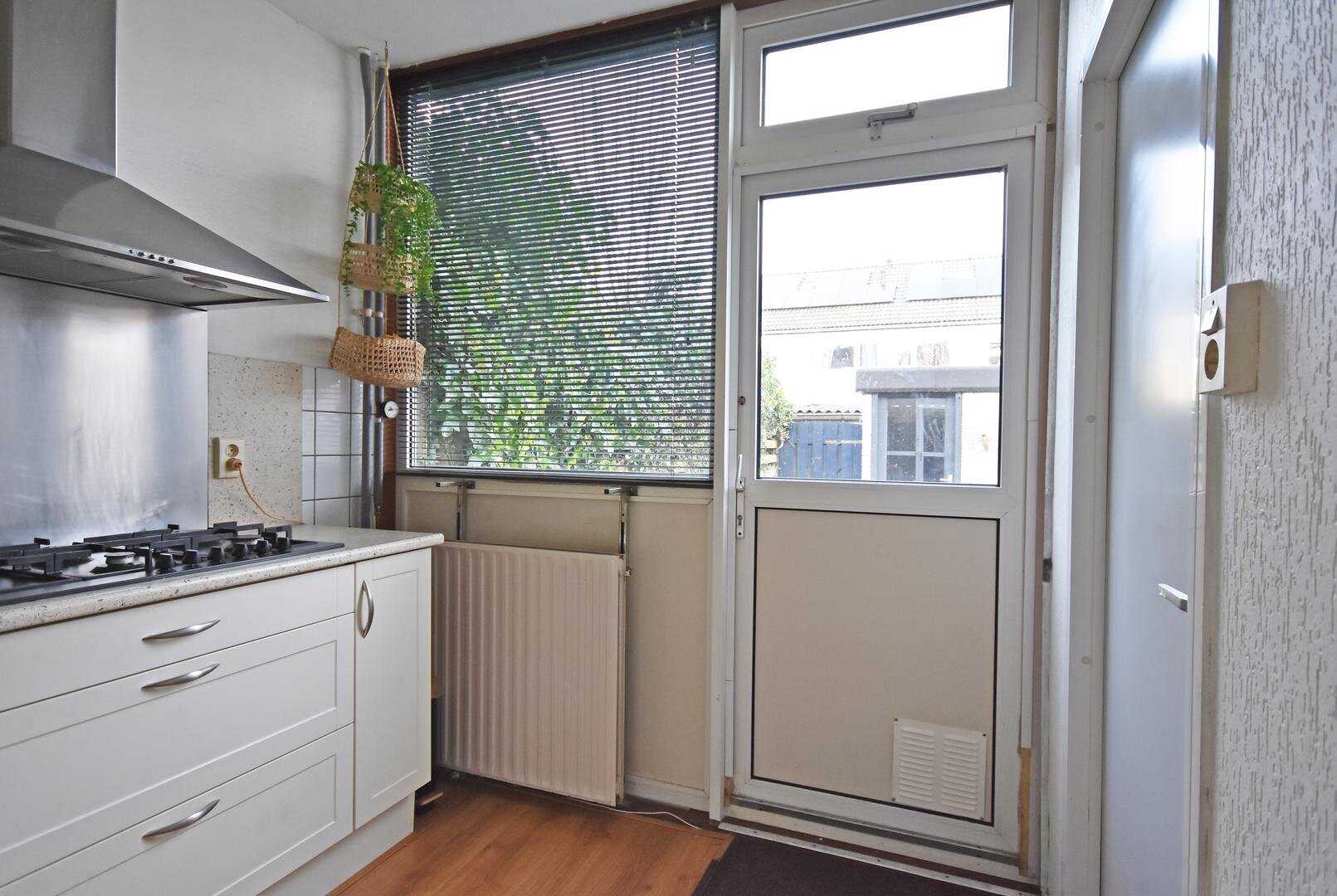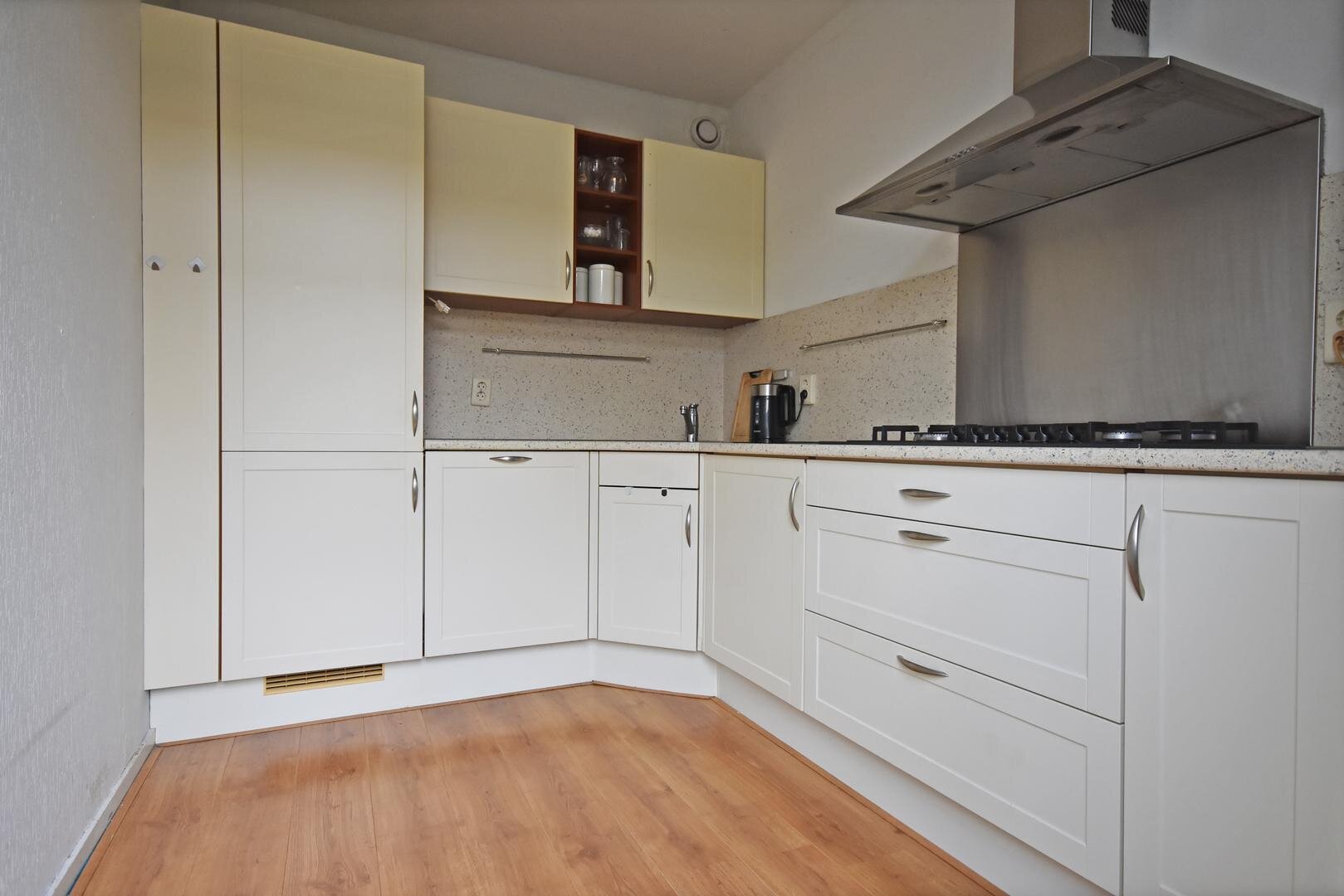 Begane grond: voor-entree, hal met praktische trapkast, toilet, zonnige strakke woonkamer met vrij/groen uitzicht over gemeentelijk groen, keuken met achter-entree en nette gemoderniseerde hoekopstelling v.v. diverse inbouwapparatuur.