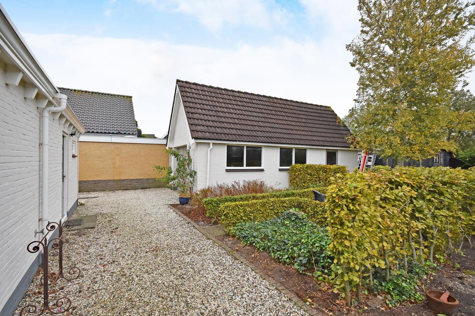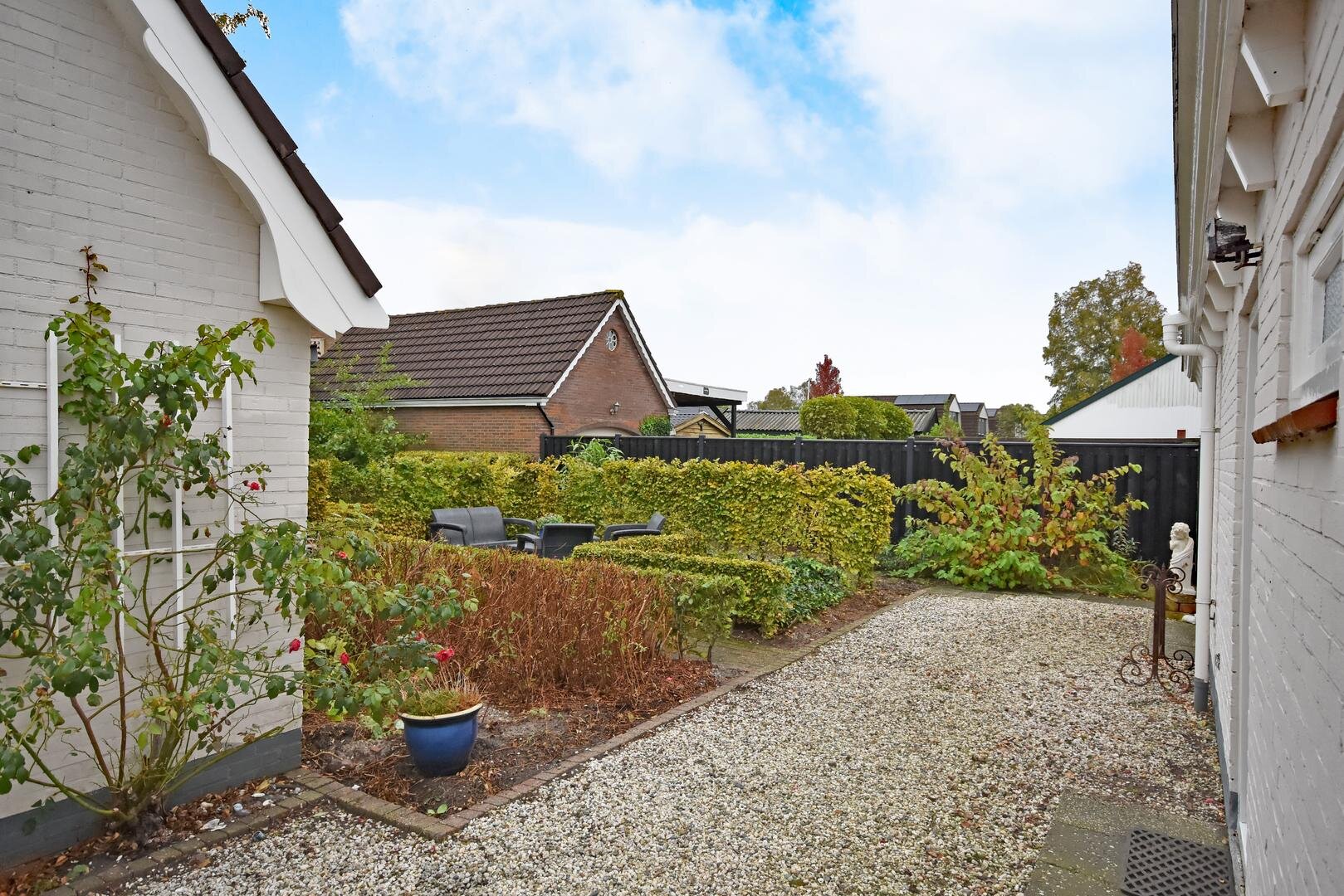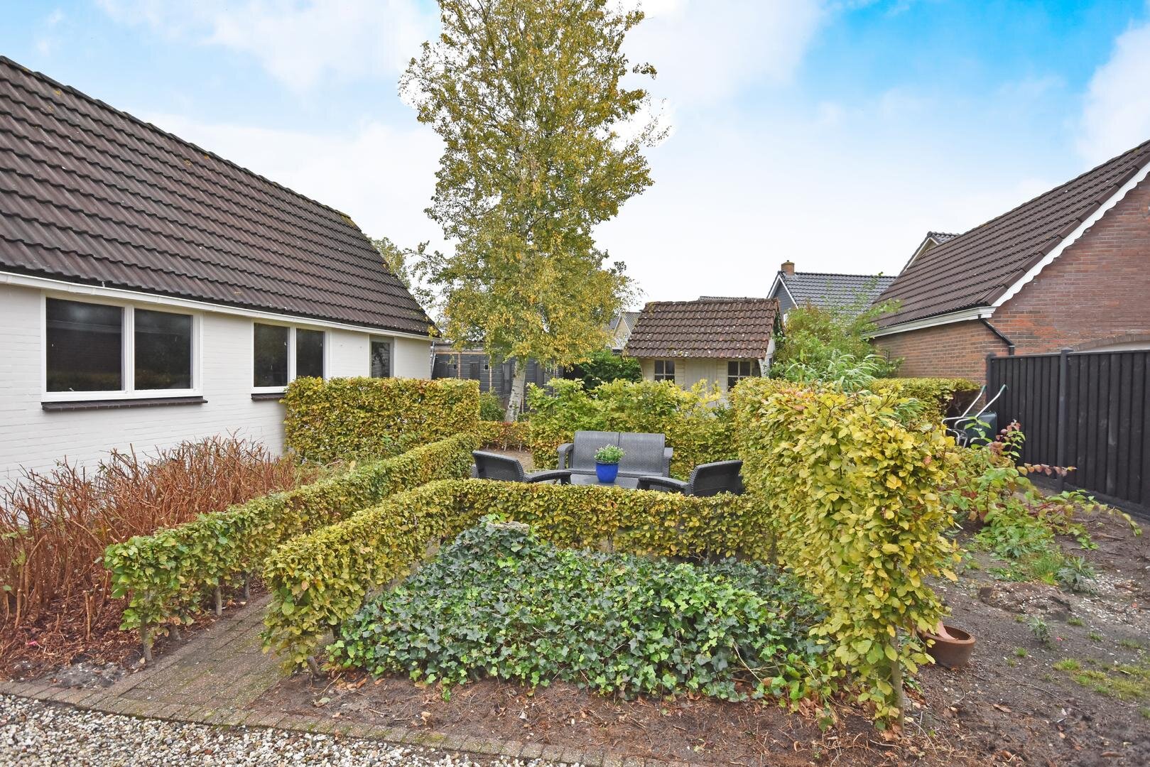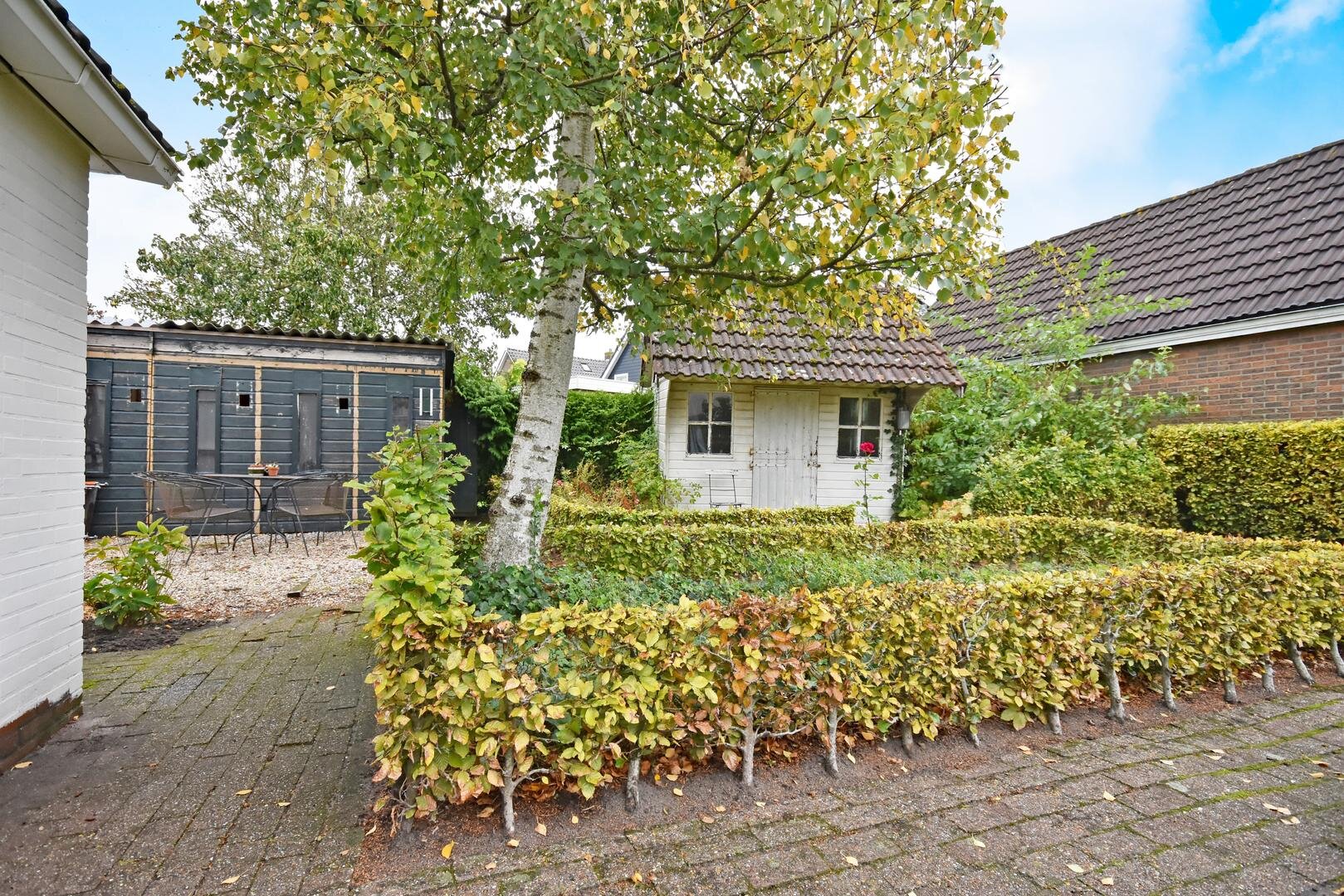 Rondom de woning ligt een royale, zonnige tuin met veel privacy en meerdere terrassen en zitjes. Zo kun je de hele dag door genieten van zon en buitenruimte. Het geheel staat op een ruime kavel van 690 m² eigen grond en de lange oprit biedt parkeergelegenheid voor meerdere auto’s.