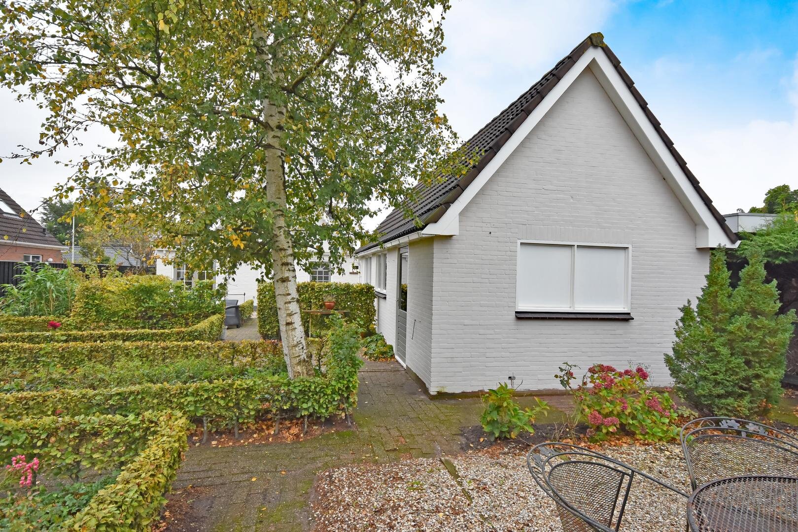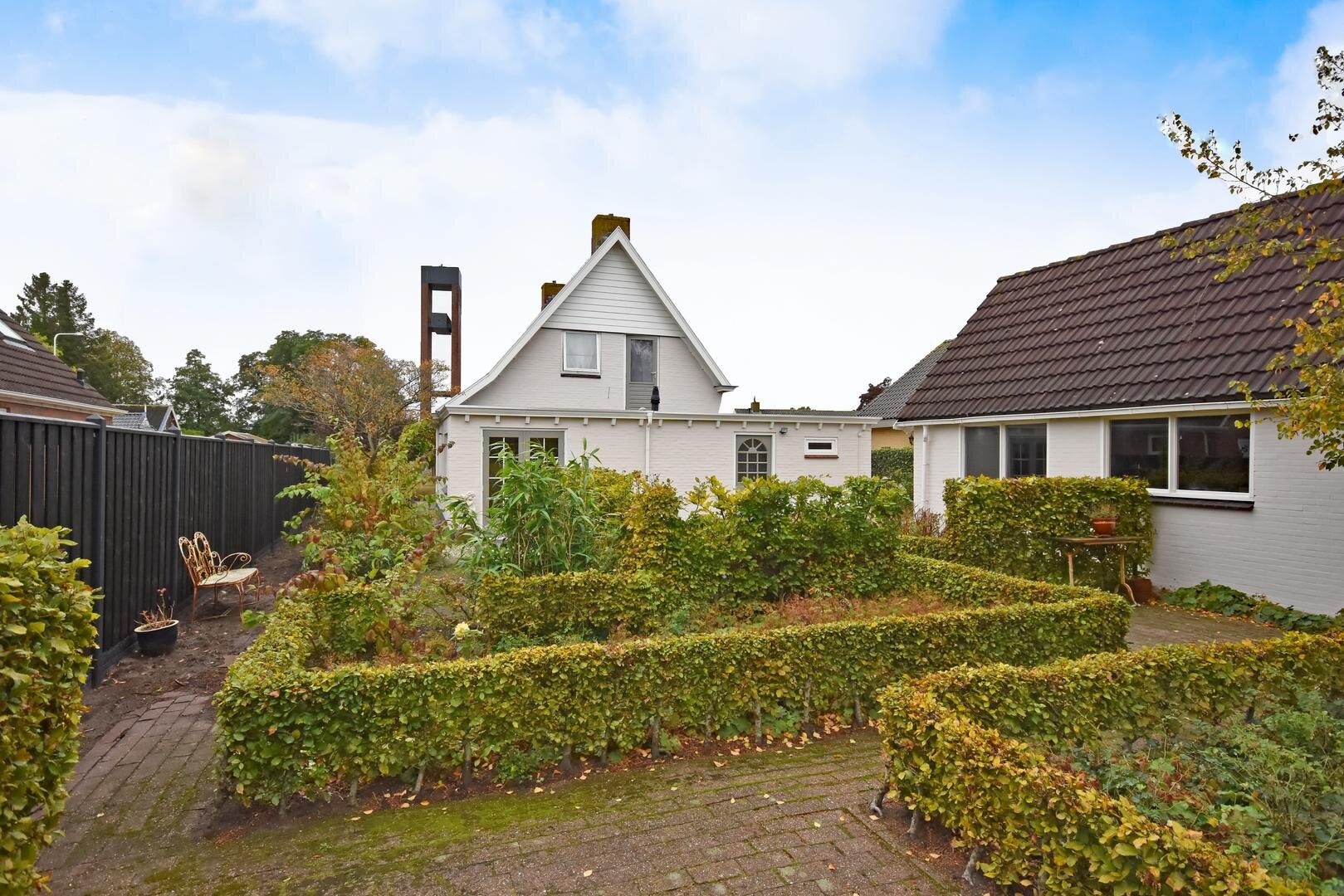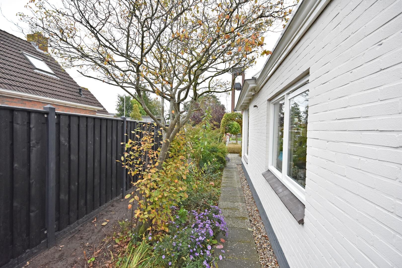 Rondom de woning ligt een royale, zonnige tuin met veel privacy en meerdere terrassen en zitjes. Zo kun je de hele dag door genieten van zon en buitenruimte. Het geheel staat op een ruime kavel van 690 m² eigen grond en de lange oprit biedt parkeergelegenheid voor meerdere auto’s.