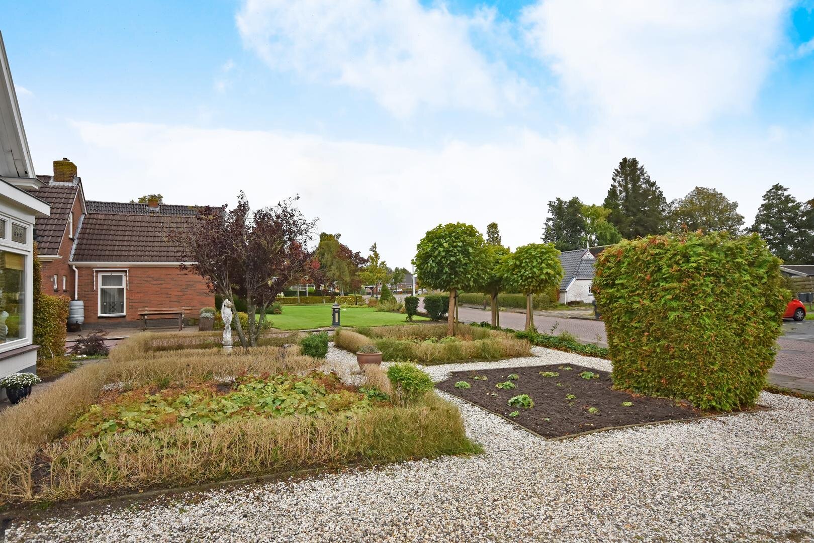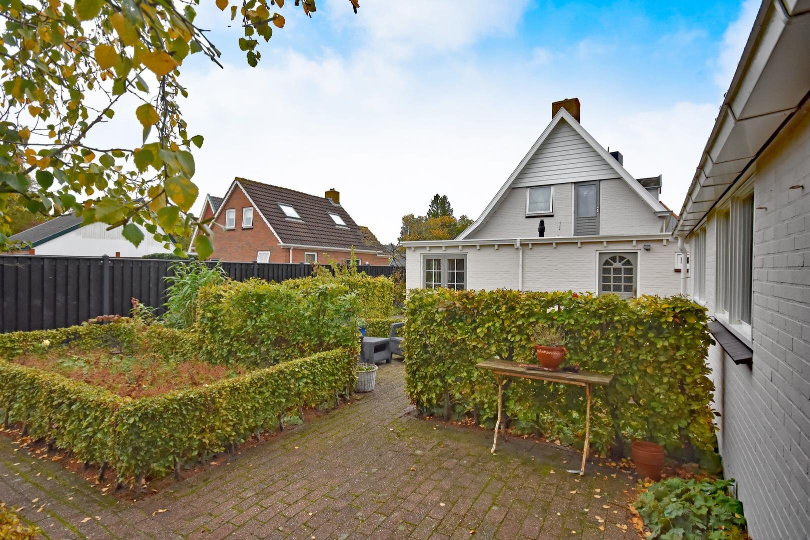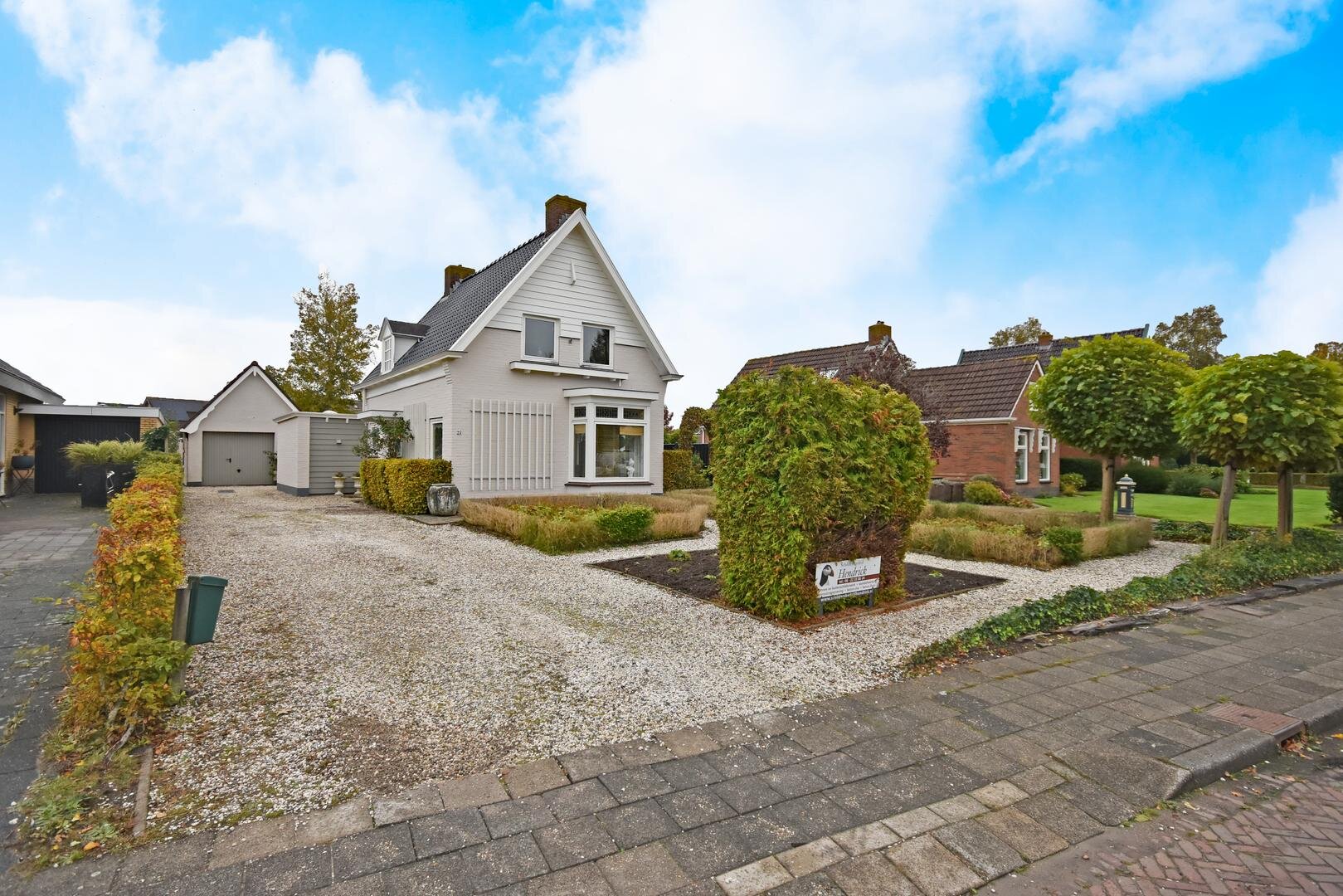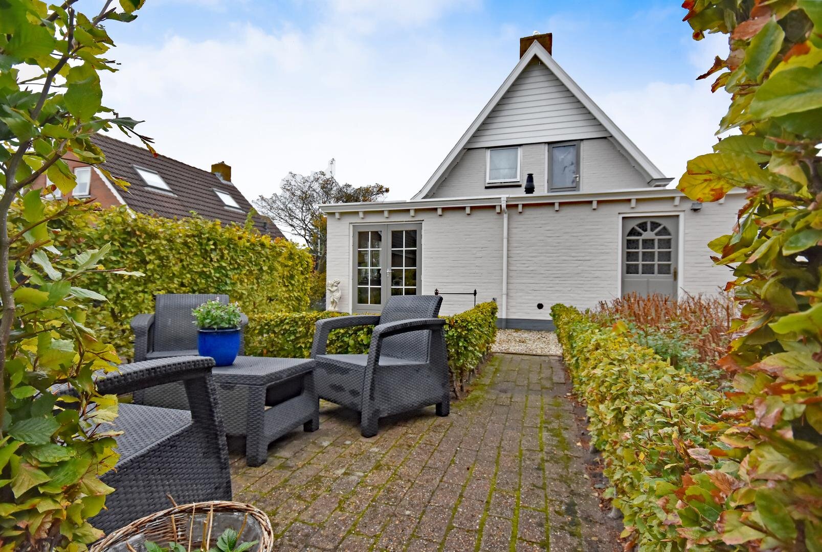 Rondom de woning ligt een royale, zonnige tuin met veel privacy en meerdere terrassen en zitjes. Zo kun je de hele dag door genieten van zon en buitenruimte. Het geheel staat op een ruime kavel van 690 m² eigen grond en de lange oprit biedt parkeergelegenheid voor meerdere auto’s.