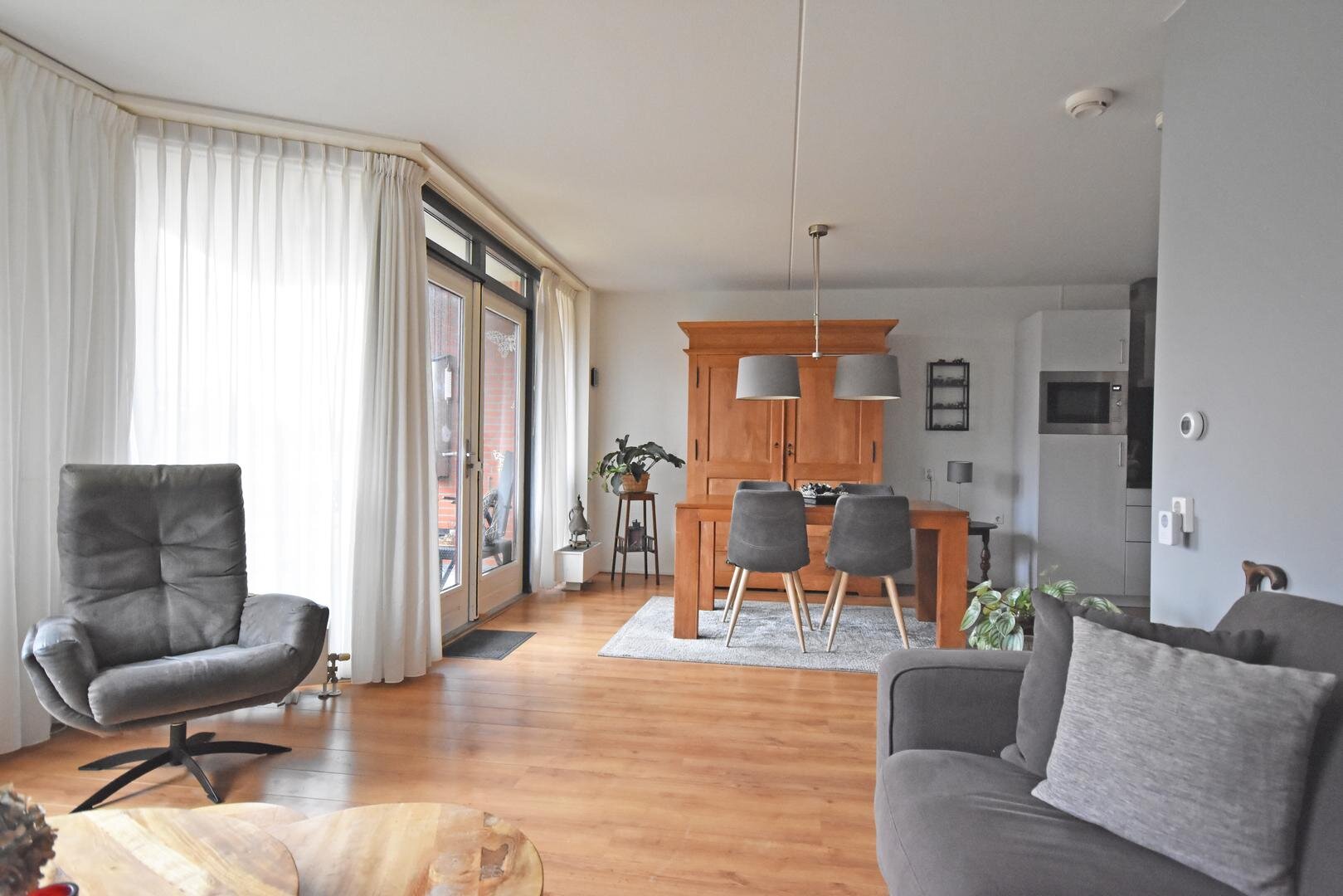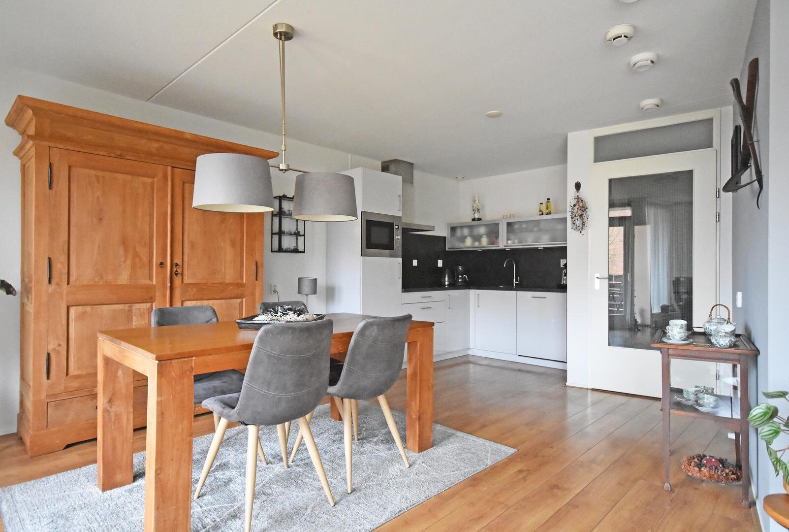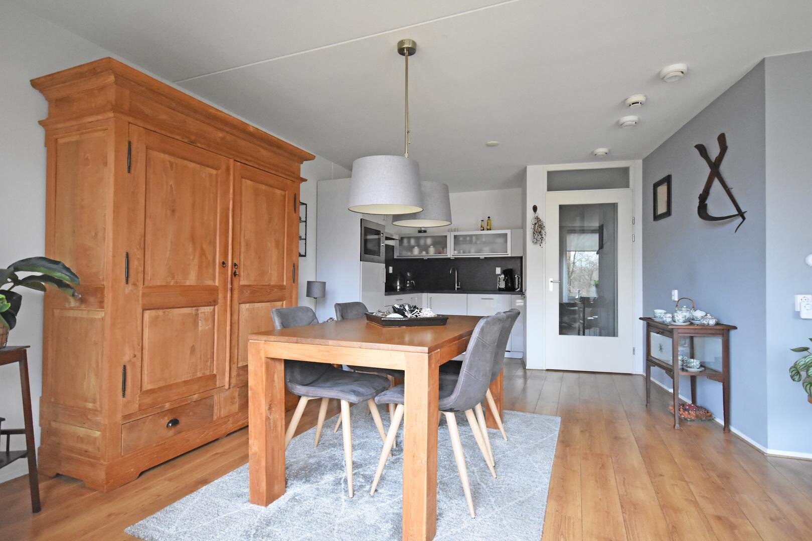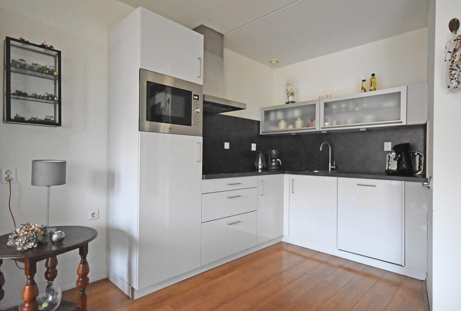 Zodra u binnenkomt valt het prettige licht op. Dankzij de gunstige zuidelijke ligging zijn de woonkamer en keuken heerlijk licht en zonovergoten. De moderne hoekkeuken sluit naadloos aan bij de leefruimte en vormt een gezellige plek om te koken en samen te zijn. Via dubbele deuren loopt u zo het ruime balkon op, waar u tot in de avond van de zon én het vrije groen uitzicht geniet.
