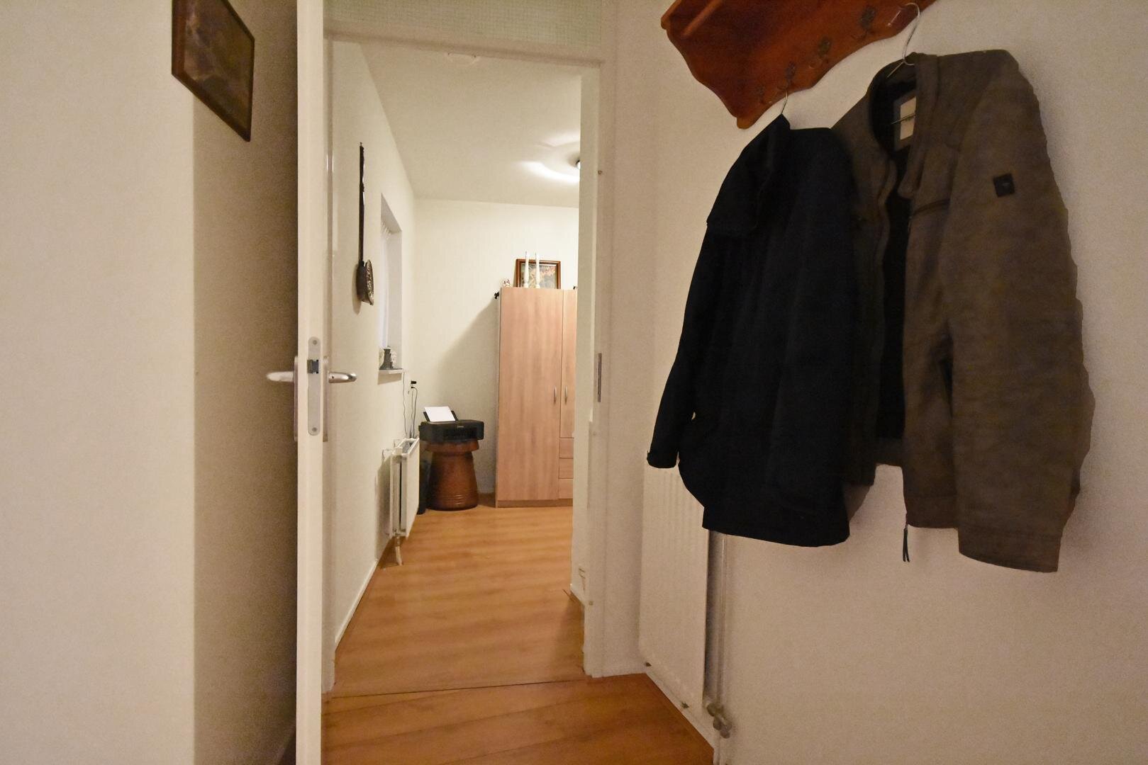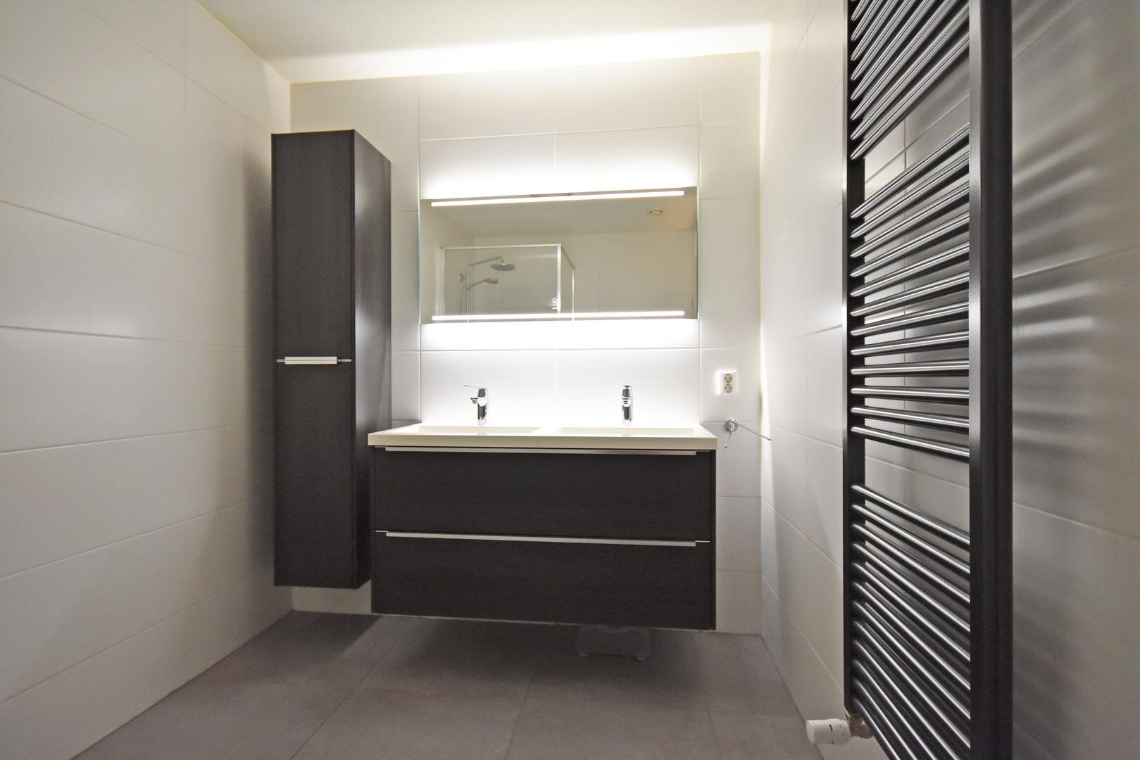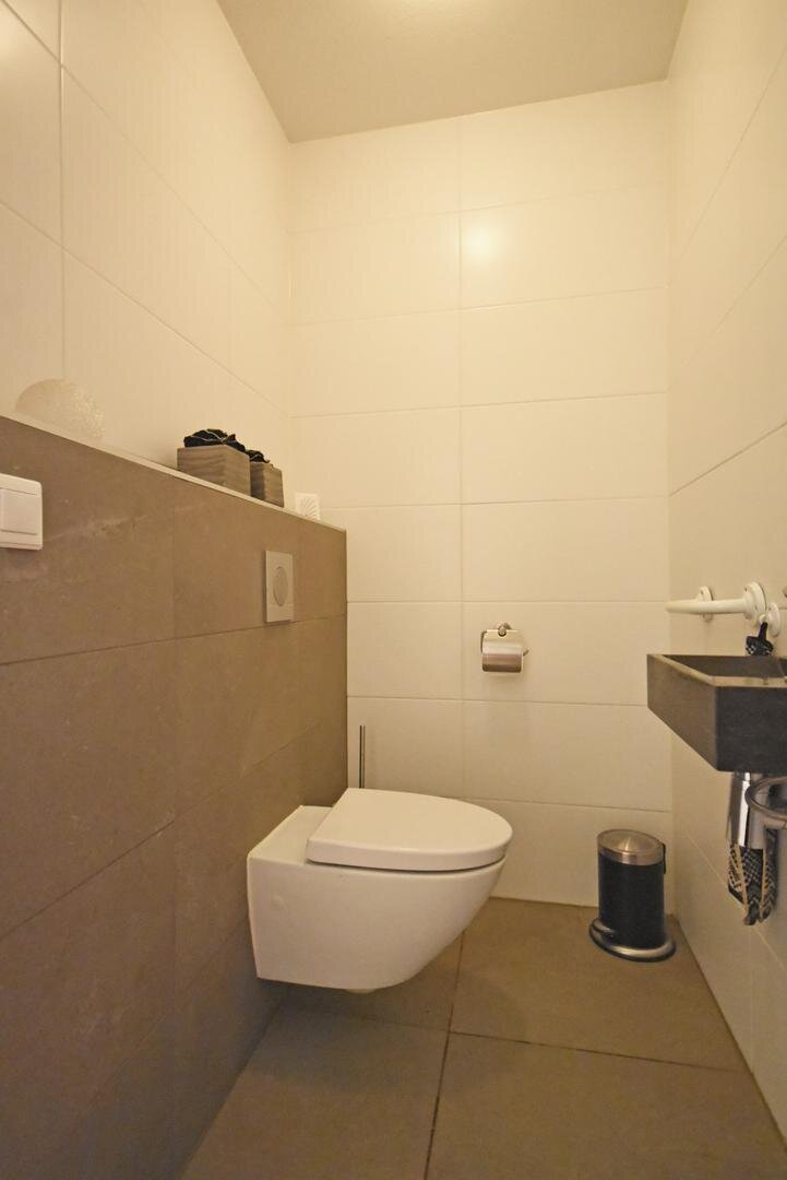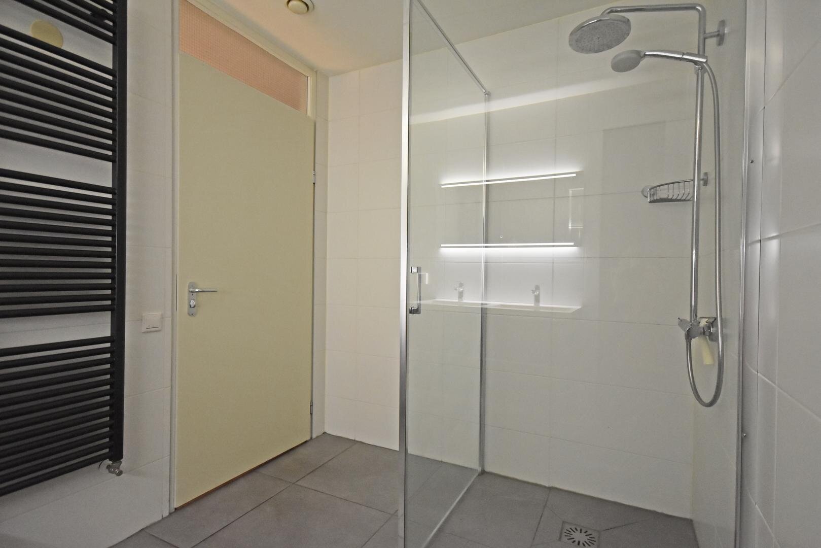 De indeling is praktisch en comfortabel: een nette entree met hal, modern vrijdragend toilet met fonteintje (2018), een berging met witgoedaansluiting(en) en technische ruimte, twee slaapkamers en een moderne badkamer (2018) met inloopdouche en badkamermeubel met dubbele wastafel.