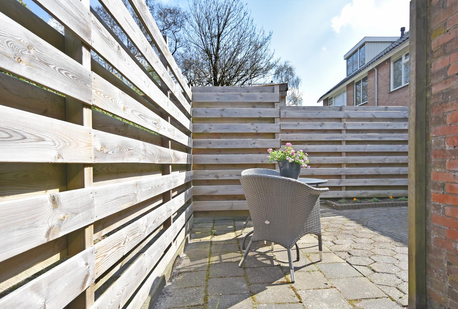 Vanuit de voortuin kijk je vrij uit over het gemeentelijk groen; het ruime zonneterras vormt hier een heerlijke plek om te ontspannen en volop te genieten van de ochtend- én middagzon. In de onderhoudsvriendelijke achtertuin met stenen berging en achterom geniet je juist in alle rust van de avondzon. De kaveloppervlak meet 182 m² eigen grond.