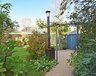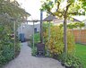 Aan de achterzijde bevindt zich een royale, diepe en zonnige tuin (ca. 20 meter diep) op het noordwesten met meerdere zonneterrassen, afsluitbare achterom en houten berging. De groene privacy volle tuin is fraai aangelegd en een lust voor het oog.