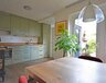 Begane grond: zij-entree, hal met duurzame kurkvloer, vrijdragend toilet met fonteintje, ruime zonnige woonkamer met warme massief houten (eiken) vloerdelen en deels vrij groen landelijk uitzicht (westzijde), open keuken met massief houten (eiken) vloerdelen, tuindeuren en nette opstelling v.v. diverse (deels vernieuwde) inbouwapparatuur en veel kastruimte, uitpandige bijkeuken met plavuizenvloer, witgoed-aansluiting, tuindeur en doorgang naar verlengde garage van ca. 3 x 8 meter met achter-entree.