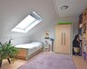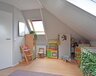 2e verdieping: vaste trap naar overloop, 2 slaapkamers met bergruimte achter knieschotten waarvan 1 met laminaatvloer.