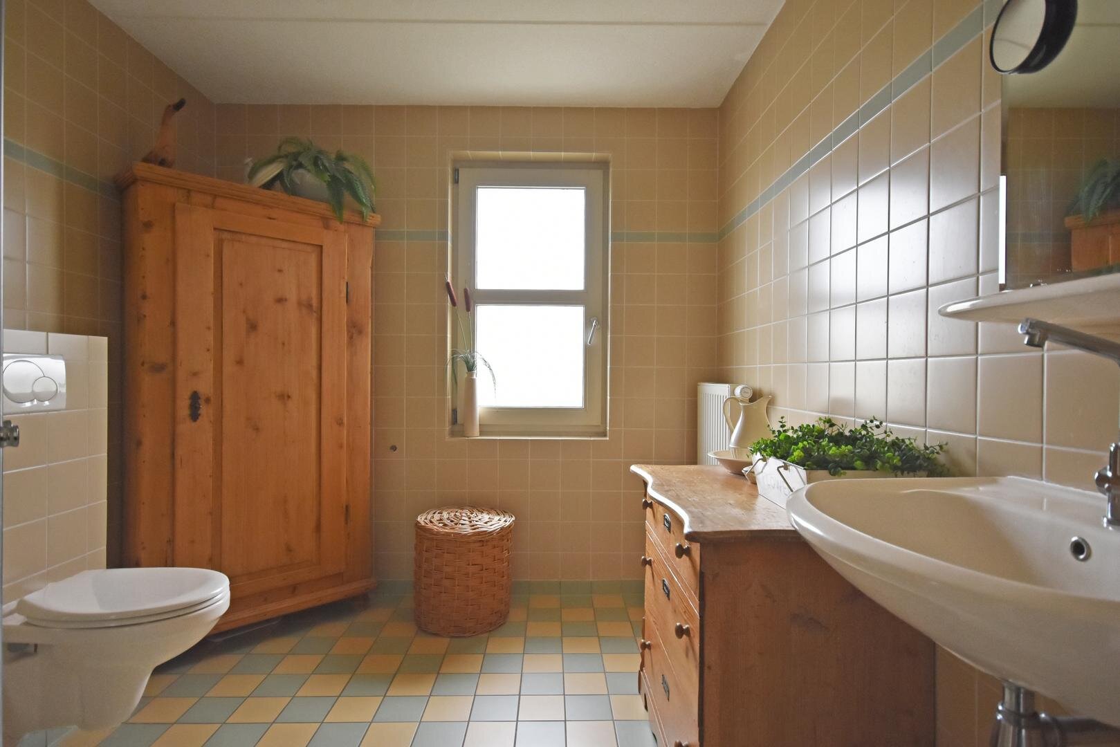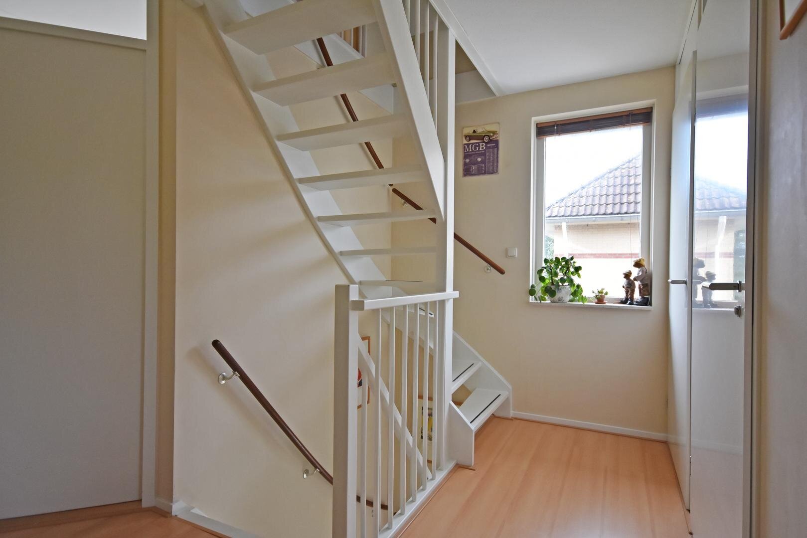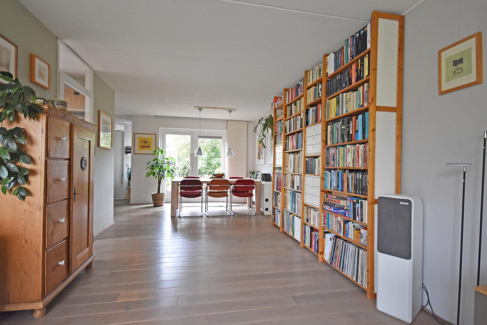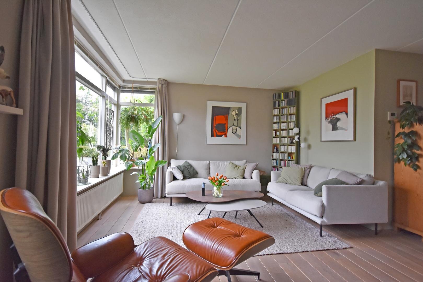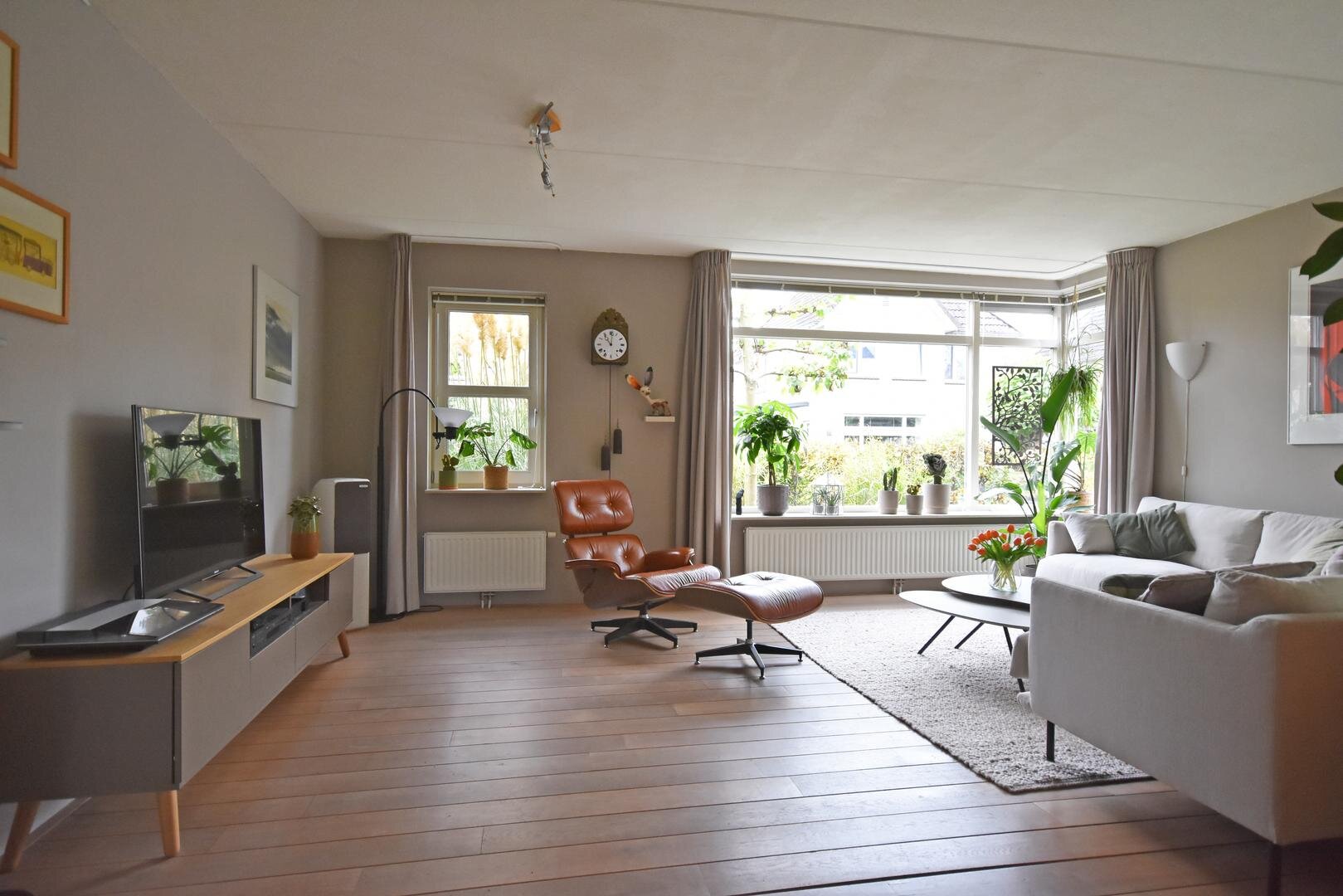 Begane grond: zij-entree, hal met duurzame kurkvloer, vrijdragend toilet met fonteintje, ruime zonnige woonkamer met warme massief houten (eiken) vloerdelen en deels vrij groen landelijk uitzicht (westzijde), open keuken met massief houten (eiken) vloerdelen, tuindeuren en nette opstelling v.v. diverse (deels vernieuwde) inbouwapparatuur en veel kastruimte, uitpandige bijkeuken met plavuizenvloer, witgoed-aansluiting, tuindeur en doorgang naar verlengde garage van ca. 3 x 8 meter met achter-entree.