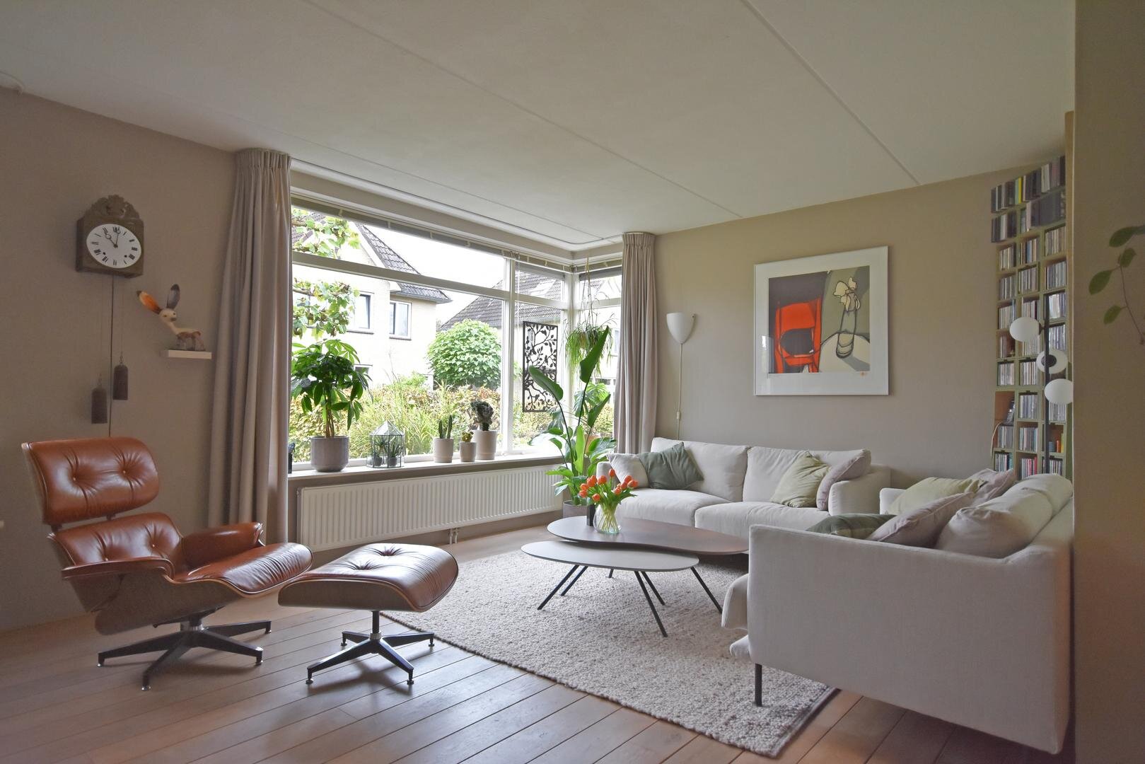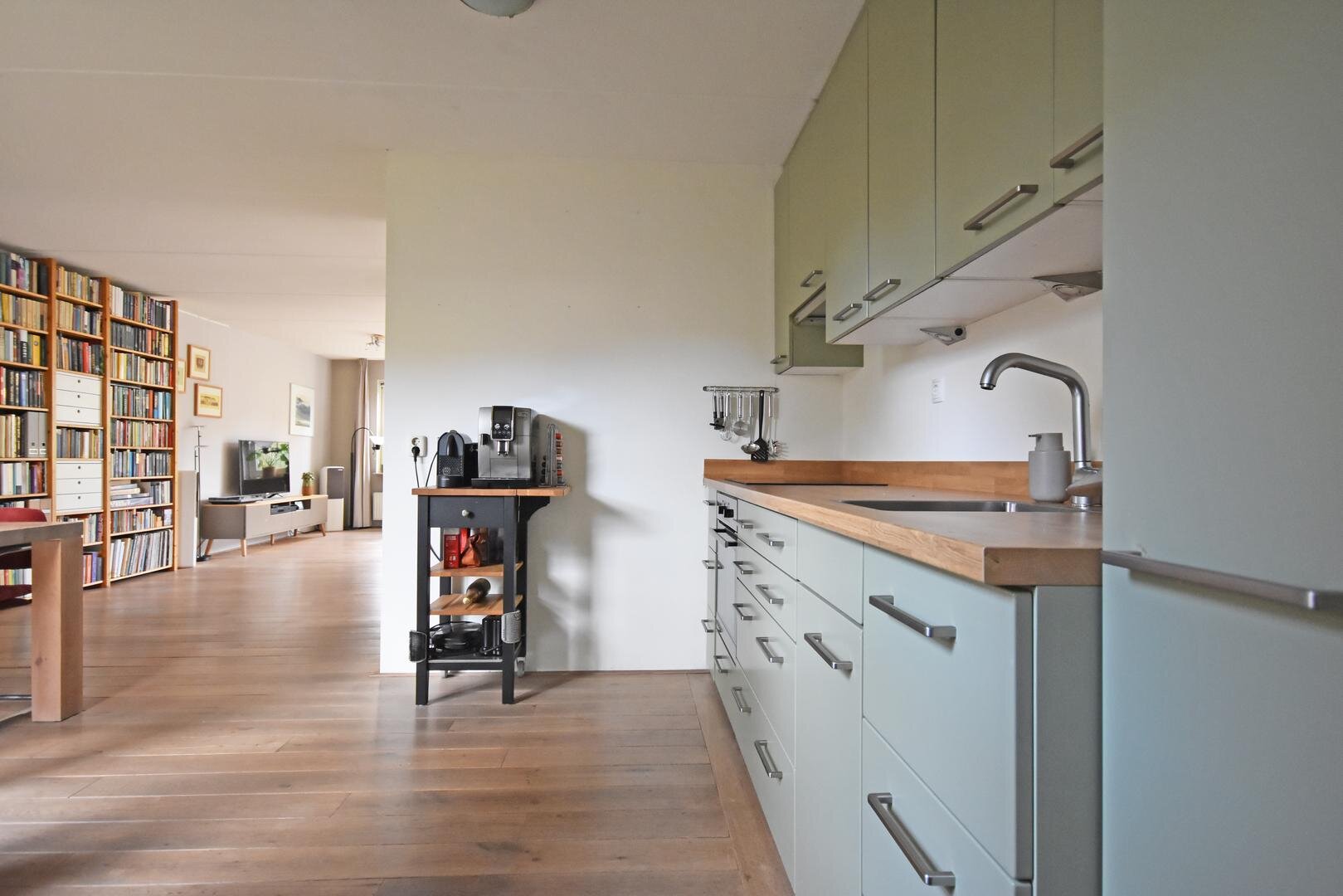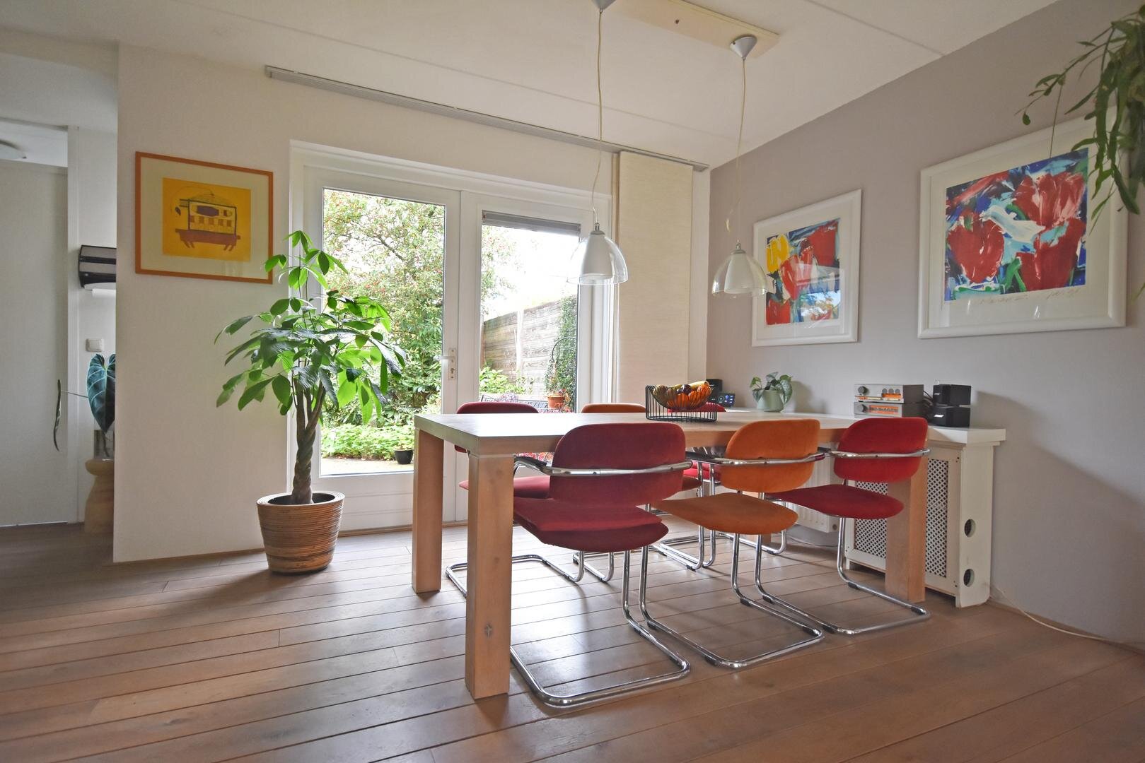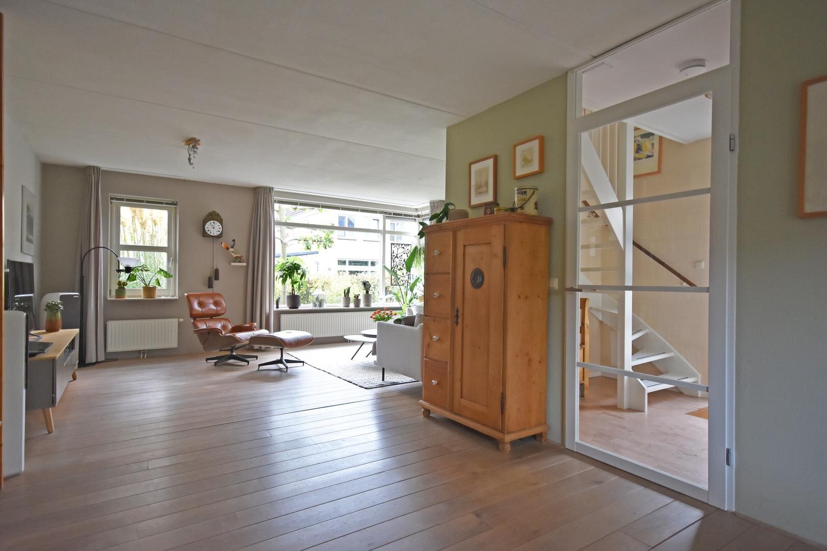 Begane grond: zij-entree, hal met duurzame kurkvloer, vrijdragend toilet met fonteintje, ruime zonnige woonkamer met warme massief houten (eiken) vloerdelen en deels vrij groen landelijk uitzicht (westzijde), open keuken met massief houten (eiken) vloerdelen, tuindeuren en nette opstelling v.v. diverse (deels vernieuwde) inbouwapparatuur en veel kastruimte, uitpandige bijkeuken met plavuizenvloer, witgoed-aansluiting, tuindeur en doorgang naar verlengde garage van ca. 3 x 8 meter met achter-entree.