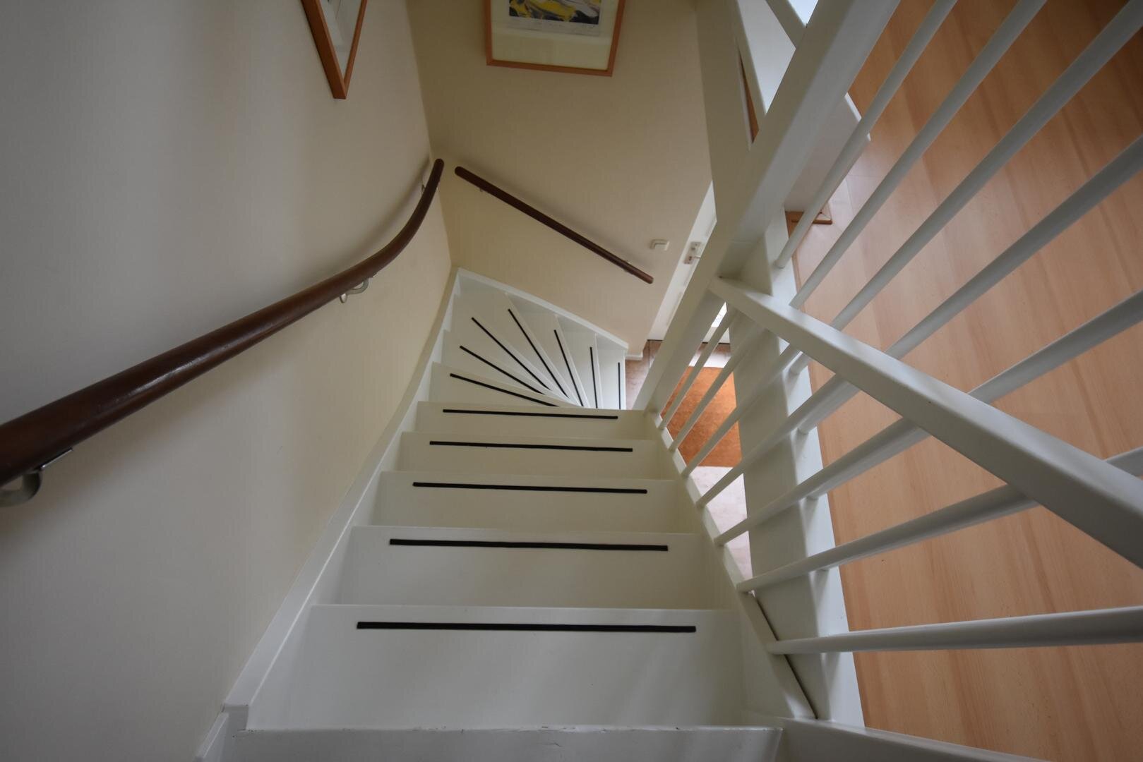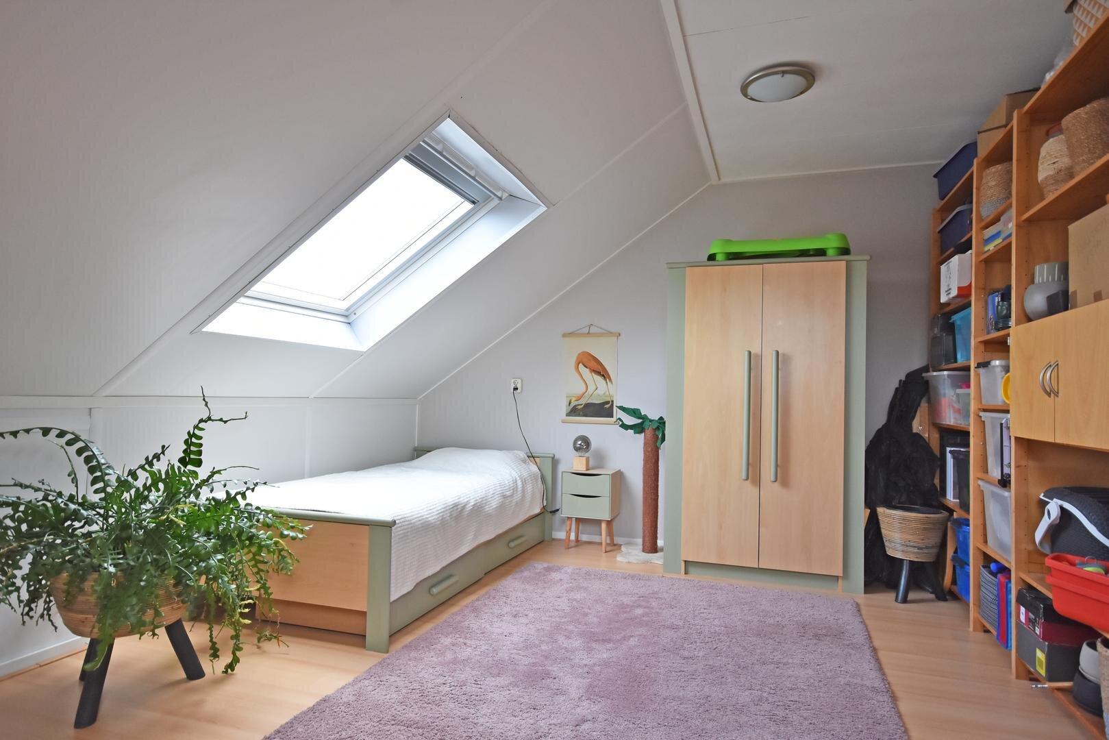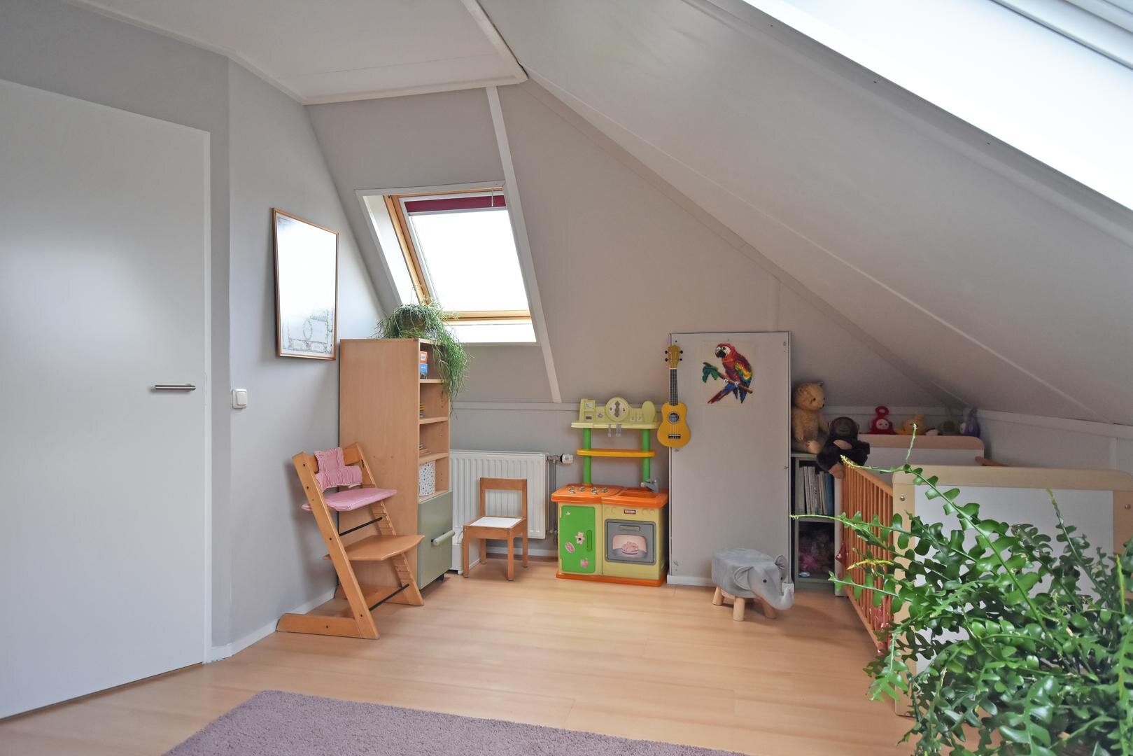 2e verdieping: vaste trap naar overloop, 2 slaapkamers met bergruimte achter knieschotten waarvan 1 met laminaatvloer.